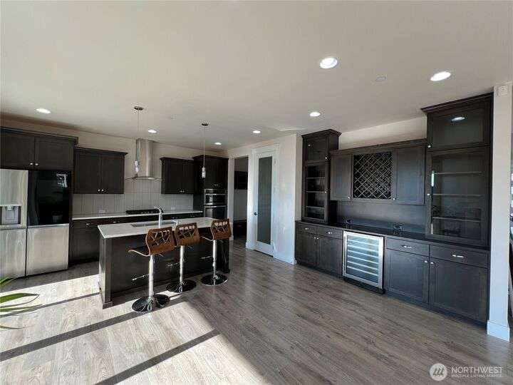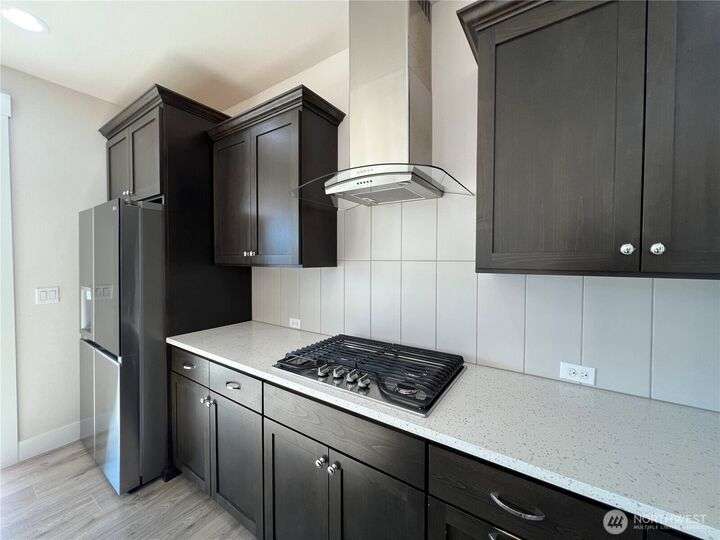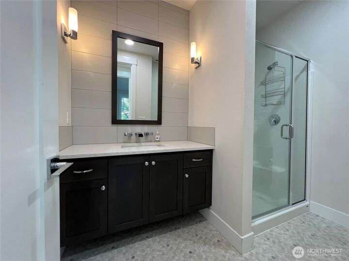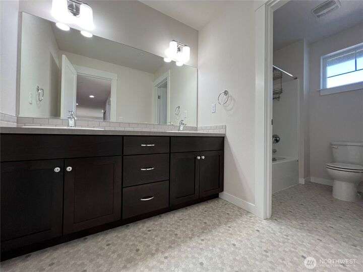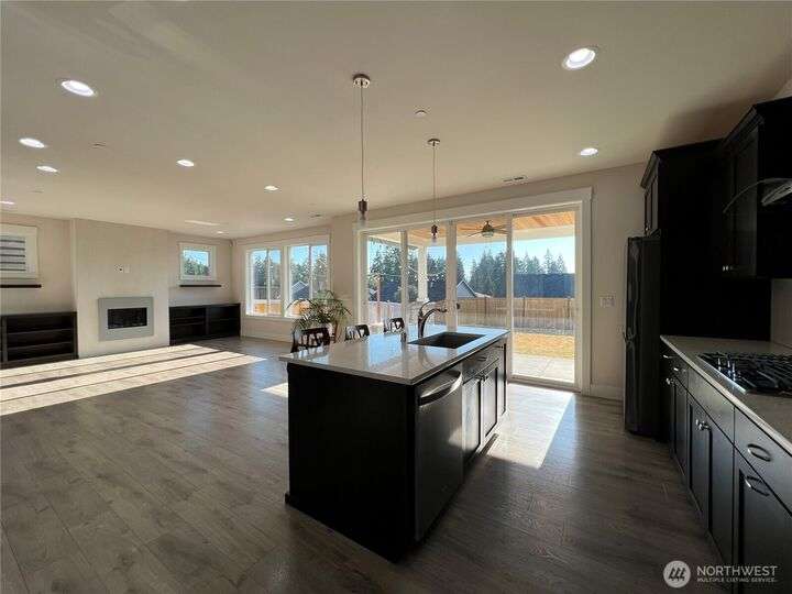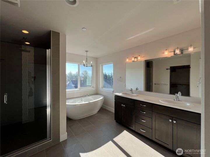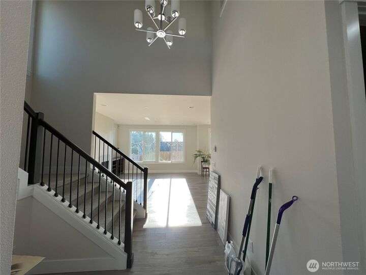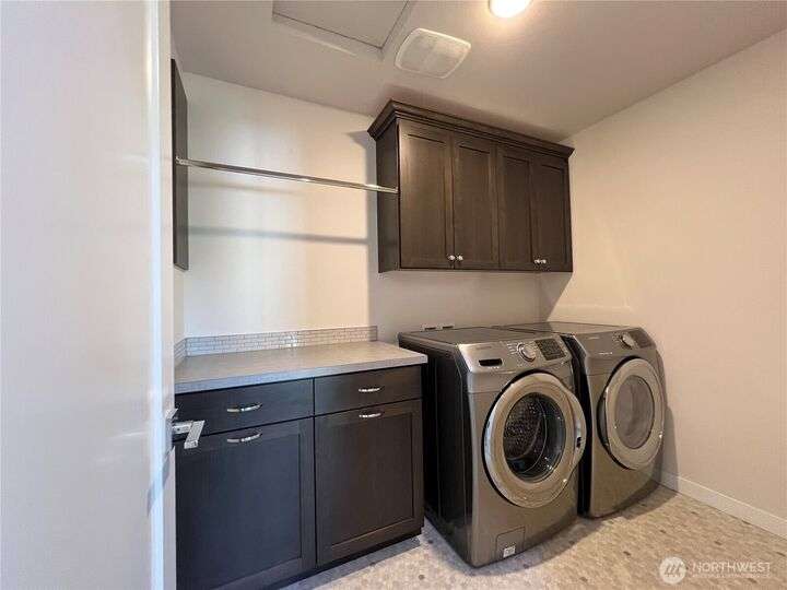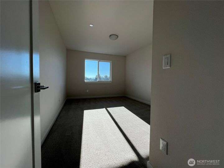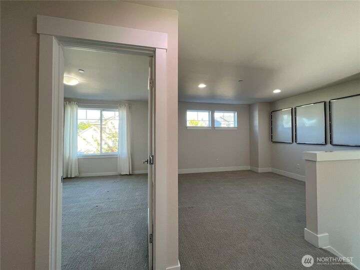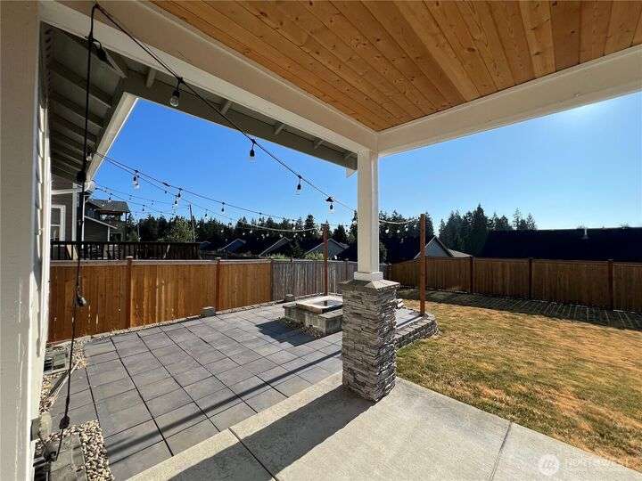Beautiful home, Landscaping - mowing included with rent. The main floor offers a Den and a bedroom with a 3/4 bathroom. the covered patio and sitting area out back in the fenced yard area are perfect for views and entertaining friends/family. The 2nd floor offers a TV room off the landing area. The primary suite with a walk in closet and a spacious bathroom with soaking tub, shower and double sinks. There are three other bedrooms off the hallway with ample closets. A full bathroom off the hall. The laundry room has great storage, Full-size washer and dryer front load style, countertop for folding etc. Attached garage with built in workbench and custom flooring. Tesla charging port.