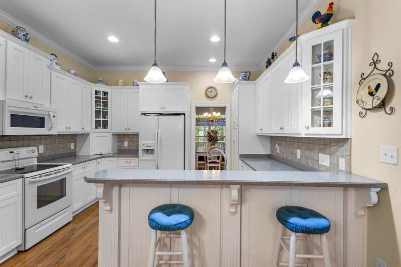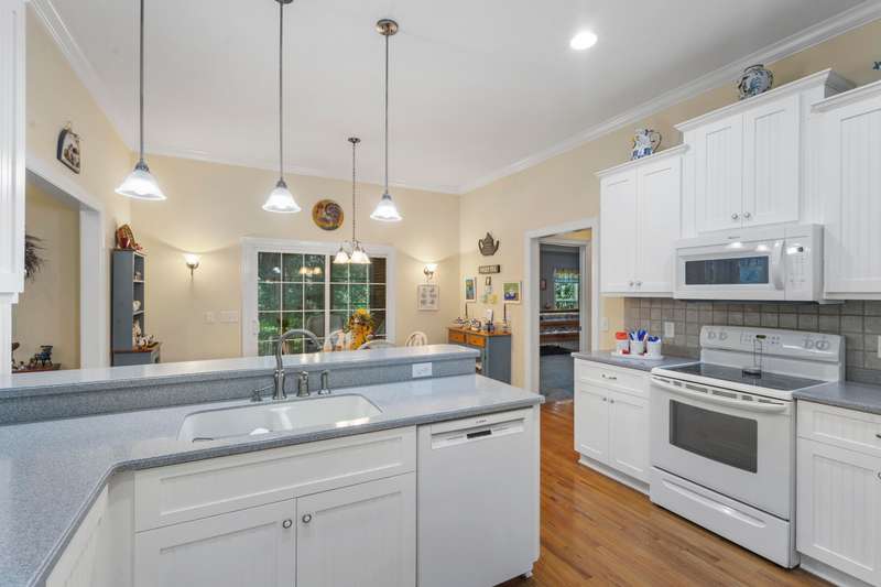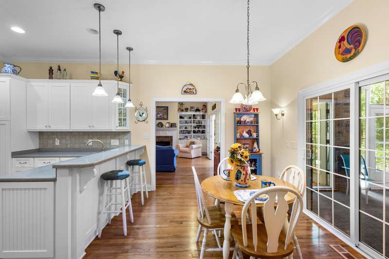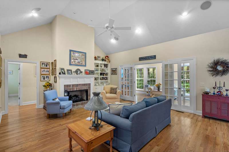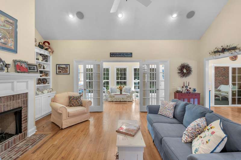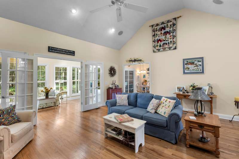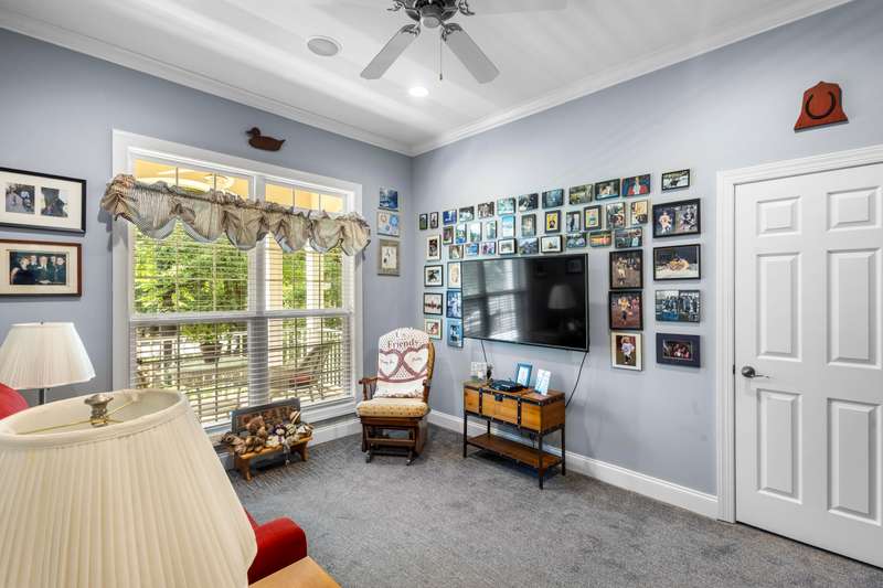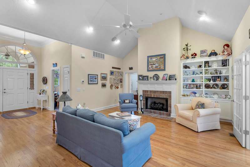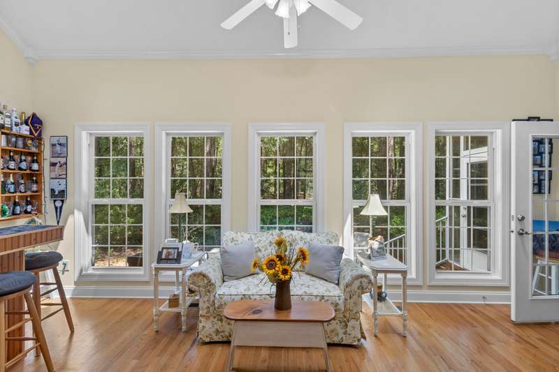 WHAT A LIVEABE FLOOR PLAN and comfortable flow for entertaining. Custom home built 2007 by Bill Smith. A rocking-chair front porch awaits you. 3BR, 2.5BA, den and bonus room with full bath. This home displays built-ins, pristine hardwood floors, many tall windows for natural light, French doors, and more! The large living room opens to the sunroom/entertainment room showcasing a custom built-in bar and display shelves. The cheerful kitchen is deigned for easy use, inc. Corian countertops, updated cabinetry, snack bar and 10 x 14 breakfast area. The primary bedroom has plenty of room (22x17) for a sitting area and leads to the primary bath with a walk-in shower and a tub, separated sinks, a make-up area, a separate water closet and a roomy 7 x 14 walk-in closet. Just off the living room is a den,.Two additional bedrooms are on opposite side along with a full bath with double sinks. Down the hall toward the 2-car garage is a 1/2 bath and deep laundry room featuring cabinets, workspace, clothes hanging area and built-in iron. On the upper level is 26 x 20 bonus room and full bath. There's plenty of room for storage in the floored walk-in attic. For added enjoyment there is a 3-season room, and spacious backyard patio. This lovely home is perfectly placed on 3/4 ac and has maintained a good combination of landscaping and woods for peace and privacy. Haddington Way is located in Cedar Creek Development offering golf, tennis, pickleball, walking paths, nature trails, mini-parks and ponds. City water and well for irrigation. County taxes only.
