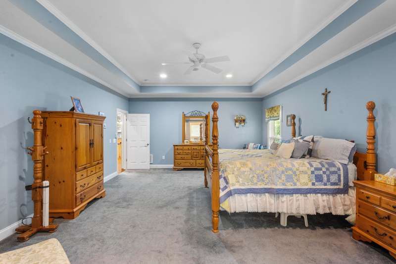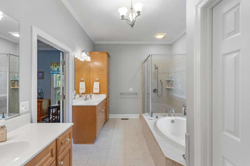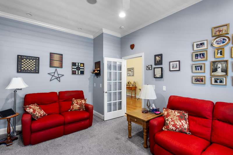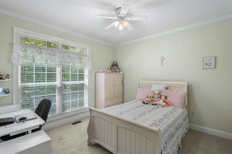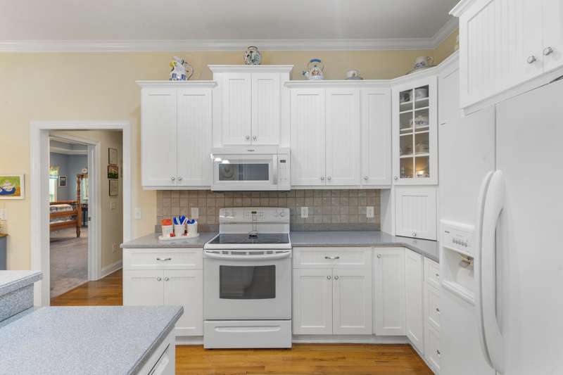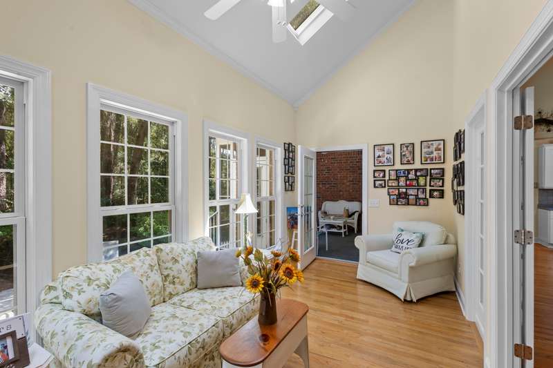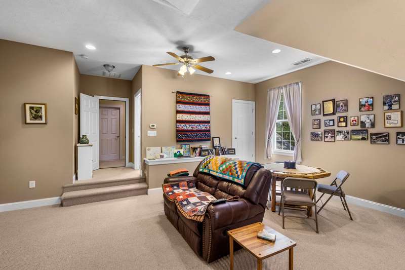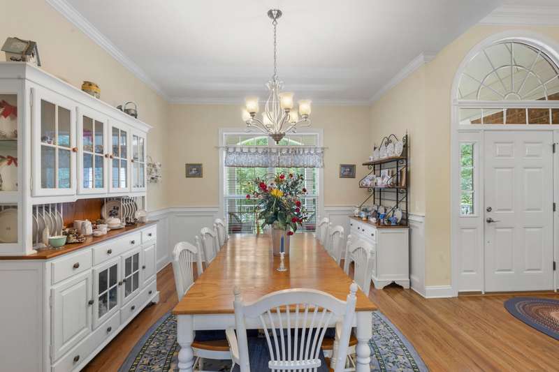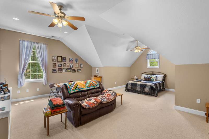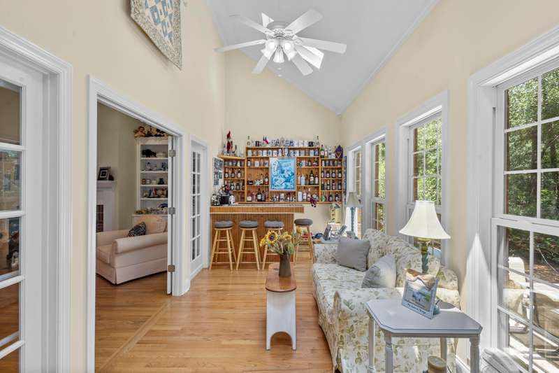 WHAT A LIVEABE FLOOR PLAN and comfortable flow for entertaining. Custom home built 2007 by Bill Smith. A rocking-chair front porch awaits you. 3BR, 2.5BA, den and bonus room with full bath. This home displays built-ins, pristine hardwood floors, many tall windows for natural light, French doors, and more! The large living room opens to the sunroom/entertainment room showcasing a custom built-in bar and display shelves. The cheerful kitchen is deigned for easy use, inc. Corian countertops, updated cabinetry, snack bar and 10 x 14 breakfast area. The primary bedroom has plenty of room (22x17) for a sitting area and leads to the primary bath with a walk-in shower and a tub, separated sinks, a make-up area, a separate water closet and a roomy 7 x 14 walk-in closet. Just off the living room is a den,.Two additional bedrooms are on opposite side along with a full bath with double sinks. Down the hall toward the 2-car garage is a 1/2 bath and deep laundry room featuring cabinets, workspace, clothes hanging area and built-in iron. On the upper level is 26 x 20 bonus room and full bath. There's plenty of room for storage in the floored walk-in attic. For added enjoyment there is a 3-season room, and spacious backyard patio. This lovely home is perfectly placed on 3/4 ac and has maintained a good combination of landscaping and woods for peace and privacy. Haddington Way is located in Cedar Creek Development offering golf, tennis, pickleball, walking paths, nature trails, mini-parks and ponds. City water and well for irrigation. County taxes only.