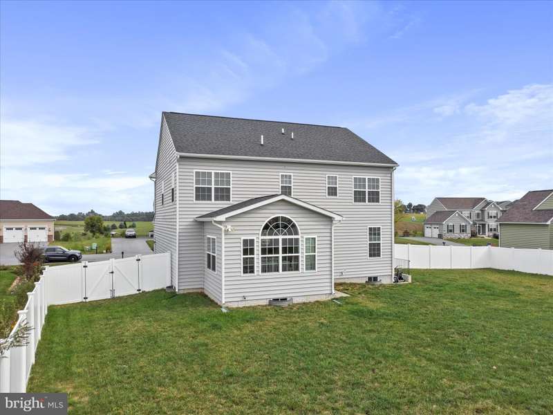 Don't miss out on this four year young, one owner home. This gem offers a first floor office, upgraded kitchen with quartz countertops, slate finish appliances, morning room bump out, open floor plan. The second floor boasts 4 large bedrooms. Primary comes complete with walk in shower and double vanity and a huge walk in closet. Hall bath also has double vanity. 2nd floor laundry. The basement is fully finished with a full bath and flex room which would be perfect for a second office, den, bedroom, gym etc... The level lot is almost a 1/2 acre and the backyard is fully fenced. Relaxing front porch with a view of the Historic Elmwood Farm Bed & Breakfast Alpaca farm.