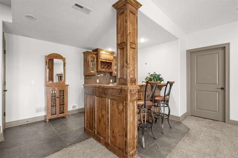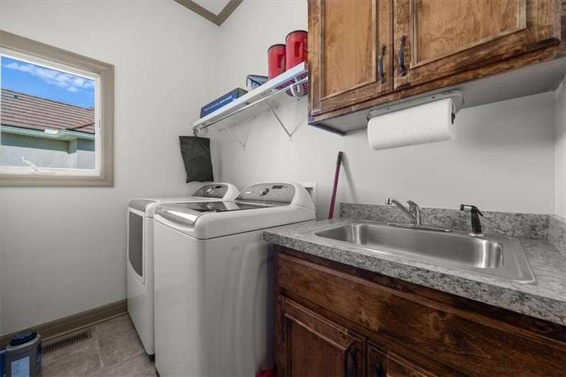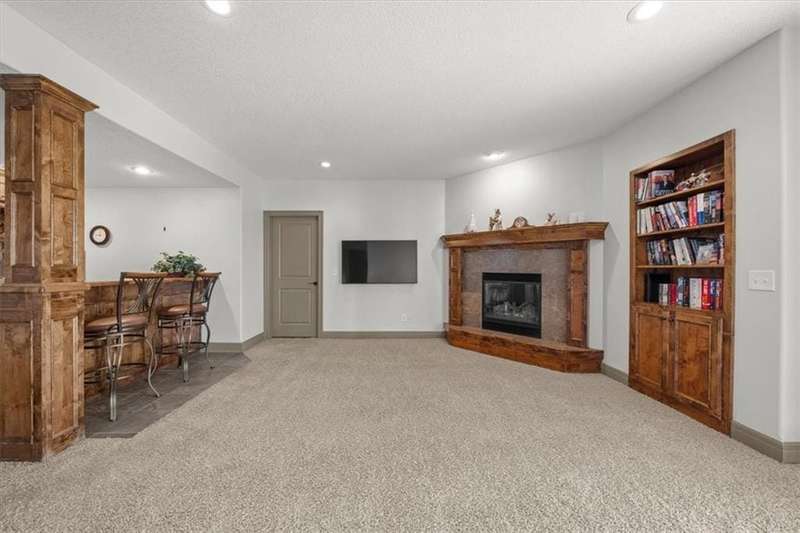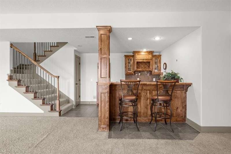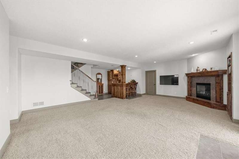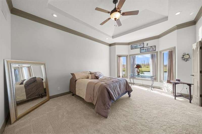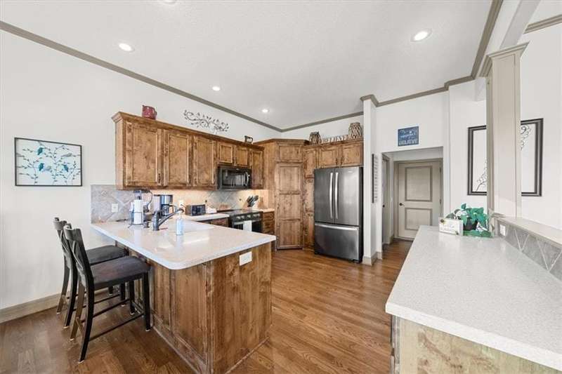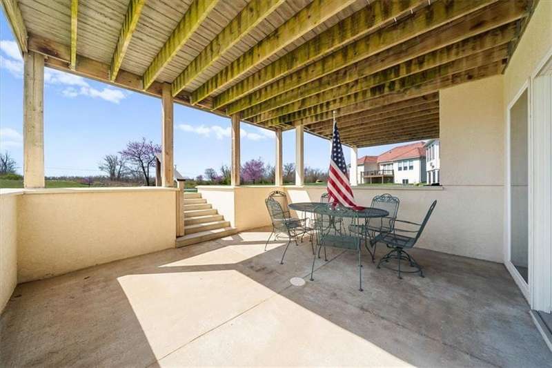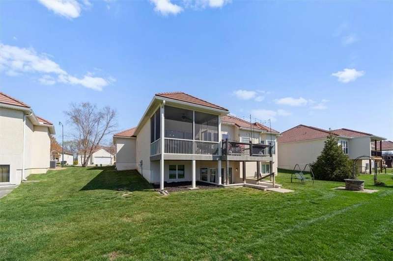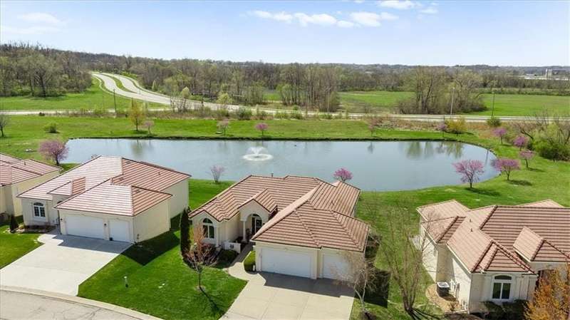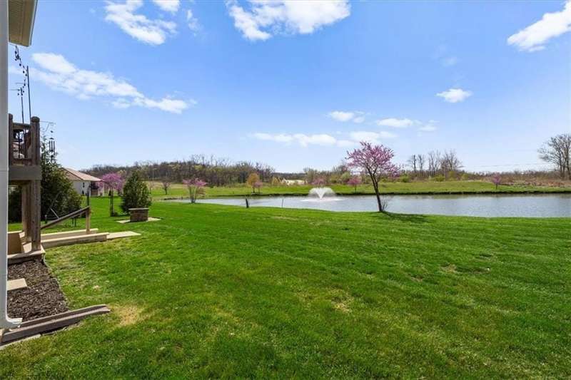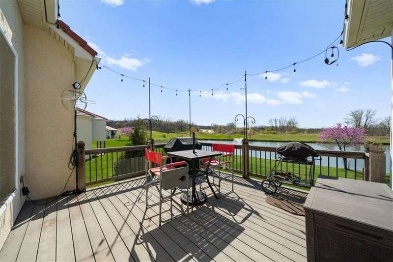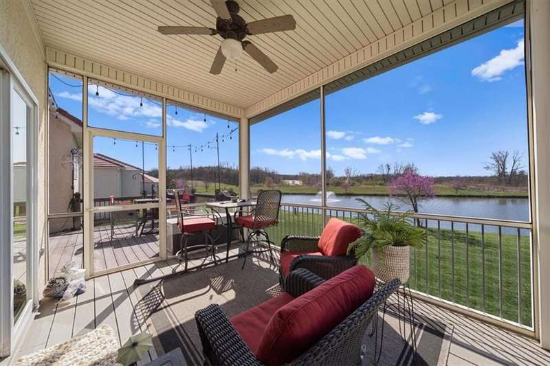 This villa offers luxurious living with stunning views backing to a serene waterscape. Enjoy outdoor relaxation on the screened-in vinyl-covered deck or relax in the sun on the open area deck. Inside, the gourmet kitchen features Corian counters, a breakfast bar, decorative backsplash, a walk-in pantry, under-cabinet lighting, and newer black stainless steel 2021 appliances. The living room boasts a cozy gas fireplace and soaring 12 ft. ceilings, complemented by hardwood floors and decorative trim throughout. The large main suite includes a huge walk-in closet and spa-like bath with 2 separate vanities. Additional highlights include a full laundry room with a sink, new HVAC, new carpet, and newly finished hardwoods. Finished lower-level features walk-out to covered patio along with a spacious unfinished area for storage or workshop for crafts & hobbies. New hot water heater & misc. plumbing upgrades. With attention to detail and modern updates, this home is perfect for comfortable living. This home is like new!