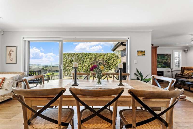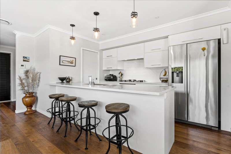 Just minutes to the beach. This immaculate 180m² home blends timeless design with modern comfort. With a versatile layout ideal for couples, families, or those with extended family, it offers effortless living near the beach, cafes, and coastal walkways. Situated on a low-maintenance site and finished in a contemporary brick exterior, this one-level home is positioned back from the road to provide a peaceful and private setting. Soft neutral interiors and open plan living connect seamlessly to a generous deck, perfect for summer entertaining or relaxed evenings. The sleek kitchen includes quality appliances, gas cooking, and a butler's pantry. Three bedrooms are situated in one wing of the home, enjoying a pleasant westerly aspect. The main bedroom is situated at the other side of the home, complete with a stylish ensuite, and offering direct access to the deck, perfect for that early morning coffee while watching the waves roll in. The stylish family bathroom is complemented by a separate toilet, making the morning rush a thing of the past. The whole house stays warm and toasty in the winter months and cool in summer due to the central heating and cooling ducted system. Additional features include a carefully planned garden with fruit trees and a veggie garden; also, internal double garaging and off-street parking for the boat. This property offers a great lifestyle with parks and the shoreline just minutes away, plus easy access to the new motorway This is an easy-care, lock-up-and-leave lifestyle, only an 8-minute drive from the vibrant heart of Warkworth and Matakana.