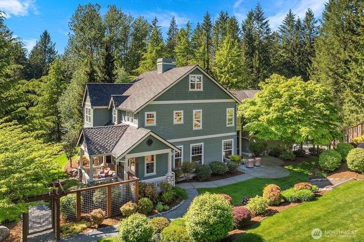 Immaculate 5 bedroom custom-built home sits on a private, park-like corner lot. Designed for making memories inside and out, the open chef’s kitchen flows seamlessly into a spacious great room anchored by a stunning river rock fireplace. With two offices/dens and a bonus room, there are flexible spaces for work, play, or relaxation. Luxurious primary suite is a retreat, featuring a spa-inspired bath, walk-in closet, and private deck overlooking the incredible yard. Oversized lower level bonus room is ready for movie nights, game days, and the ultimate hangout spot. Fully fenced yard is out of a magazine. 3 car garage and large autocourt. Best of Eastside living—space to breathe, room to roam, and a home designed for every chapter of life.