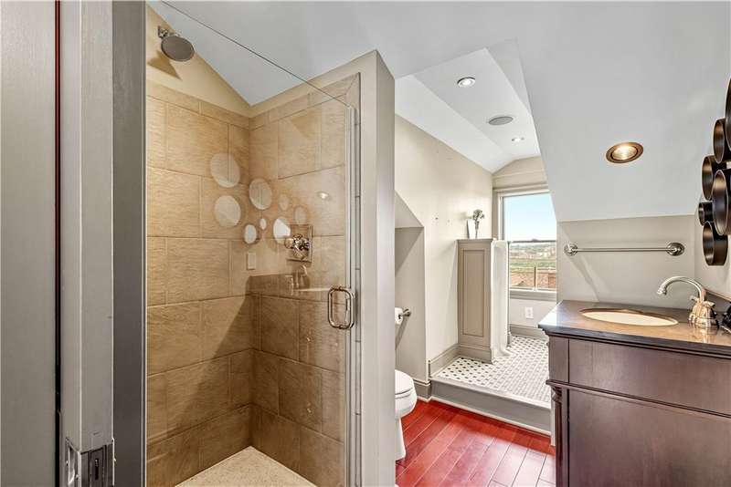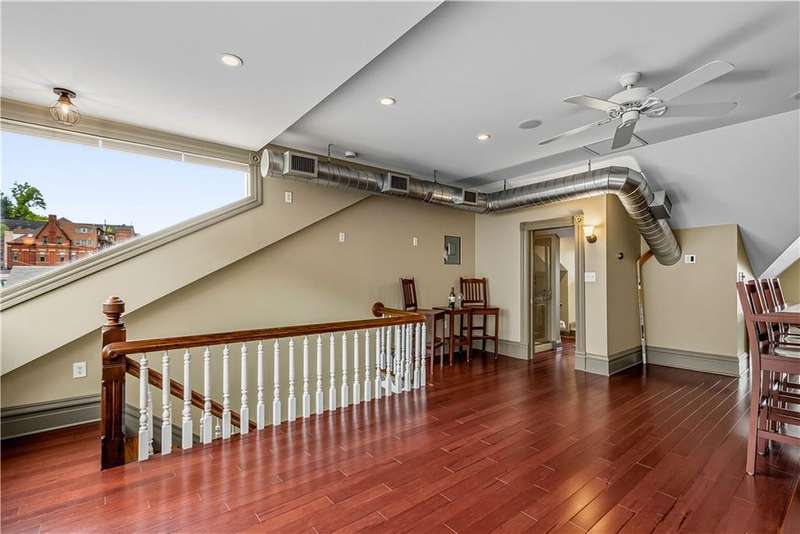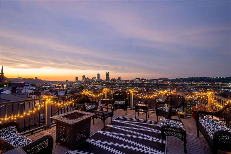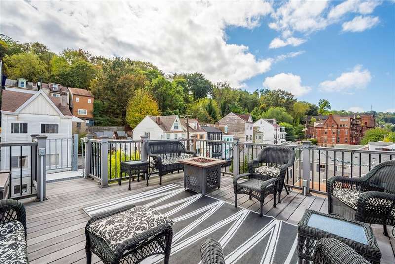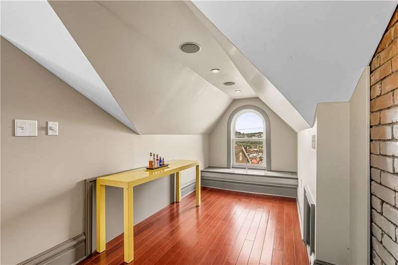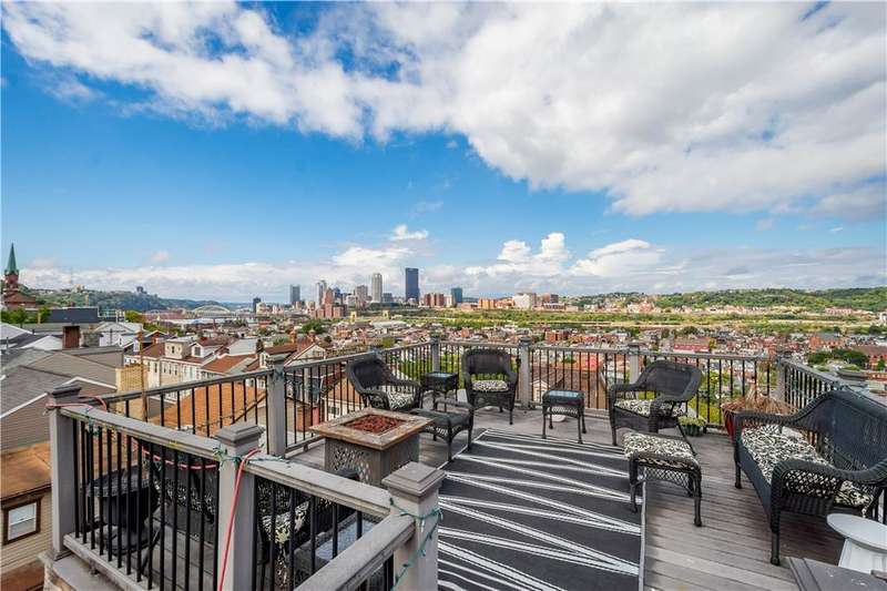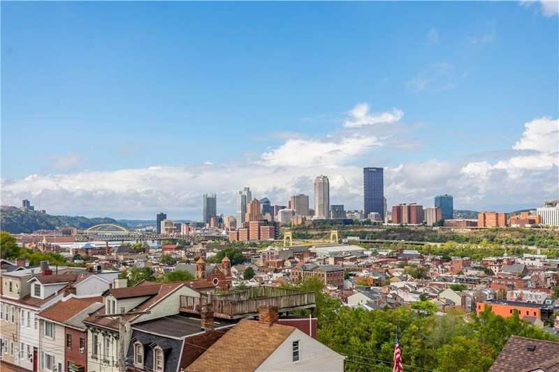 Perched high above the city, this one of a kind residence offers jaw dropping views of Pittsburgh's iconic skyline. Overflowing w/ character, the old world craftsmanship unfolds into modern conveniences highlighting soaring ceilings, exquisite moldings, expansive archways, transom topped doorways, rustic hardwood rich w/ Victorian architecture & appointments. The private owner's suite features an en-suite bathroom w/ glass enclosed tile shower & well equipped walk in dressing room. Guest room/office & charming bath w/ clawfoot tub complete the 2nd level. Ideal for entertaining & unlike anything you'll find in the city, the third floor gathering room is a true showstopper featuring a custom crafted Irish pub inspired wet bar. Four distinctive outdoor spaces create an unparalleled setting for entertaining, each revealing a breathtaking new perspective of the city skyline. Truly a rare opportunity to own a home where legacy is preserved, beauty is redefined, & history is given new life.