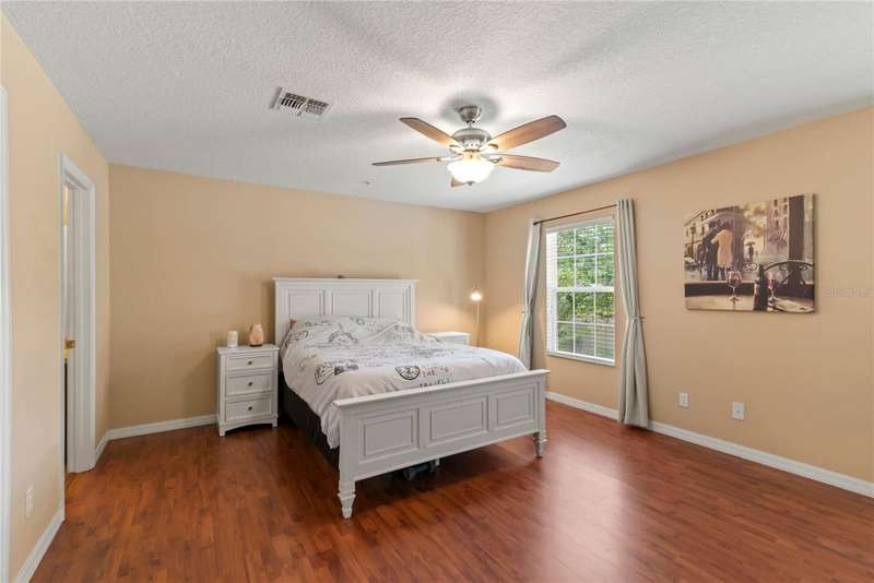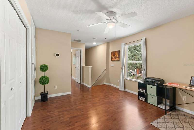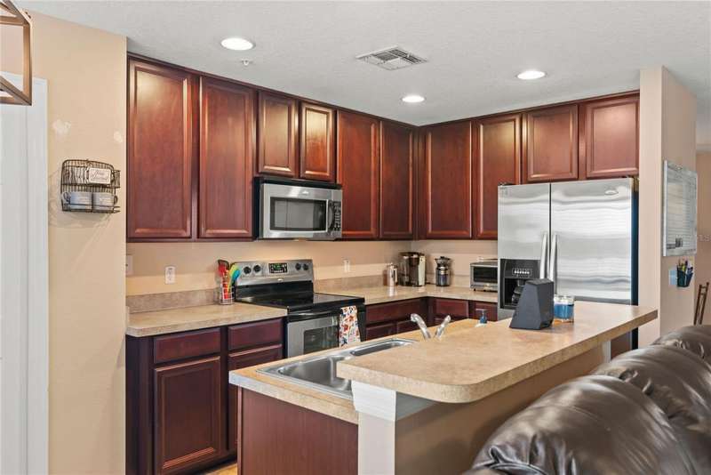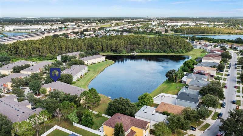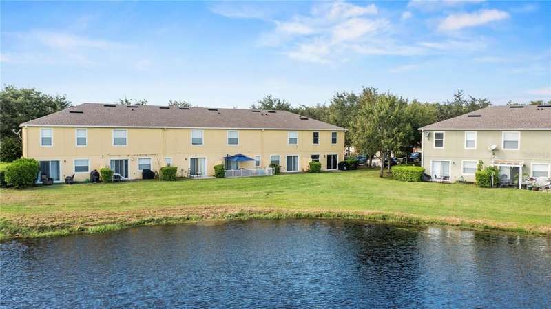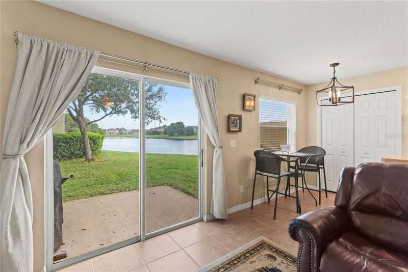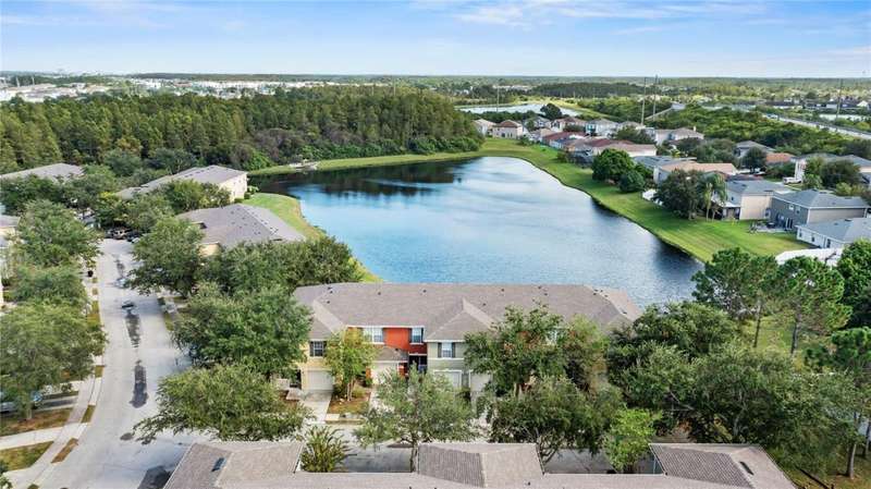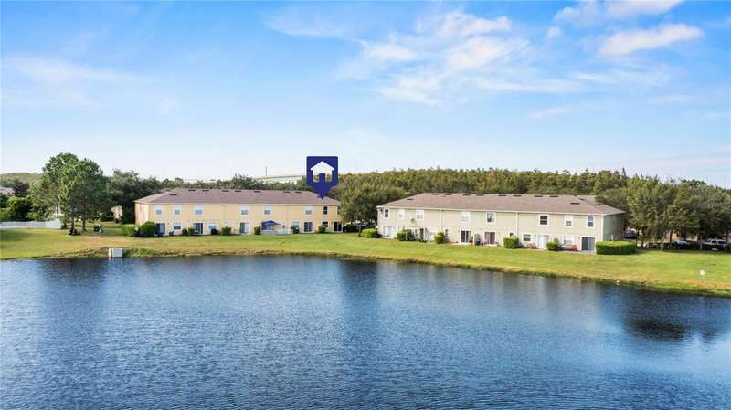 Corner-unit townhome-style condo with tranquil pond views awaits in Lynwood at Southmeadow. This bright 3-bedroom, 2.5-bath residence with a loft and a one-car garage offers an open, carpet-free layout (ceramic tile downstairs, wood laminate upstairs). From the foyer, flow naturally into the dining and family areas, anchored by an upgraded kitchen featuring 42? cherry cabinets, stainless appliances, walk-in pantry, breakfast nook and bar, all overlooking the water. Glass sliders off the main living area lead to a covered patio-perfect for morning coffee or unwinding at day's end. A half bath is conveniently located on the first floor. Upstairs, the owner's suite is tucked apart for privacy and includes a walk-in closet and en suite bath with glass-enclosed, tiled shower. Two additional bedrooms share a full guest bath, while the loft makes an ideal flex space for an office or quiet retreat. Recent upgrades include modern light fixtures and a new HVAC, and the community's roof system was replaced in 2023. All appliances remain, and the condo fee includes water. This unit is favorably positioned near extra parking and the community playground, and its central location provides easy access to major roads, the Loop shopping & dining, and Orlando's top attractions.