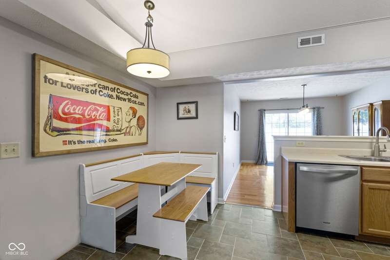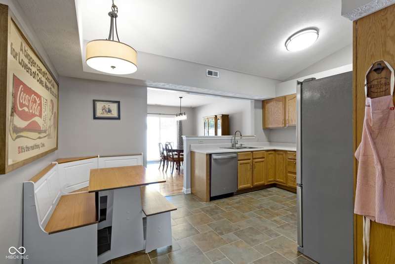 Welcome to this beautifully updated one-level home offering 3 bedrooms, 2 full bathrooms, and a spacious layout designed for both comfort and flexibility. Set on a large, pretty yard with a fully fenced backyard, this property combines charm with modern upgrades. Step inside to find real hardwood floors throughout, newer interior paint, and updated light fixtures that brighten every room. The huge great room provides plenty of space for relaxing or entertaining, while the eat-in kitchen features new appliances and flows easily into a separate dining room-which would also be perfect as a sunroom, office, or play area. Patio doors let in lots of light and provide access to the back patio and yard. Recent upgrades include newer roof, furnace, air conditioner, tankless water heater, water softener, and kitchen appliances, giving you peace of mind and energy efficiency for years to come. Conveniently located near top services, shops, restaurants, parks, nature center, and trails, this home offers the perfect balance of comfort, updates, and lifestyle. Close to downtown Westfield, downtown Carmel, Clay Terrace, and so much more!