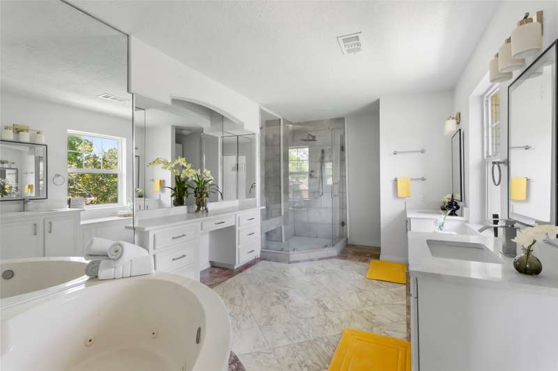 Beautifully updated 3 BR 2.5 Ba home w/ a sparkling pool in sought-after Oak Hollow Subdivision! This spacious two-story offers modern comfort & timeless charm w/ upgrades throughout. The first floor features fully remodeled kitchen w/ modern finishes, new cabinetry, sleek countertops & updated appliances, formal dining & living room, plus a cozy breakfast area w/ fireplace overlooking the pool. The inviting family room provides plenty of space for entertaining or relaxing. Upstairs, the primary suite impresses w/ a custom walk-in closet & spa-like bathroom complete w/ a jetted tub, separate shower & elegant vanity. Outside, enjoy your own private retreat with a peaceful wooded backdrop and refreshing pool—perfect for gatherings or quiet weekends at home. During renovations, the pool was resurfaced, new windows were installed throughout, and a brand-new front door & sliding glass door to the pool area were added. A brand-new driveway adds to the home’s curb appeal & convenience.