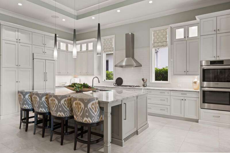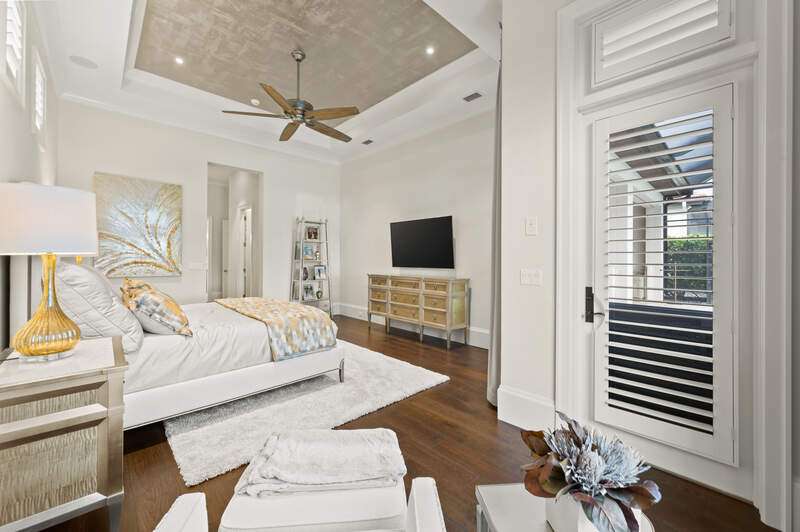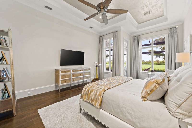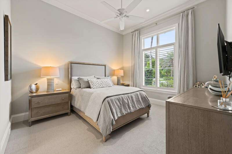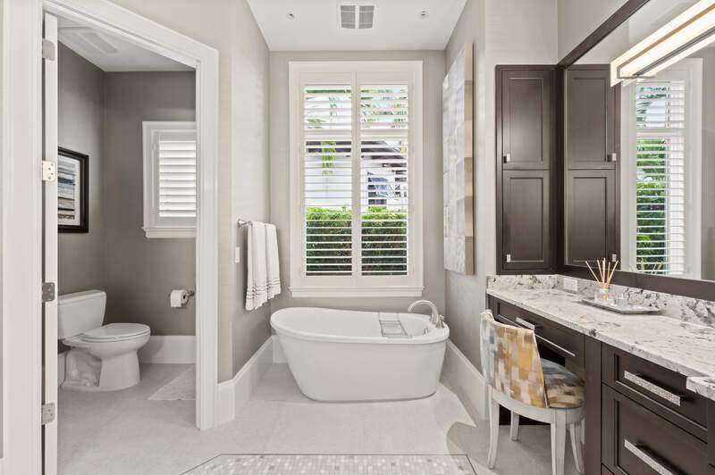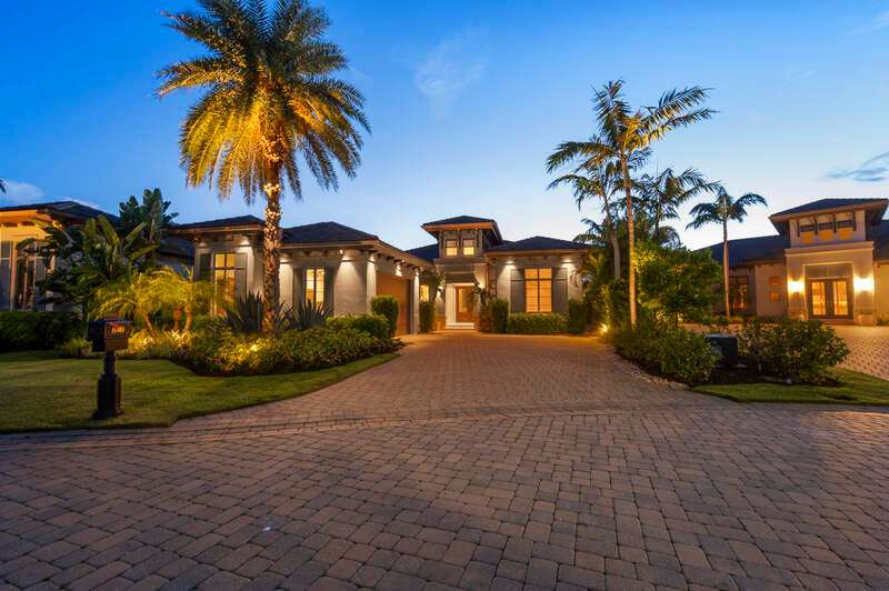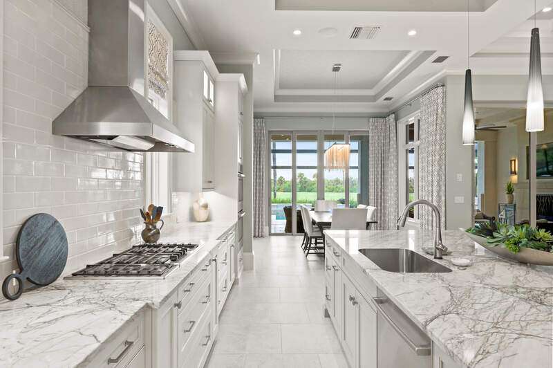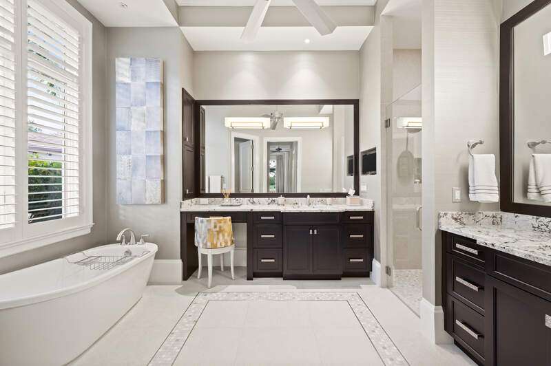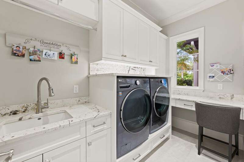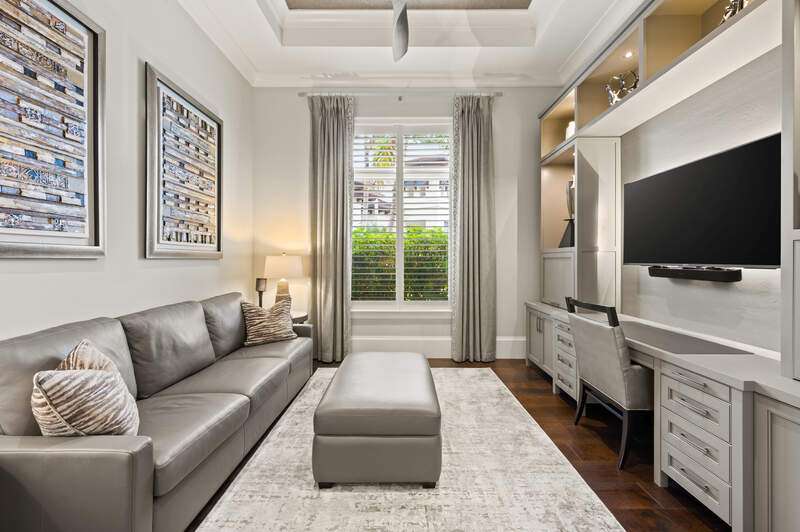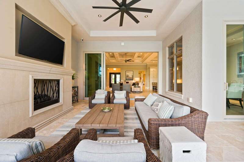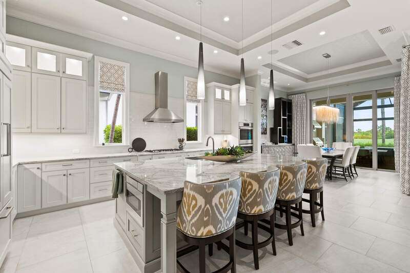 IMMEDIATE GOLF MEMBERSHIP AVAILABLE with this Luxurious West-Facing home offering lake, golf course, preserve views and glorious sunsets Experience elegant living in this stunning custom-built residence by Gulfshore Homes, professionally designed by Vogue Interiors and perfectly positioned in the exclusive enclave of Westlake Court. Step through double entry doors into a light-filled interior boasting 12-foot ceilings with exquisite detailing, designer tile flooring, and custom built-ins. The open-concept layout is ideal for entertaining, with the spacious great room and dining area flowing seamlessly to the outdoors through 10-foot impact resistant sliding glass doors. The chef's kitchen is a standout feature, offering a large center island, custom cabinetry with ample storage, under-counter microwave drawer, and a U-Line dual-zone wine cooler. Outside, the lanai is a true private retreat. Travertine tile surrounds a resort-style pool and spa, accented by dramatic Grand Effects fire and water features. A custom outdoor kitchen, covered dining area, and fireplace with handcrafted screen create the perfect setting for relaxed living and entertaining-all while enjoying unobstructed sunset views.The luxurious primary suite features detailed ceiling finishes, designer wall treatments, and customized walk-in closets. Two guest suites, a den/office, powder room, and an oversized 2.5-car garage complete this exceptional home. Additional highlights include a whole-house generator, Anderson impact resistant windows, custom window treatments, built-in sound system and ample garage storage. Enjoy the unmatched lifestyle West Lake offers from the brand new Beach Club on the Gulf to the resort-style pool, fitness center, Championship Pete & P.B Dye golf course, pickle ball, tennis, private boat launch to the Gulf and Estero Bay and so much more!