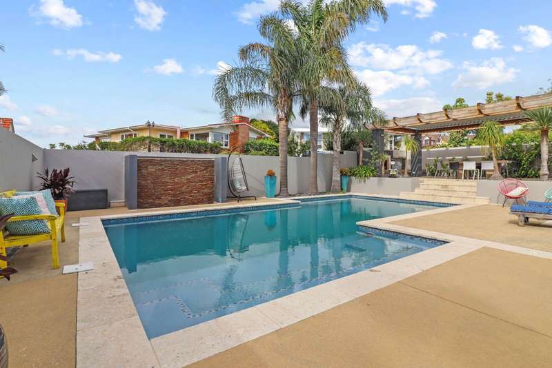This solid home of expansive scale beautifully blends together 1960’s character charm with sophisticated modern living. It all comes together on an elevated north facing 800m site in Pillan’s Point, where the stage is set for sunny resort style living. Inside on the main floor, hardwood Tawa flooring and ornate scotia offer a feeling of permanence, gracing the well-connected family living space with a character feel that is hard to replicate. The well-appointed kitchen here anchors the heart of the home and is ready for gatherings of any size. This culinary hub mingles well with dining and living all extending out to an expansive north facing decking. The sea views throughout this level frame the Mount beautifully and encapsulate a rich coastal tapestry enjoyed also by two of the home’s generously sized bedrooms found on this level. The upper level is a private haven where two more sun-drenched oversized bedrooms await, including a serene master retreat with ensuite, both indulging in north facing wide vistas showcasing Mount Maunganui and Matakana Island. Downstairs is ideal for those who like to entertain or just find their own space with a range of options. A large separate games lounge, home theatre, office, designated gym, custom built bar and wine cellar room are all at your beck and call. Polished concrete floors instil a modern feel to this level, as does the three-car garaging with plenty of room for your toys. The home’s third bathroom is also found on this level which is easily accessed by the pool complex out back. The backyard is what really transforms the property into resort style living all year round. Thoughtfully landscaped with tranquil water features and a tropical vibe, get set to dive into the two metre deep in-ground pool or relax in the spa. A rare geothermal bore provides efficient heating for the pool and aspects of the home and can fill the hot tub in minutes so you can always say yes to those unexpected guests. Host unforgettable gatherings with a magnificent louvered-covered alfresco dining area featuring a large teppanyaki dining table. You’ll be very busy relaxing here, all summer long. Whether it’s a relaxed family dinner or stylishly entertaining guests, this outdoor sanctuary blends luxury, comfort, and functionality in one breathtaking setting. Ensuring total security and seclusion are a full perimeter block wall and electronic front gates with abundant off-street parking within for all your friends and their basketball playing kids. Situated in an exclusive location, high on Pillans Road, near the CBD and key amenities, this property offers a lifestyle of unparalleled luxury and convenience. Often sought but seldom found, don’t miss your chance to experience this home’s offering. Call us today to see what you’ve been missing. Tender: Closes on Thursday 9 October 2025 at 3:00PM (unless sold prior)