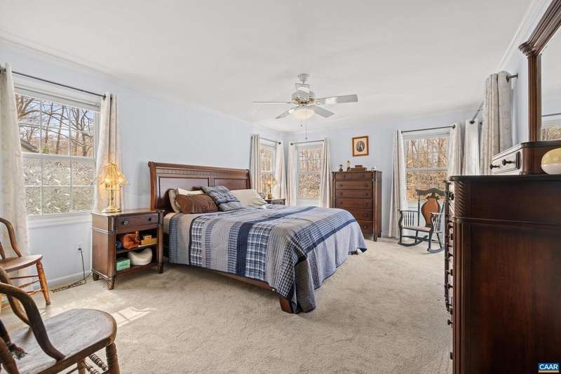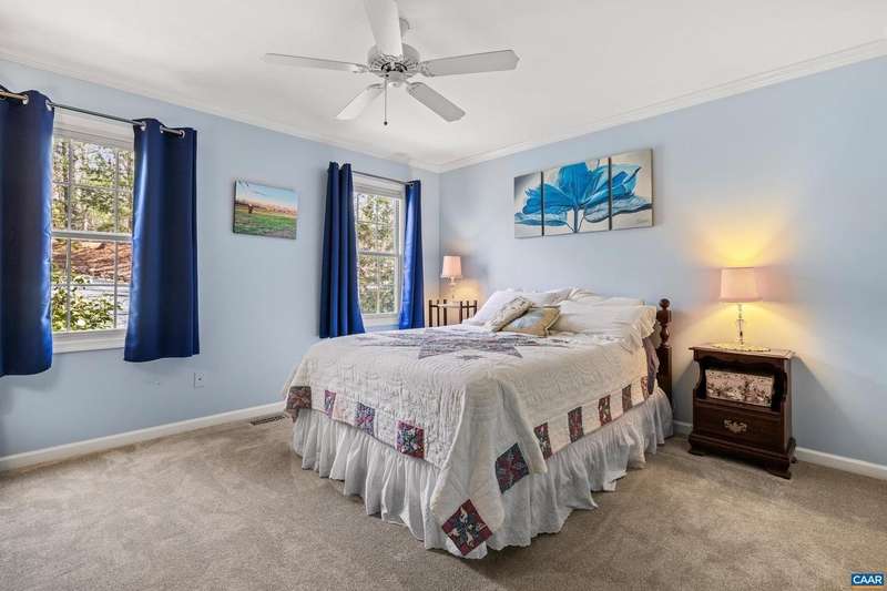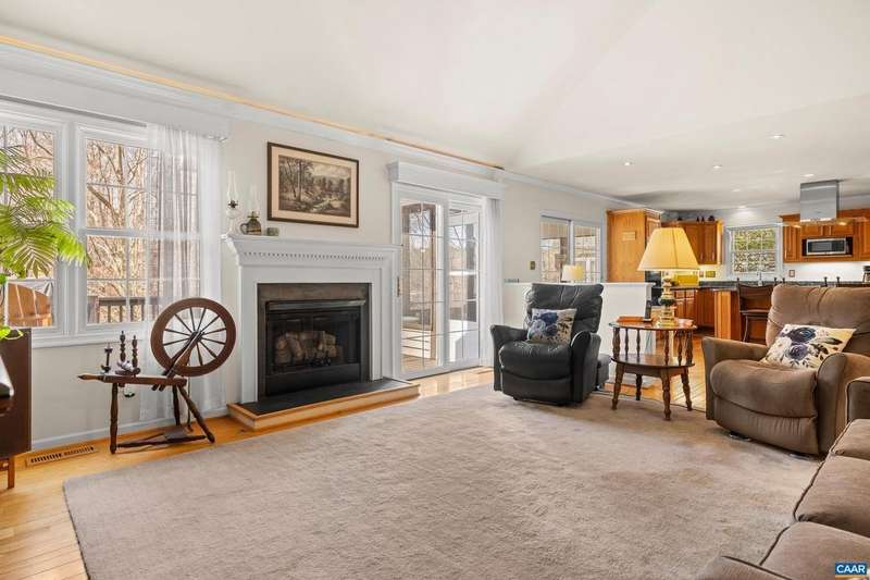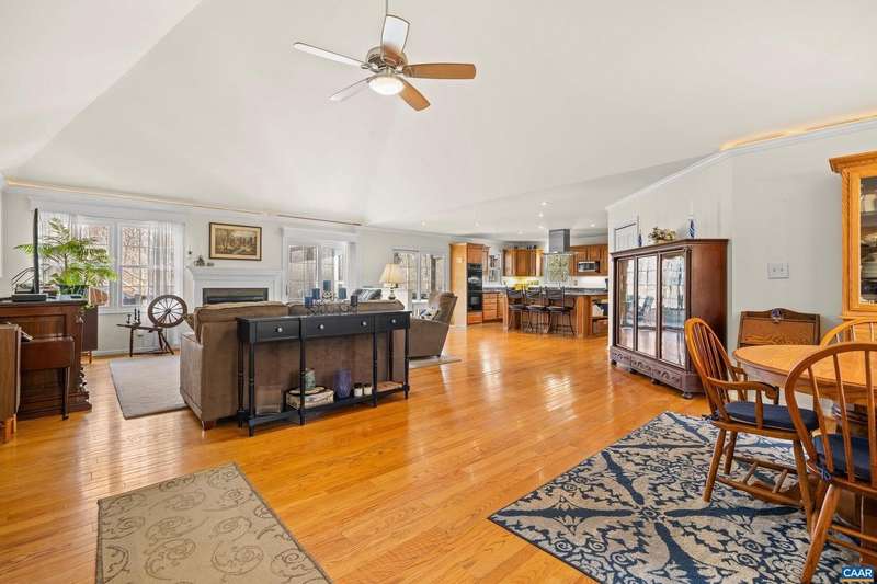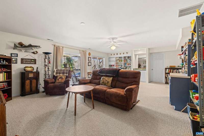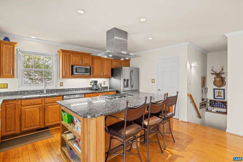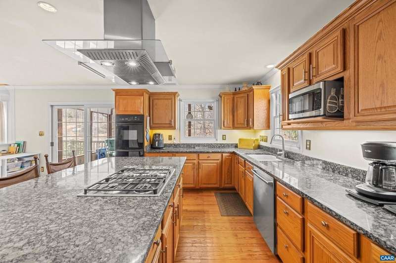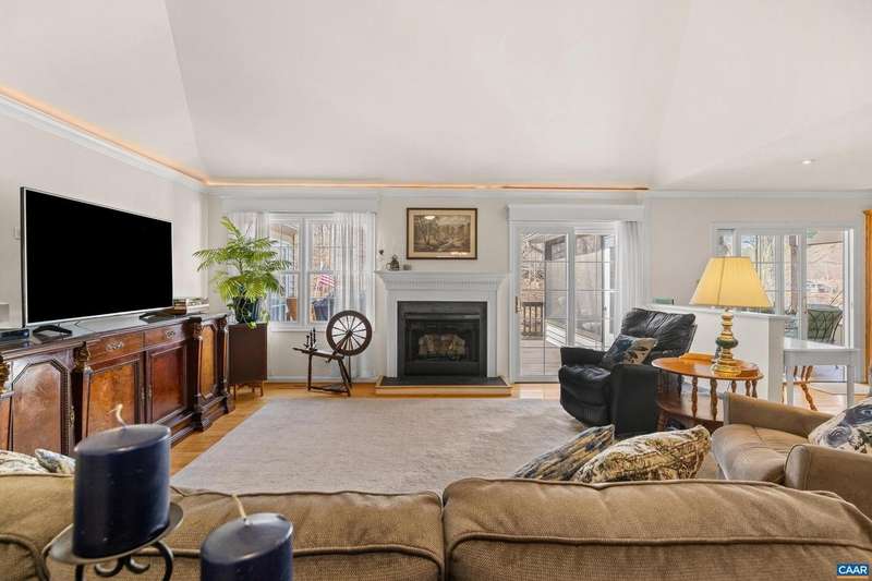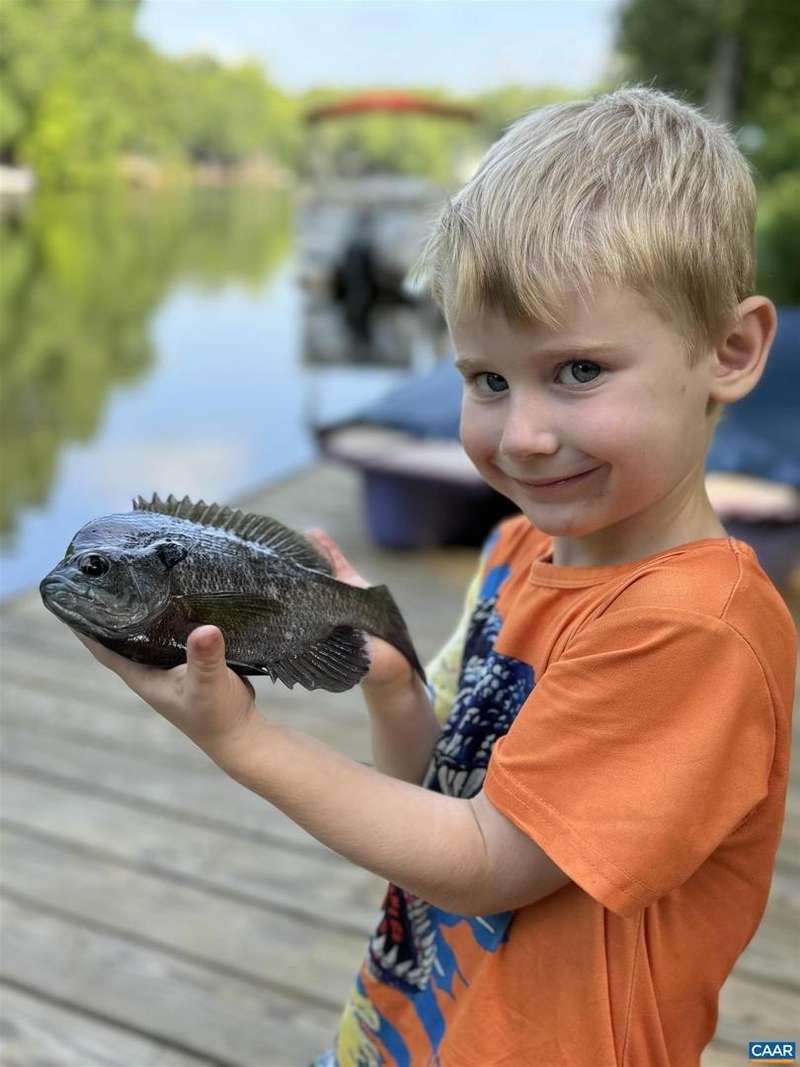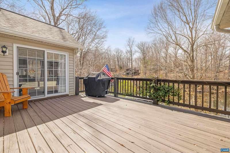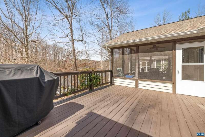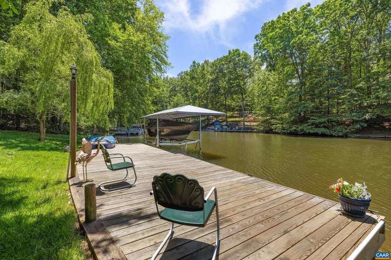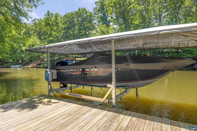 EXPERIENCE THE BEST OF LAKE LIVING! Beautifully maintained waterfront home offers 110? of lake frontage on a peaceful .61-acre lot in a no-wake cove?perfect for fishing, kayaking, swimming, or floating. A large dock w/ boat lift (new in 2022), fishing/ski boat & pedal boat are included. Built by award-winning Southern Homes, this gem features an open floor plan, vaulted ceilings, solid hardwoods & stunning lake views from the cozy living room w/ gas fireplace. Kitchen Aid double oven, Bosch dishwasher, Miele gas stovetop, Samsung French door fridge, Maytag washer. Main-level primary suite includes a spa-like bath w/ heated tile floors, walk-in shower & double vanity. Outdoor living includes screened porch, large deck & screened patio?all overlooking the lake. Terrace level includes bedroom, wet bar, office/craft room (optional 4th bed) & workshop w/ private yard access. Gas hookup ready for 2nd fireplace & outdoor shower. Whole-yard irrigation w/ new pump (2024). New roof, gutters & guards (2023). VA Green lawn service & A/C maint. paid through 2025. Close proximity to Beach 2 & easy access to the water?s edge via a lush, grassy backyard?your private lakeside retreat awaits! Must see!,Granite Counter,Oak Cabinets,Fireplace in Living Room