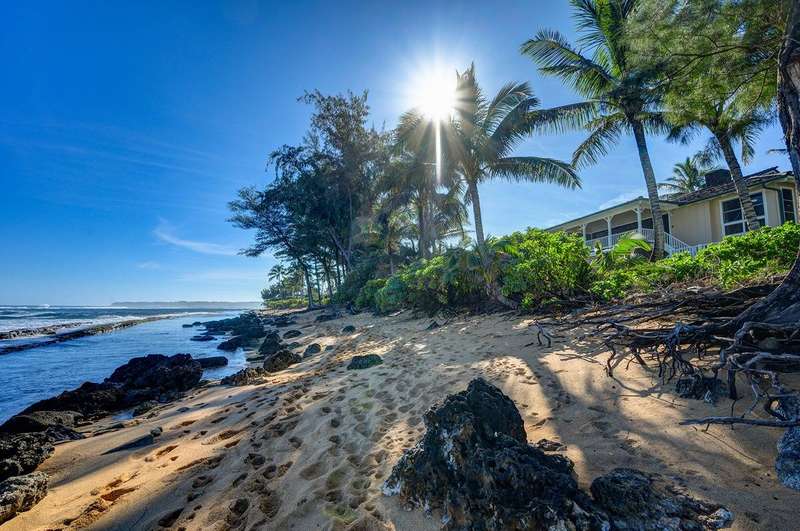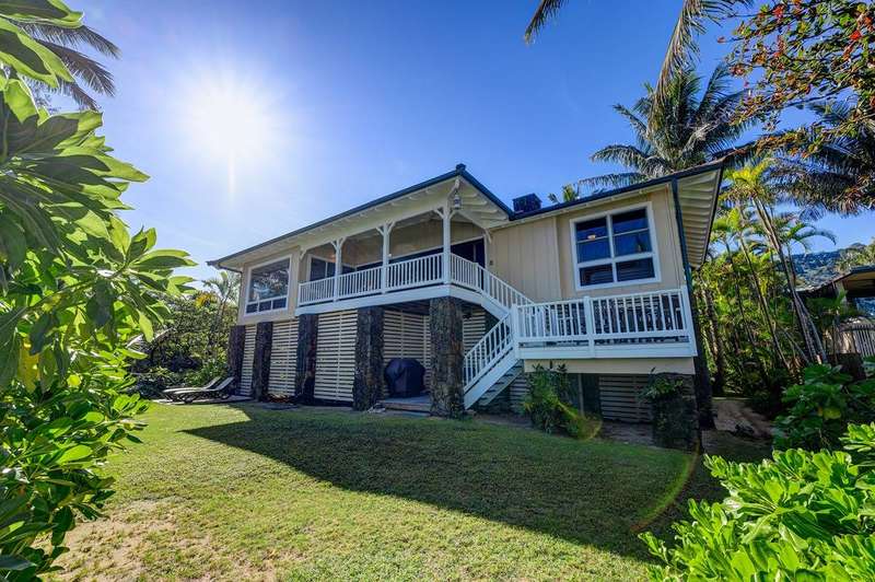 Located on a quiet stretch of one of Kauai's incredible North Shore beaches, Holo Makani is an idyllic tropical sanctuary. Expansive ocean views extend from spacious living areas throughout this 3 bedroom, 3 bathroom home. As a permitted vacation rental (TVR) with an excellent rental history, this well built, timeless, classic style beach house leaves little to be desired with its hardwood flooring throughout, vaulted ceilings, white on stainless kitchen, ipe decking, lava stone accents and swimming pool.