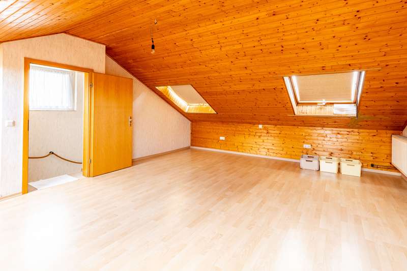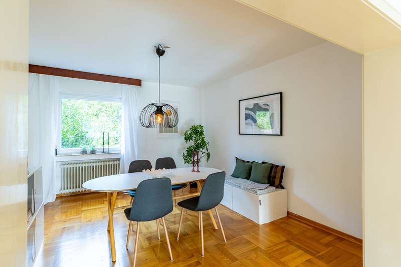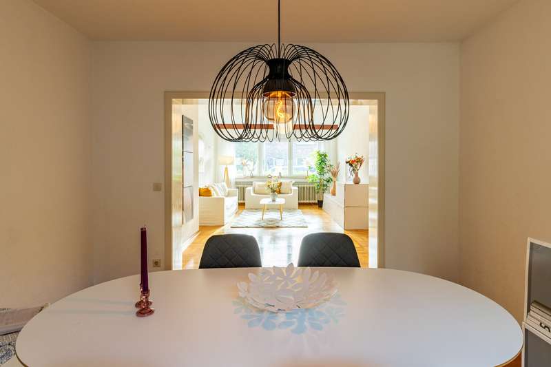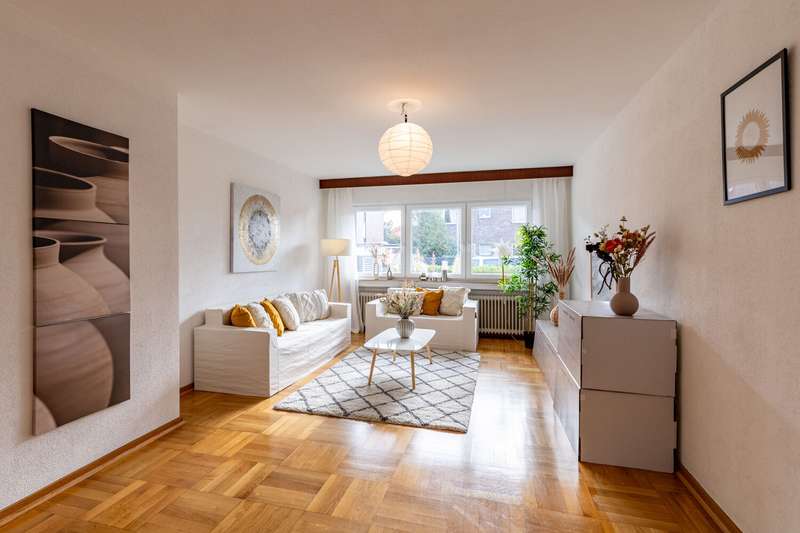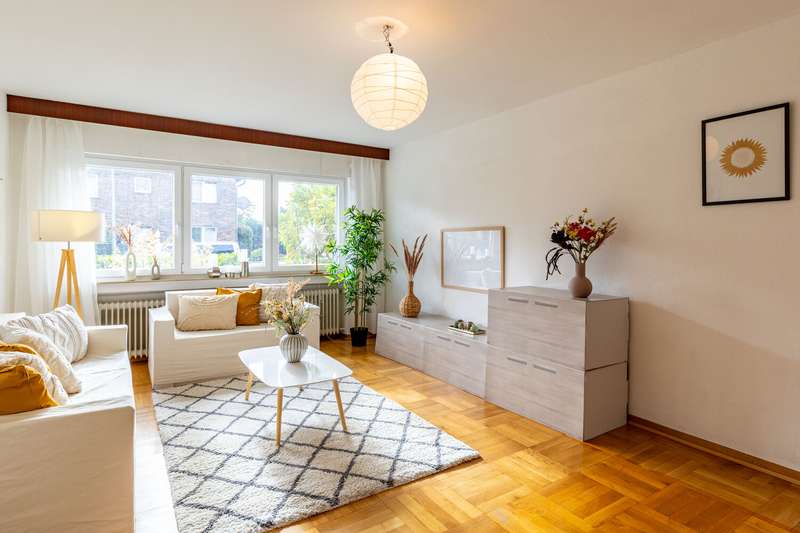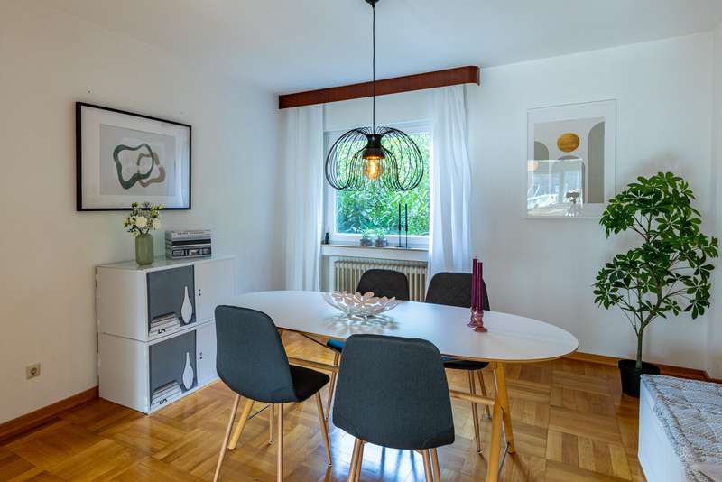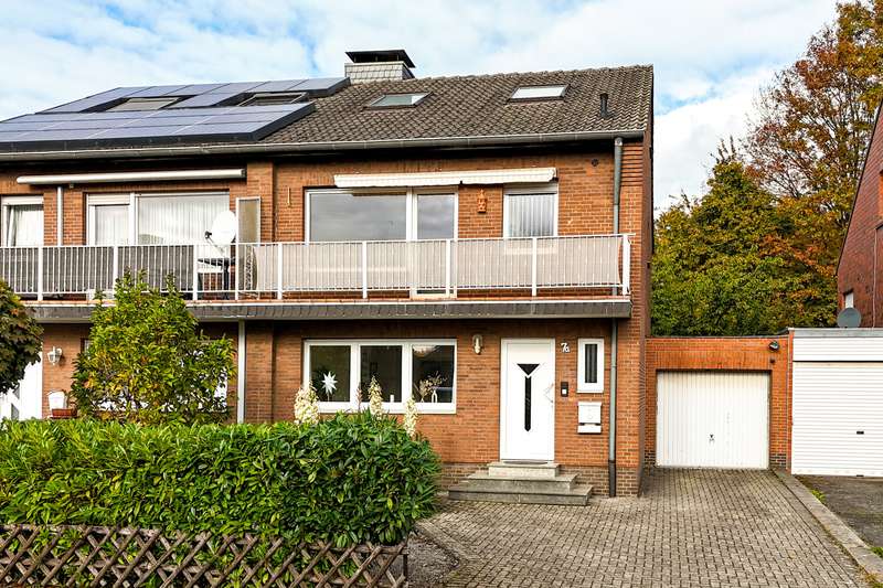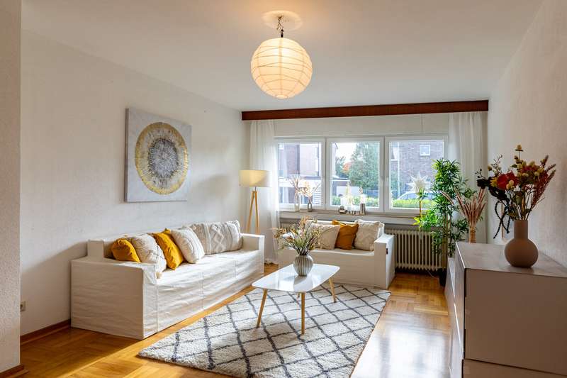 Make yourself at home! This solid semi-detached house with a full basement is located in the popular Hoisten district, not far from the Hummelbach stream. It offers a timeless floor plan with a modern room layout and plenty of space: the 114 m² of living space is supplemented by approx. 35 m² of living space in the roof and approx. 25 m² of office space in the basement; this results in a usable living space of approx. 174 m²! All living rooms are fitted with exceptionally beautiful parquet flooring, the hallway with timelessly beautiful marble. The bright, friendly living room offers a view of the cozy garden. The wall between the dining room and kitchen could probably be easily removed to create an open-plan living/dining area. Upstairs there are three bright bedrooms (one with a balcony and wood-burning stove and the other with a water connection/washbasin). A daylight bathroom with bathtub completes the offer on the upper floor. The top floor has been converted and is ideal for use as a hobby or playroom or as an office. In the basement you will find rooms for work/hobbies (an office is registered), washing, drying and storage - there is even an additional small shower room. The garage has a cellar and the oil tank is located in this room. The house as a whole is in need of renovation and some repairs. The street-side wall in the laundry room is damp, the skylights in the studio are leaking, some shutters no longer work properly and the gutters need to be partially repaired - but the effort is definitely worth it, because the charming, solid house really offers a lot of space and it is in one of the most sought-after locations in Neuss! Don't hesitate to arrange a viewing appointment with us! We look forward to seeing you!