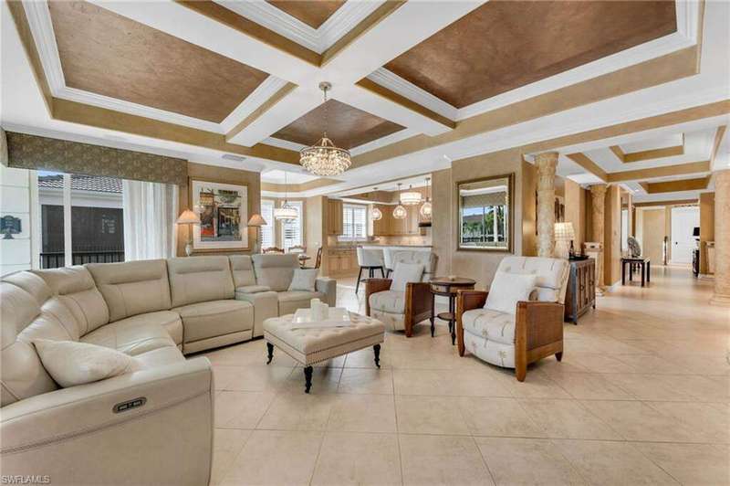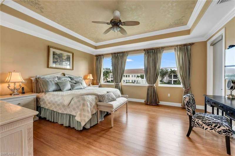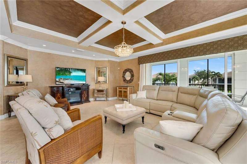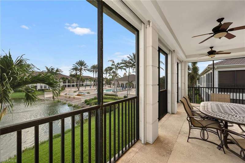 PRICED TO SELL!!! Avellino Isles in Vineyards - Luxurious Penthouse Suite with Private Elevator! END UNIT. Experience elegant living in this spacious penthouse-style coach home, located in the highly sought-after Avellino Isles community within the Vineyards. This end unit offers panoramic lake and fountain views and features 3 bedrooms plus a den (optional fourth bedroom with closet), 3.5 bathrooms, and a 2-car garage. The expansive, screened lanai is ideal for entertaining, while the interior showcases timeless architectural details including coffered ceilings, crown molding, and custom window treatments. Additional features include impact-resistant windows and electric hurricane shutters for peace of mind. Avellino Isles is the Vineyards' premier coach home community, privately gated within the Vineyards main gates. Residents enjoy exclusive access to a newly renovated 5,600 sq. ft. clubhouse offering a resort-style infinity-edge pool and spa, grand salon, fitness center, library, and outdoor cabana. Vineyards Country Club offers optional private membership complete with 36 holes of Championship Golf, 12 Har-Tru Tennis Courts, Pickle ball & Bocce. Resort Style Pool & Spa. New Outside Bar area near pool. New Wellness & Spa Facility with Fitness Center, Cafe, Halotherapy Salt Room, Massage and Salon Services, Salt Water Lap Pool.