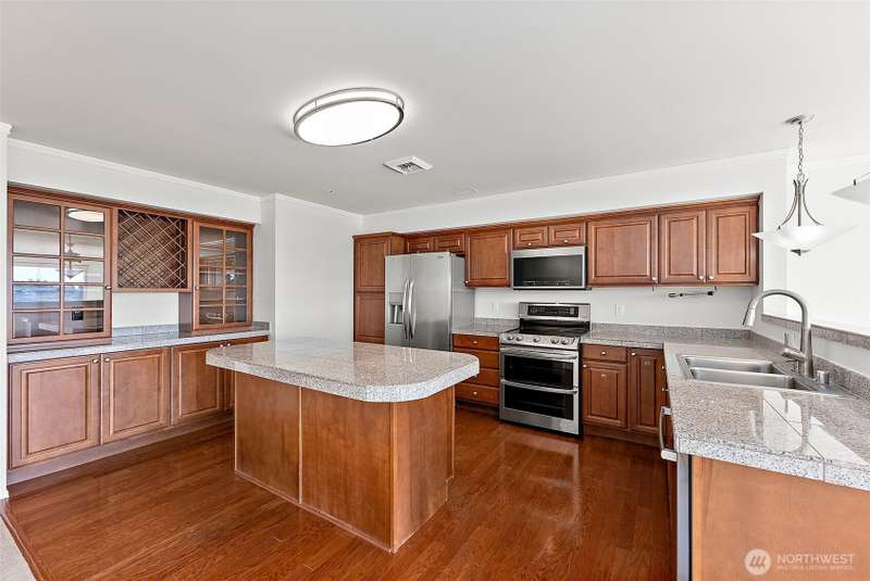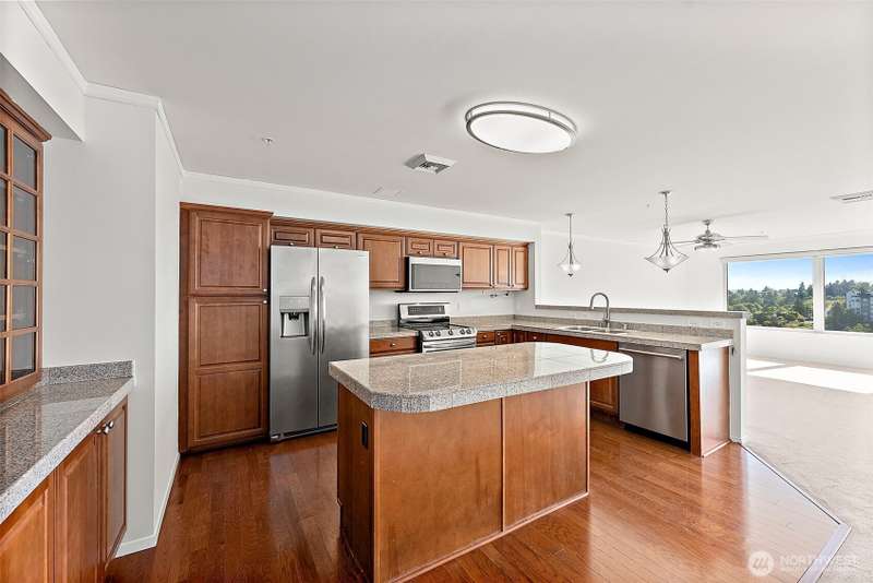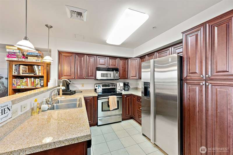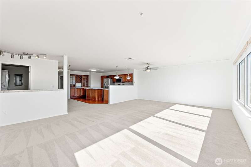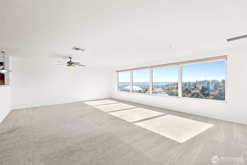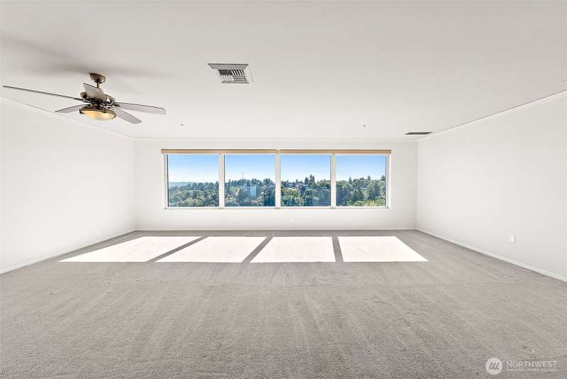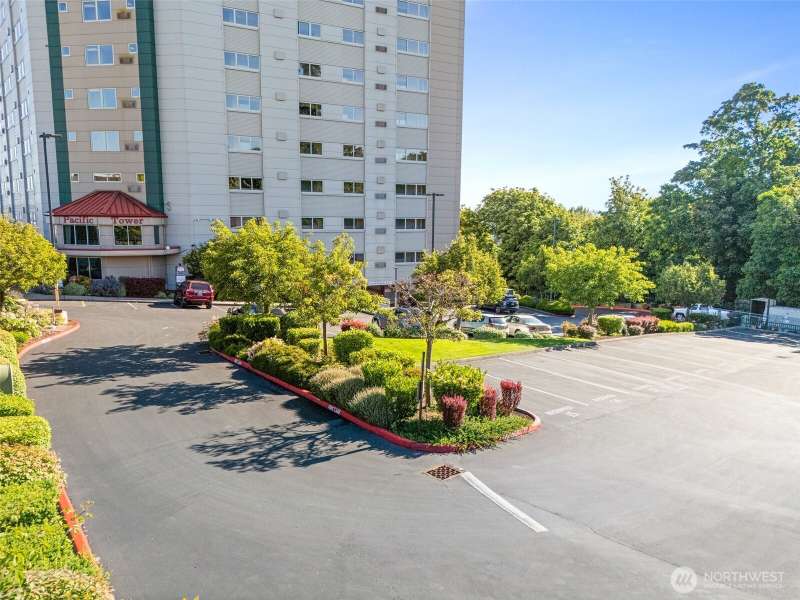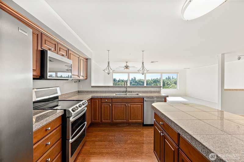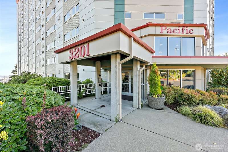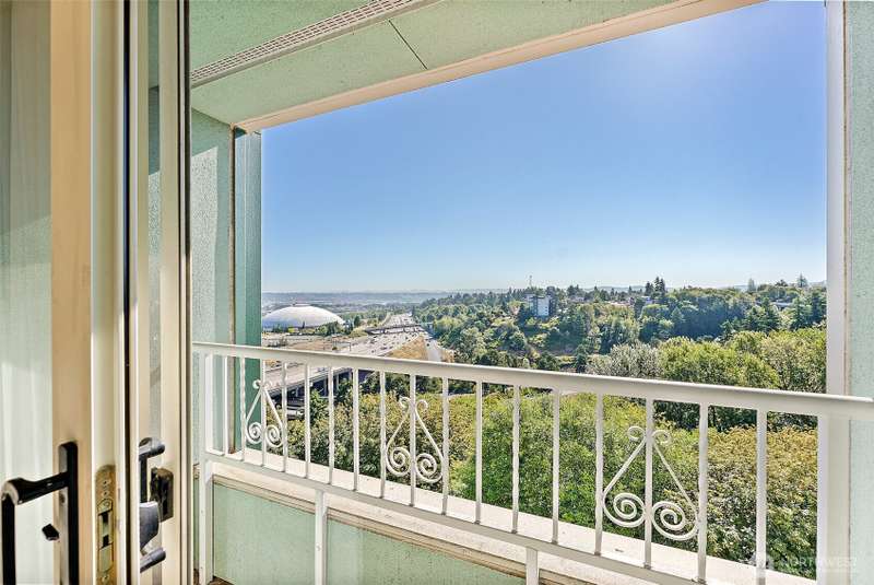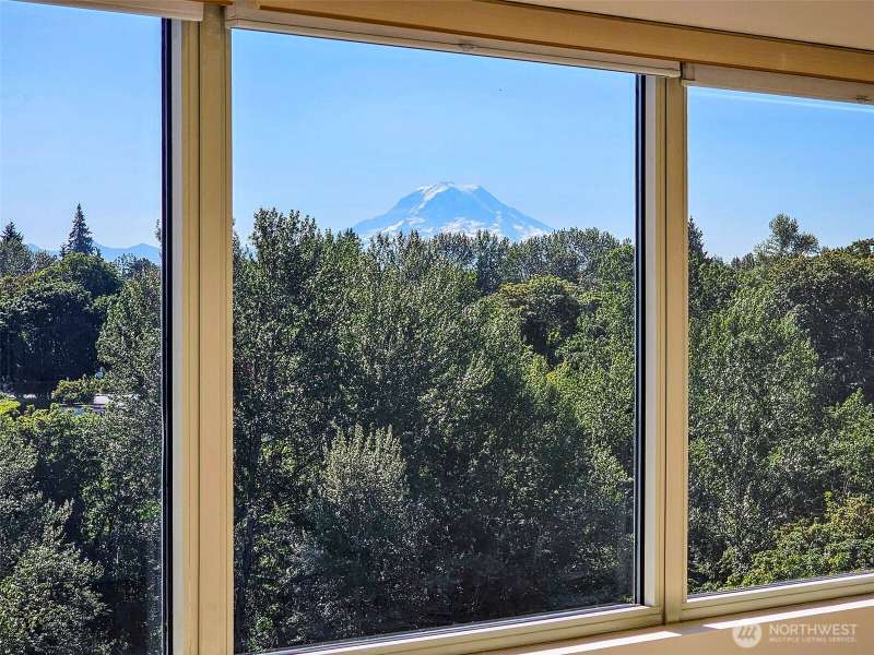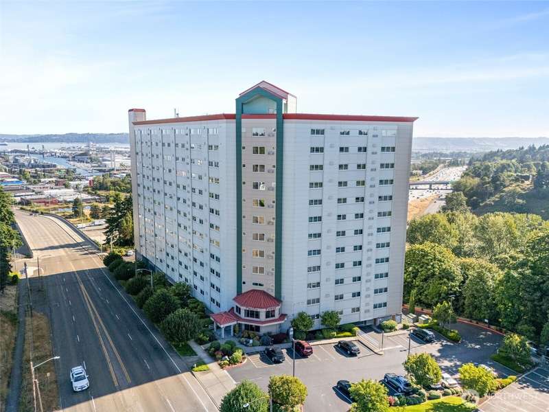 Stunning 3-Bed Condo w/Views of Mt. Rainier & the city. Step into a light-filled living space w/large windows showcasing the scenery from nearly every room. Fresh paint, updated light fixtures & switches compliment the unit. Kitchen boasts ample cabinetry, generous counter space, & seamless flow into the dining & living areas — perfect for entertaining. Enjoy A/C, & private in-unit laundry. The primary suite w/private bath & balcony access offering a serene retreat after a long day. The building boasts elevator access, secure locked lobby w/key entry, & fitness center, extra storage space & reserved covered parking. Minutes from downtown Tacoma, waterfront, quick access to the best dining, shopping, & entertainment the city has to offer.