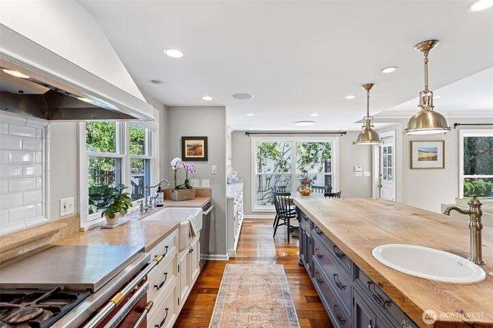 A Windermere classic that’s equal parts charm and everyday ease. Big, bright rooms flow effortlessly, perfect for lively gatherings or quiet downtime. At the heart of it all - a sunny open kitchen with a dreamy island, and plenty of space for casual meals or late-night chats. The main-floor primary suite makes life easy, complete with a spa-inspired marble bath. Upstairs, three oversized bedrooms and a versatile bonus room give you endless options—work, play, or just spread out. 2-car garage even comes with a finished loft above; ideal for an office, art studio or gym. Lush mature gardens, with extra wide side-yards for privacy. And yes, Windermere Beach Club access is just around the corner. Beauty and practicality, right here at home.