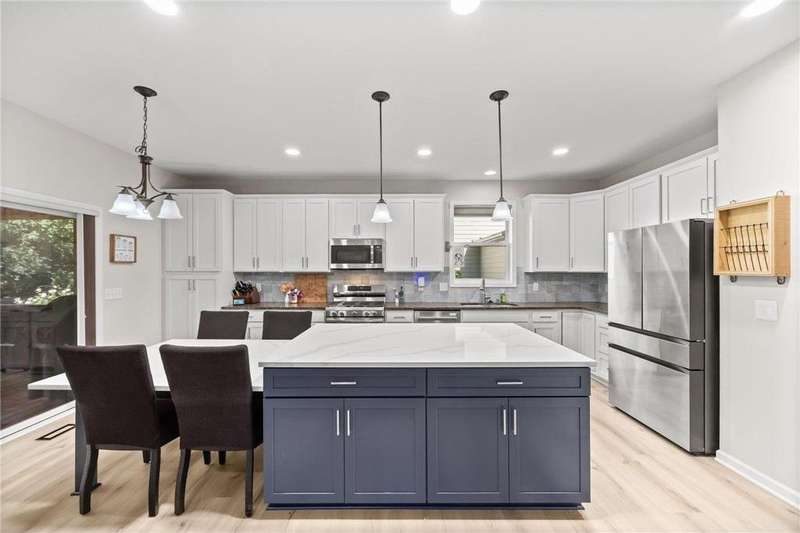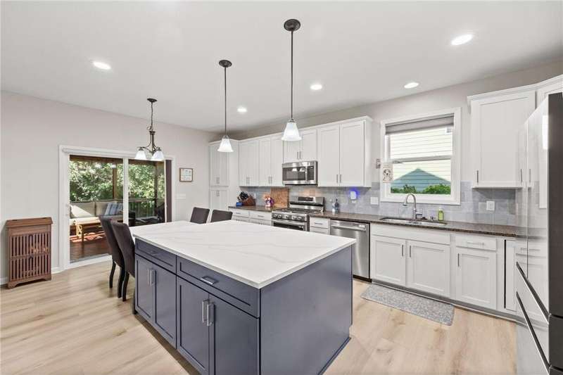 Welcome to this beautifully updated 5-bed home within the Wayzata school district! Enjoy peace of mind with NEW roof, furnace, AC, appliances, plus a newly installed solar system that will be fully paid off at closing, giving you the benefits of clean energy and lower electric bills from day one. The heart of the home is the stunning kitchen with an extended oversized island, soft-close cabinetry, and open-concept layout—perfect for entertaining and holiday gatherings. Relax in the vaulted three-season porch or host guests on the spacious paver patio with built-in fireplace. Upstairs features 4 large bedrooms, California closets, laundry, and a luxurious owner’s suite with dual walk-ins. You'll also love the main floor office, custom mudroom, LVP flooring, and lower-level second kitchen, theater space, in-law suite, and game room. Storage abounds, and the oversized garage includes EV hookup. Unbeatable location on a quiet cul-de-sac street with sidewalks, trails, and no thru-traffic. Private backyard and scenic wetland views make this home truly special!
