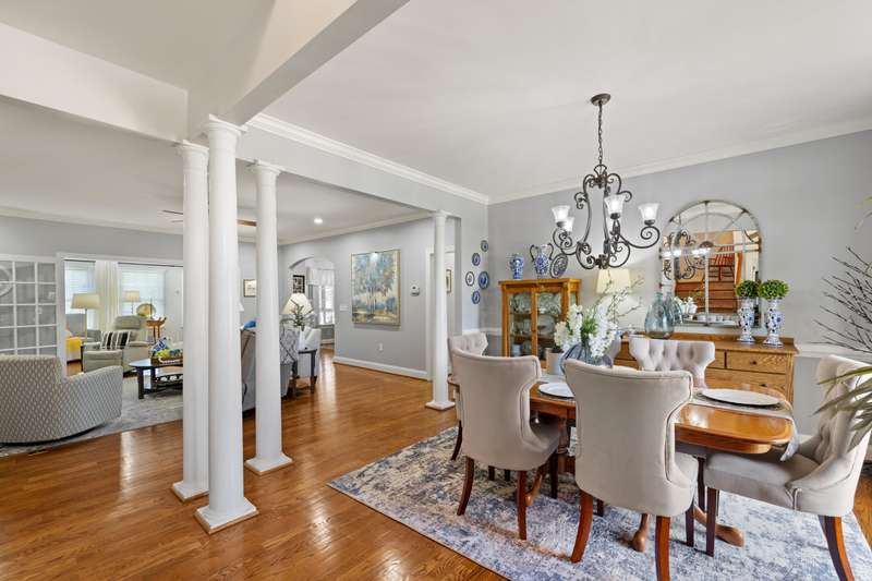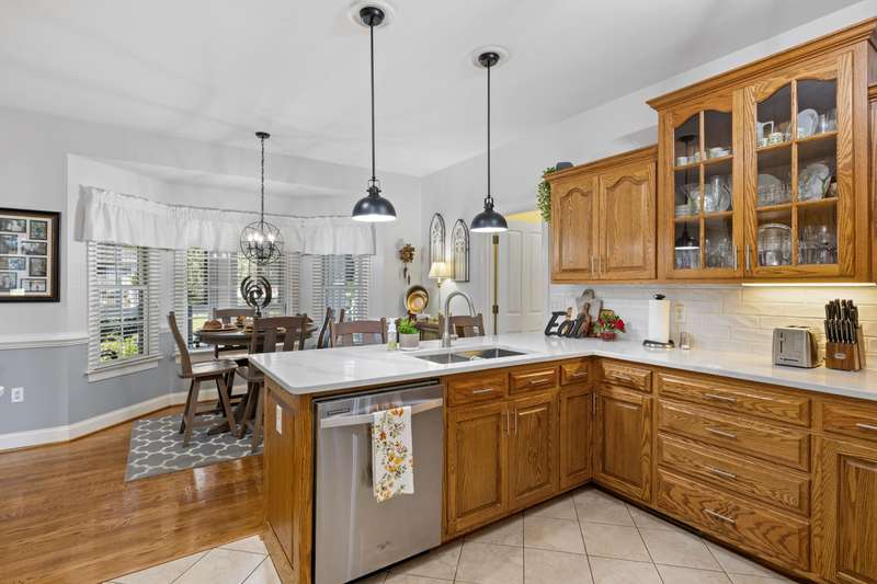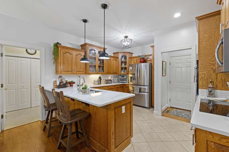 Gorgeous & Updated 4-Bedroom Home in Desirable Oak Meadows Neighborhood! This beautifully maintained home offers stunning curb appeal and thoughtful updates throughout. Featuring 4 spacious bedrooms and 3 full baths, this home is perfect for comfortable family living and entertaining. Step inside to a welcoming entry that flows into an elegant dining room and a cozy living area with an attractive gas fireplace and built-in cabinets. The kitchen boasts Quartz countertops, a tile backsplash, and plenty of cabinet space—ideal for the home chef. Enjoy morning coffee in the bright sunroom or relax year-round in the enclosed screened-in porch. Hardwood and tile floors add warmth and character throughout. The large utility room provides added convenience, while the 2-car garage and unfinished walkout basement offer plenty of storage or future living space potential. Outdoor living shines here with a charming front porch, composite deck, and a huge stone patio with pergola—all surrounded by tasteful landscaping. Located in a convenient, sought-after neighborhood, this home truly has it all.