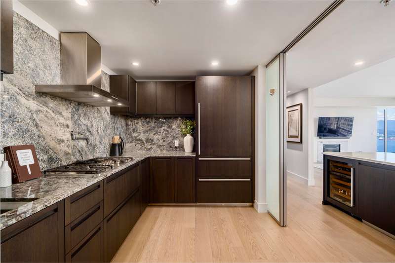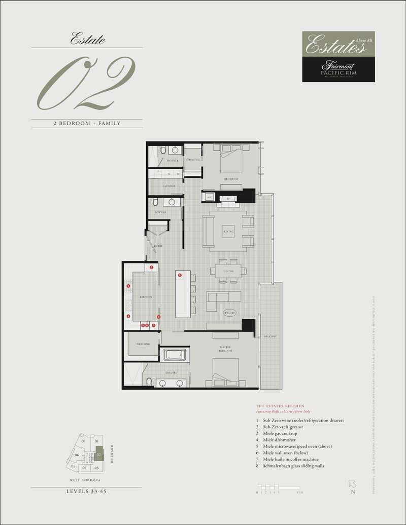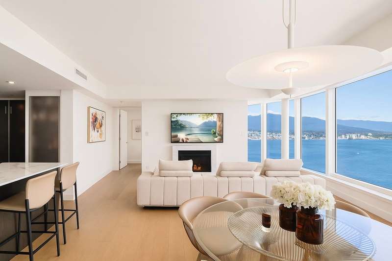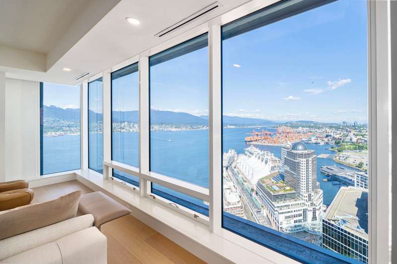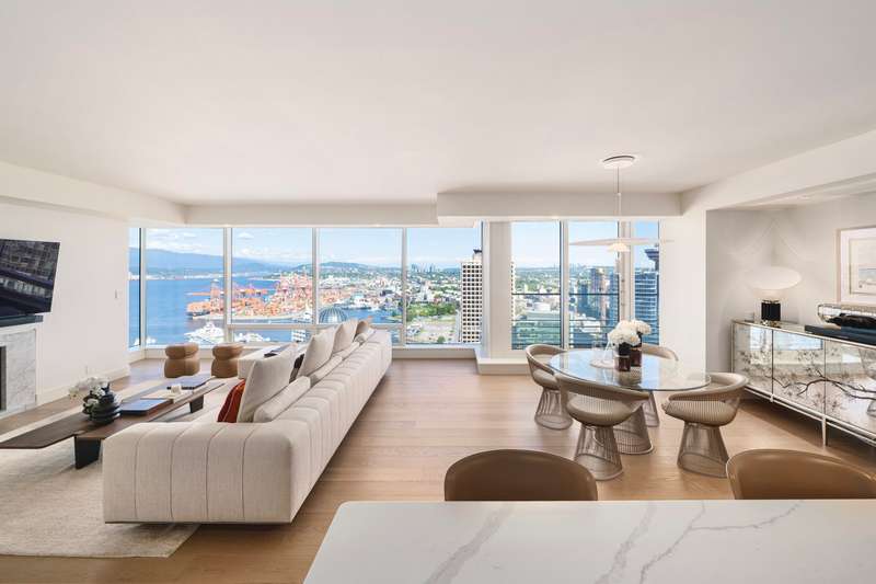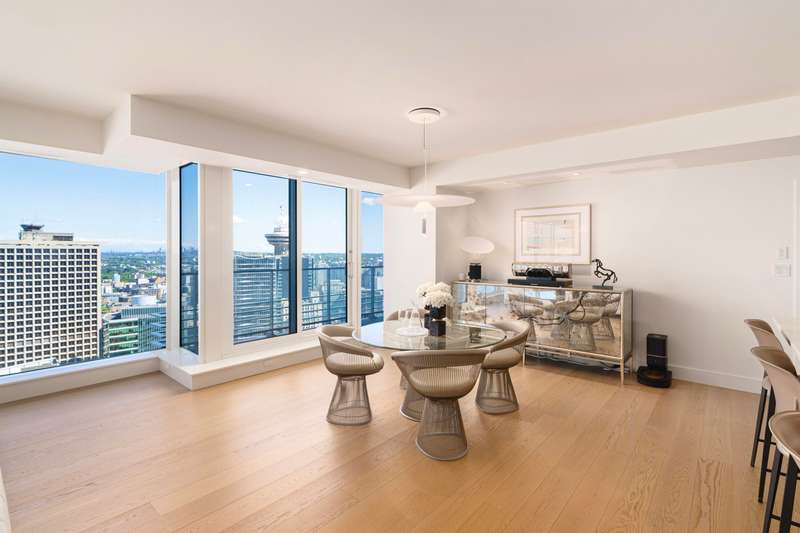 Rarely available, exquisite 02 home in the prestigious Fairmont Pacific Rim. Unobstructed, stunning views of ocean, harbour & northshore mountain from the 5th highest 02 plan. A remarkably expansive, light-filled living room that welcomes the morning sun and flows seamlessly into breathtaking panoramic views. Boasting luxury upgrades in 2020: solid hardwood floor, motorized blinds & blackout shades, marble countertop, the entire laundry room (Miele washer & dryer, countertop, cabinets, sink, faucet), Nest thermostats, all lighting fixtures, water filter, painting; dishwasher & hood fan upgraded in 2024. Boffi Italian kitchen, Miele & Sub-Zero appliances, spa ensuites. Meticulously maintained. Ready to move in. 2 parking. Open House: Sat, Sept 13: 2:15-4:15; Sun, Sept 14, 1:30-3:30.