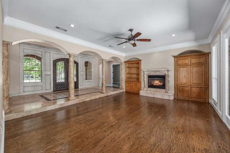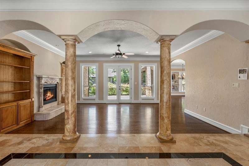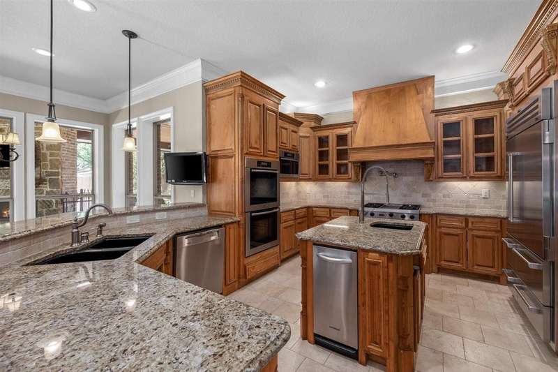 Step into a world where timeless European design meets modern comfort - every detail has been thoughtfully crafted for both beauty and functionality. This exceptional estate offers privacy, elegance, and a level of convenience rarely found in today's market. From the grand circular drive to the arched stone and brick architecture, the curb appeal is exceptional. Inside, 4,474 square feet of living space in the main house unfolds with custom cabinetry, 10 ceilings, rich moldings, hardwood floors, and 4 fireplaces that add warmth and sophistication throughout. An elevator effortlessly connects both levels, while the chefs kitchenfeaturing Viking, Miele, and Sub-Zero appliancesanchors the home with granite countertops and seamless flow into formal and informal living spaces. The upstairs media room with wet bar is perfect for game days or movie nights. The covered outdoor living area with fireplace, grill, sink, TV invites year-round entertaining. The 28 deep 3 car garage provides plenty of storage behind the stylish wood carriage doors. One of the homes most desirable and versatile features is a 688 sqft guest house, designed with the same level of luxury as the main residence. Guest house has 2 BRs, walk-in closets, a full kitchen, slate tiled bath, open living-dining area, its ideal for extended stay guests, multigenerational living, or adult children seeking independence with comfort. The property includes a large air conditioned underground storm shelter to be used as a refuge during severe weather or as secure storage for valuables and emergency supplies. Located just minutes from the Fort Worth Cultural District, top dining and retail, this home also offers convenient access to downtown Fort Worth and Fort Worths major employers ideal for those seeking the perfect balance of luxury and location. With a total living space of 5,162 sq ft, this home isnt just a place to live its a place to feel safe, inspired, and completely at home.
