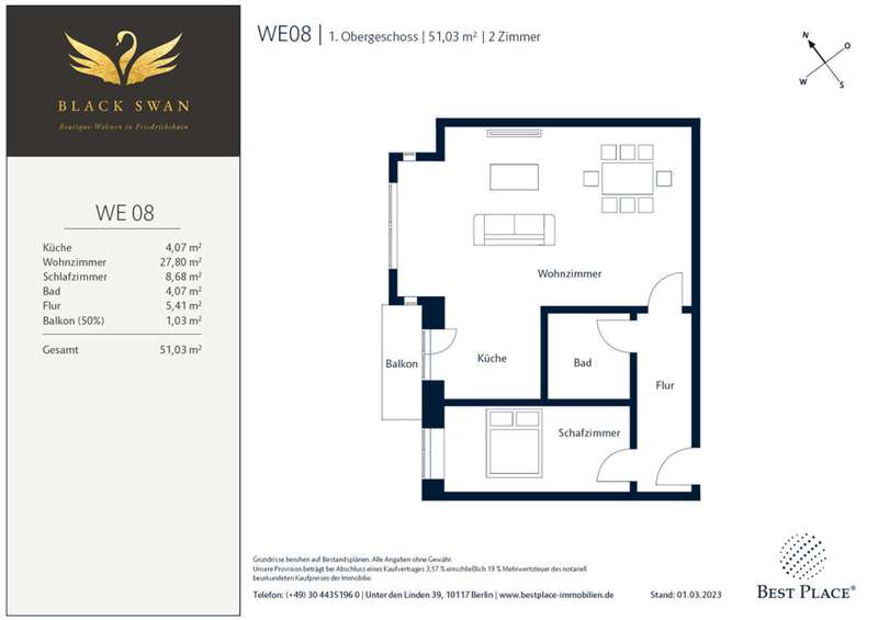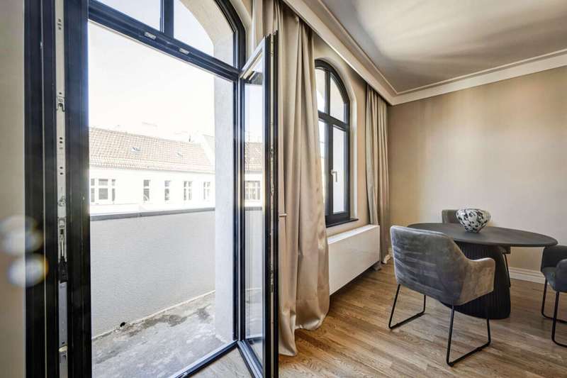 The BLACK SWAN project offers upscale living comfort in the funky scene neighborhood of Friedrichshain. Attractive Gründerzeit apartments, freshly renovated and soon ready for occupancy, shine in new splendor. Here Berlin is authentic, hip and young. The 2-room apartment on offer comprises approx. 51.03 m² and is located in the front building. This freshly renovated dream apartment offers you a unique opportunity to live in style. With a total of two rooms, a light-flooded living room with access to the balcony and a bedroom, this apartment is a real highlight. The high-quality equipped bathroom with shower, towel radiator and shapely fittings completes the overall picture. The entire common property has been fastidiously renovated.