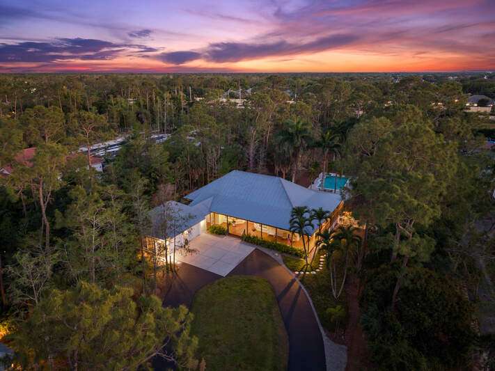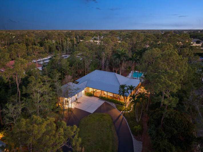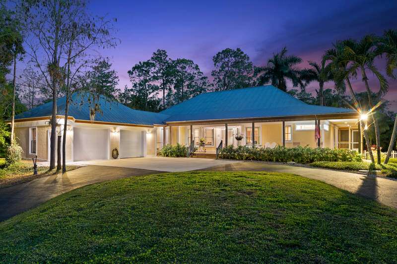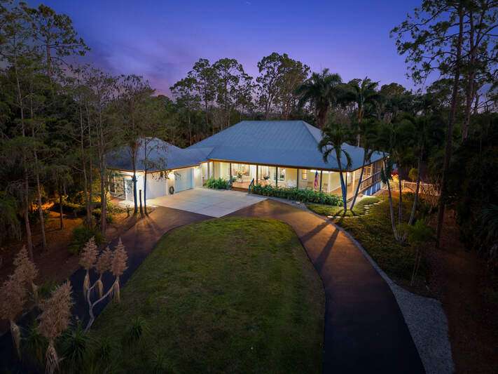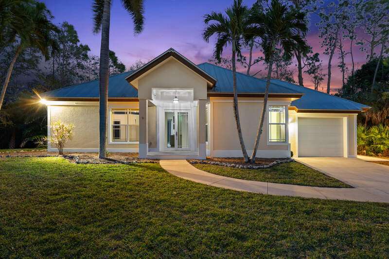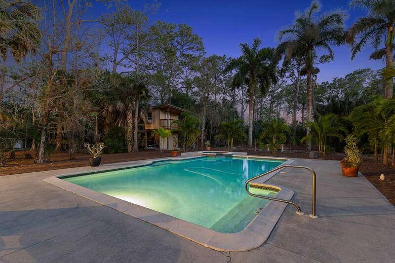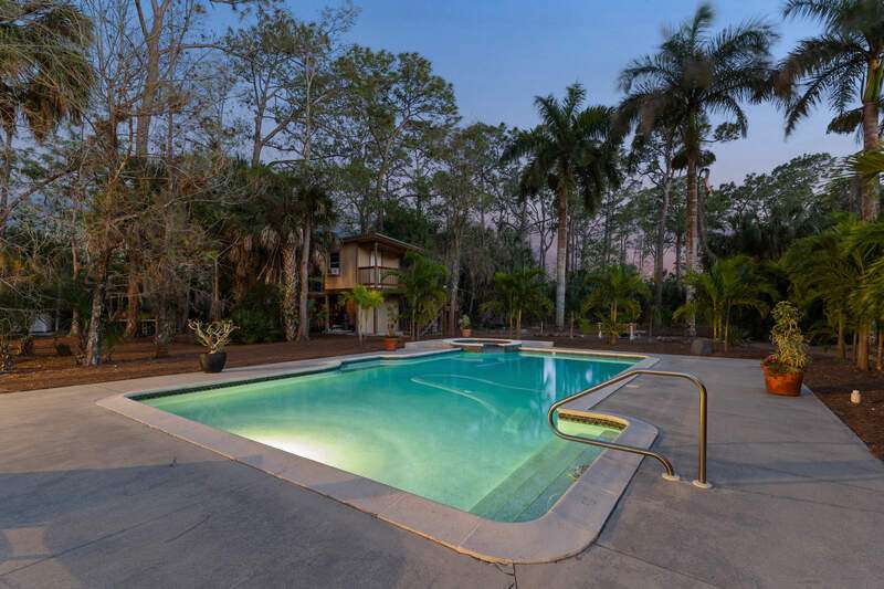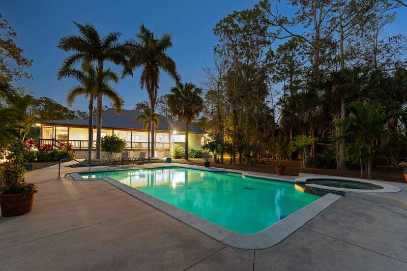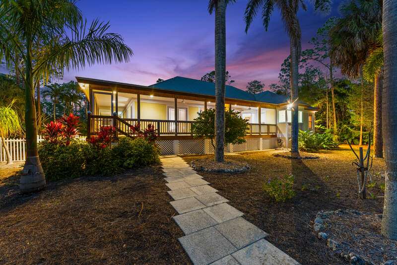 Discover a masterfully crafted Florida Vernacular estate in the heart of Oakes Estates, Naples, FL, where expert craftsmanship meets timeless design. This stunning property offers a main house, guest house, and expansive outdoor spaces, all designed with quality and longevity in mind. The main home features 3 bedrooms plus a den. Soaring 10-ft ceilings and 8-ft doors throughout create an open and airy feel, while prairie-style windows enhance its architectural charm. The interior showcases custom, locally crafted solid rock maple cabinetry and unstained white oak flooring, adding warmth and character to the home. The primary suite boasts a one-piece marble shower and a custom walk-in closet. Functionality meets convenience with a whole-house reverse osmosis system, a new exterior and interior paint job, and masonry construction. The home is designed with no interior load-bearing walls, allowing for a flexible floor plan for potential future updates. Extra-deep garages provide ample storage, and the property includes an air-conditioned shed. Additional features include a central vacuum system with a new motor, copper plumbing, a newer water heater, and a 5-ton AC. The guest house, built in 2006, offers 1,100 sq. ft. under air with 2 bedrooms and 1.5 baths. It features polished concrete floors, impact-resistant PGT windows, and high-end finishes, including granite countertops and luxury German cabinetry. Stainless steel appliances complete the modern kitchen, making it a perfect retreat for guests or extended family. Outdoor living is a dream with a 3/4 wraparound porch that exudes Florida Vernacular charm. The property includes a gunite pool with a new filter recently installed. A tranquil canal in the backyard provides a perfect spot for fishing, with large-mouth bass, peacock bass, snook, and gar frequently found in the waters. Situated in Zone X, flood insurance is not required. The home sits 50 inches above the crown of the road, ensuring an elevated and secure foundation. This estate seamlessly blends luxury, durability, and thoughtful design, creating a home that is as functional as it is beautiful. Enjoy the serene, private setting of Oakes Estates while being just minutes from Naples' world-class dining, shopping, and beaches. Schedule a private showing today and experience this one-of-a-kind property for yourself!