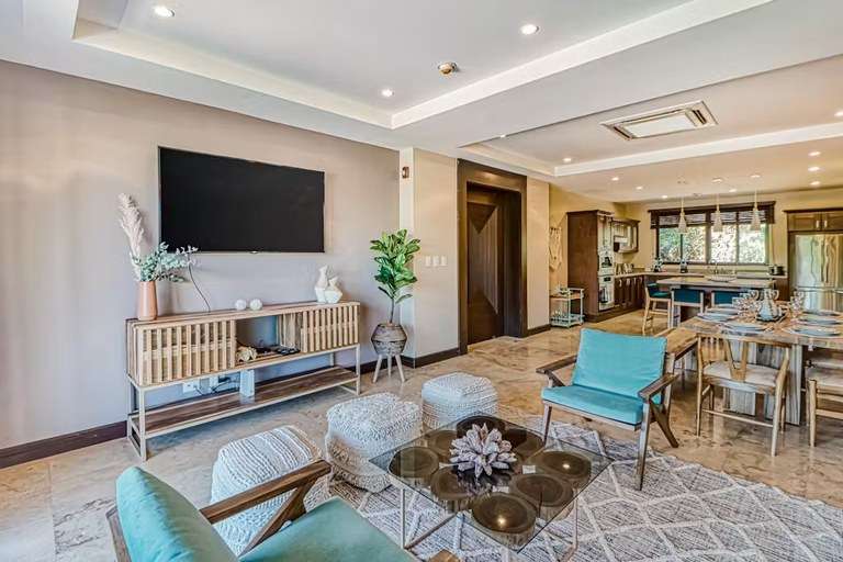 Azul Paraiso offers an exclusive and tranquil setting, with only 4-6 residences per building. The community boasts lush landscaping, multiple pools, a helipad, and 24-hour security for your peace of mind. The condo's elevated location ensures consistent breezes and commanding views while being just 5 minutes from Playa Ocotal, known for its calm waters, excellent snorkeling, and beachfront dining at Father Rooster.