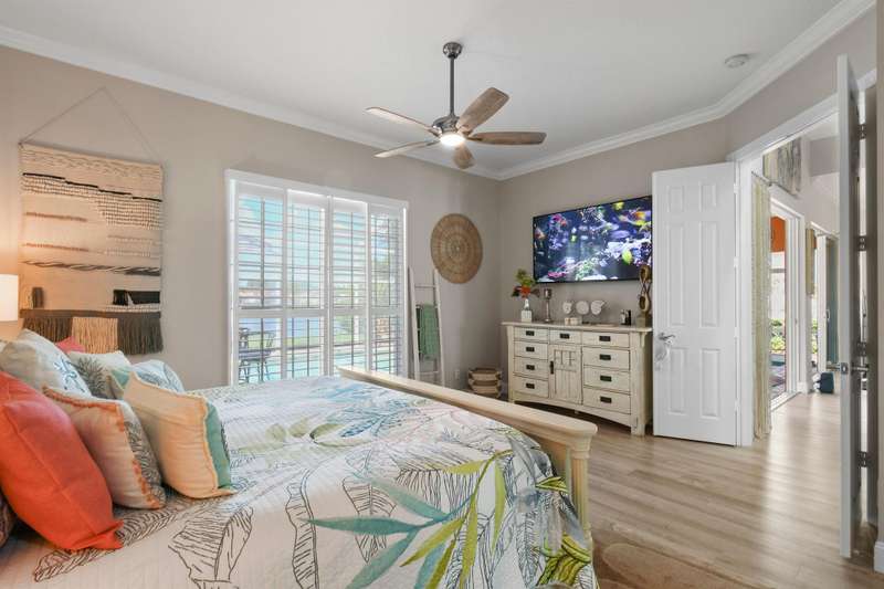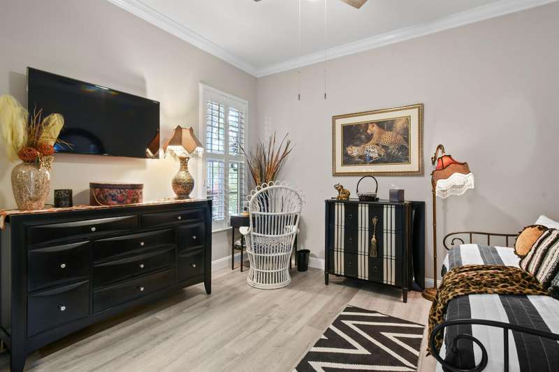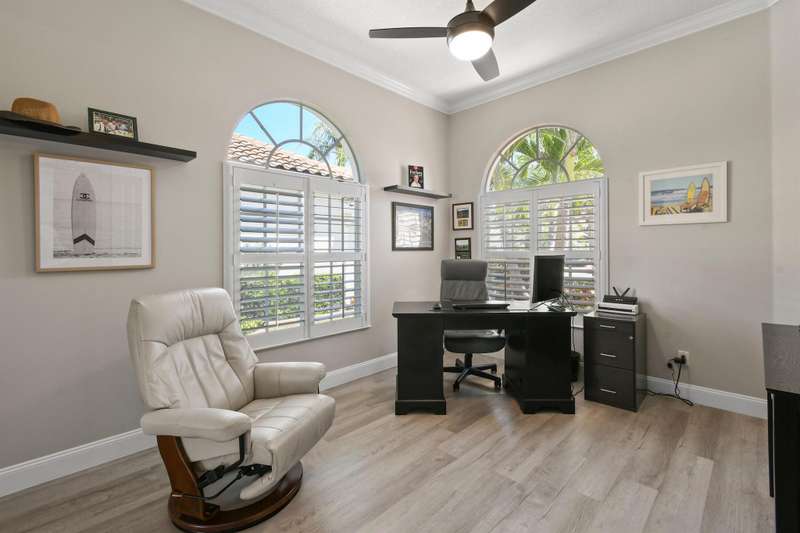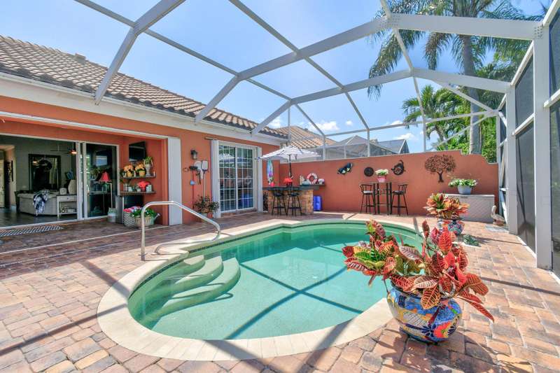 Tucked away on a quiet peaceful street, In a Gated Enclave. This beautifully updated home offers stunning lake views and the perfect blend of tranquility and community living. Featuring 3 spacious bedrooms plus a flex room, this residence is designed for both comfort and functionality--ideal for unwinding in style. Step inside to an open-concept floor plan highlighted by stylish modern LVP flooring throughout, creating a warm, inviting atmosphere perfect for relaxing or entertaining. This modern style updated home is a must see.The screened patio offers a peaceful setting to enjoy your morning coffee or unwind poolside.