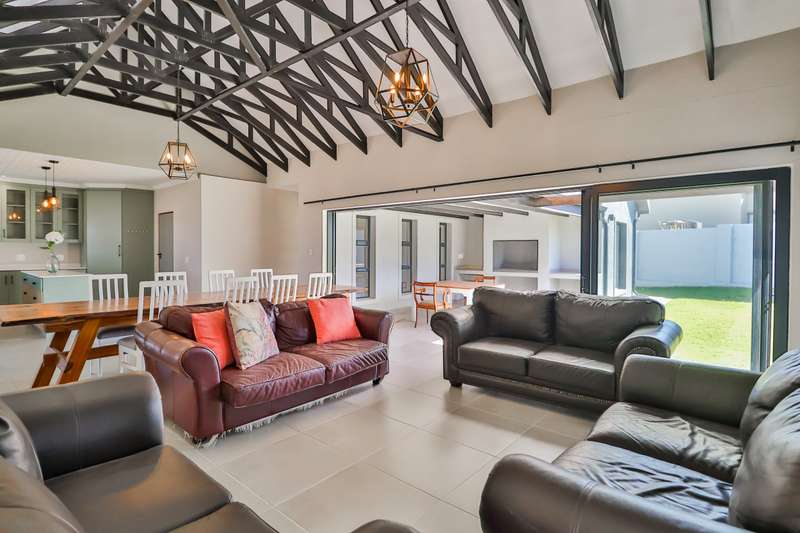 Nestled within the serene confines of Blue Mountain Village Estate lies a charming abode, tailor-made for the discerning buyer seeking comfort, convenience, and a slice of idyllic living. Whether you're a smaller family, downsizing, retiring, or simply seeking a lock-up-and-go lifestyle, this single-level dwelling beckons with its warmth and light-filled spaces. A Home Designed for Life's Pleasures: Step inside to discover a thoughtfully designed interior that exudes comfort and style. The spacious open-plan dining and family room provide a welcoming ambiance, seamlessly extending to a covered patio – the perfect setting for indulging in leisurely braai days with loved ones. Modern Elegance in Every Detail: The heart of the home, the kitchen, epitomizes modern sophistication. Boasting an upmarket design, it features a center island, gas hob, electric oven, pantry, and a separate scullery for added convenience. Tranquil Retreats: This residence comprises three sunny and generously sized bedrooms, offering ample space for relaxation. The main en suite bedroom beckons with its sliding door leading to a private patio, where one can savor early morning coffees while admiring the majestic mountain views. A full family bathroom serves the remaining two bedrooms. Extra Features to Enhance Your Lifestyle: Double Automated Garage Solar Panel Geyser Internet Connection 5000L Water Tank Instant Lawn Embrace Nature's Beauty: Beyond the confines of the home, Blue Mountain Village Estate unfolds a tapestry of natural splendour. Immerse yourself in the tranquility of dazzling sunsets, tranquil ponds teeming with life, and the graceful presence of roaming Springbok. Enjoy strolls along scenic walking paths while soaking in breath taking views of the Outeniqua Mountain range. Convenience and Security: With 24-hour security and a strategic location near Garden Route Mall, Eden Meander Shopping Centre, pristine beaches, and a mere 10-minute drive from the airport, this estate offers the perfect blend of security and convenience. Seize the Opportunity: Don't miss the chance to make this haven your own. Whether you're seeking a peaceful retreat or a place to call home, this is an opportunity not to be missed. Act today – call Annie for a viewing and step into a world of tranquility and comfort. Escape to Blue Mountain Village Estate – where serenity meets modern living.