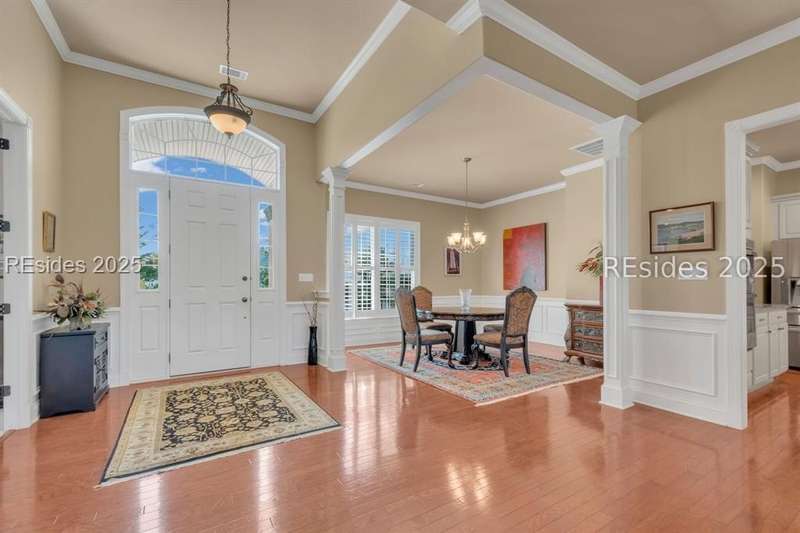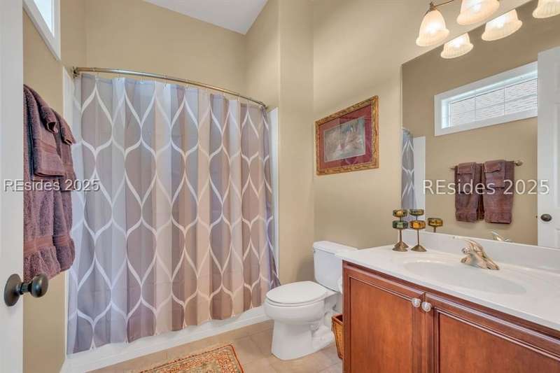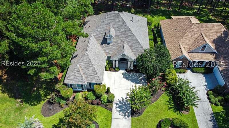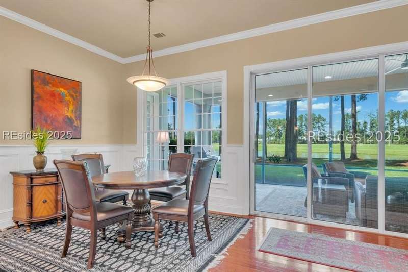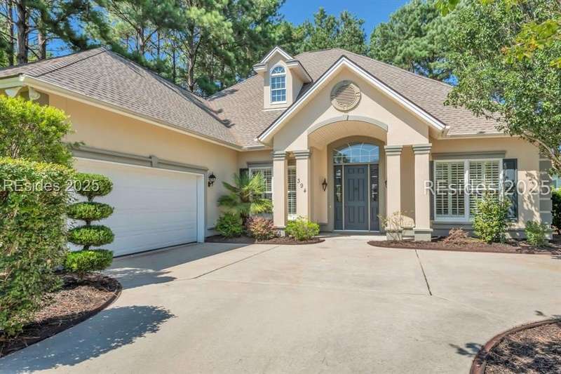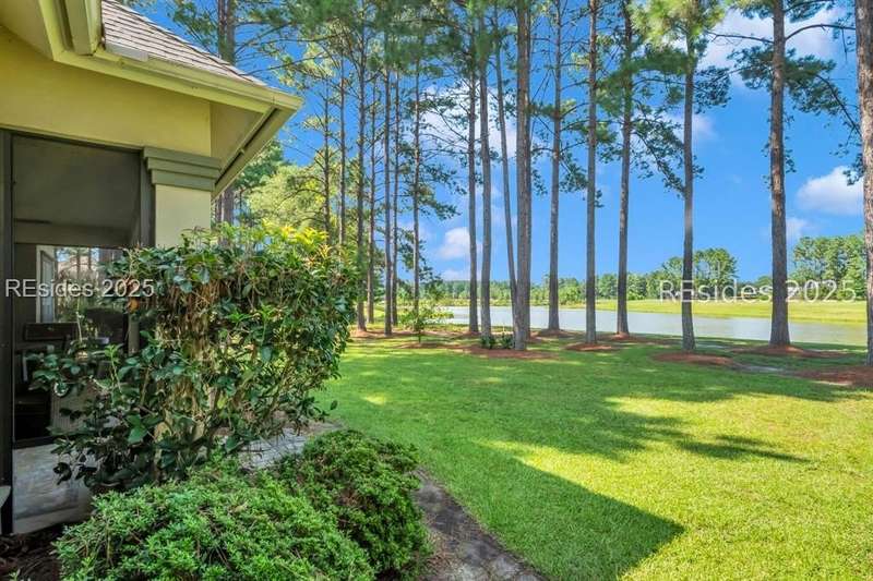 This Riverwalk floorplan shows like a model and is move in ready. 3 bedrooms/3.5 bathrooms loaded with extras: kitchen with granite counters, SS appliances, pull-outs, over/under counter lighting, tile backsplash, pendant lighting over bar seating, and built in oven/microwave. Primary suite has a large bedroom, bath with separate shower and extra large walk in closet. Great separation of bedrooms. Both guest rooms are ensuite. Wood flooring in all main living areas, carpet in bedrooms, plantation shutters throughout. Crown molding in all living areas plus primary bedroom. Oversized garage with utility sink allows for 2 cars + a golf cart. Pulldown stairs in garage with partially floored storage above. Premium lot with extra spacious back yard overlooking the lagoon. Riverton Pointe is a staff gated new-home community that offers an array of amenities including a Jack Nicklaus Design golf course, driving range, pro shop, restaurant, swimming pool, tennis, fitness center, future clubhouse, pickle ball, bocce ball, social events and much more!. Hampton Pointe within 20 minutes of Savannah, GA, Beaufort SC and the beaches of Hilton Head Island.