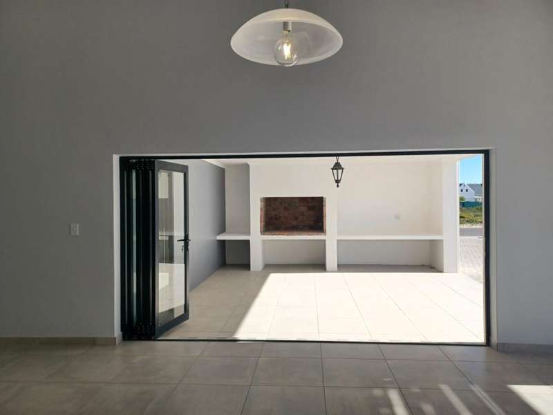 Brand New Homes in Dwarskerbos on the West Coast. The property (330sqm in total), within walking distance to the beach in the popular Kerbosstrand, consists of 2 houses on a large erf. The main house of 235sqm: -2 large bedrooms with en-suit -2 bathrooms -Large lounge ?Çô dining ?Çô kitchen with scullery and pantry. -Large enclosed entertainment ?Çô braai area -Extra-large double garage The 2nd house of 95sqm: -2 bedrooms -1 bathroom -Open-plan lounge - dining ?Çô kitchen -Outside veranda with built-in braai -Large single garage The design is exquisite and the trimmings stylish. The yard area is mostly paved with enough patches for gardening. This property is ideal for a large family, or for 2 families. Or a rental. A must-view property with an elegant life-style! Please contact me for a private viewing.