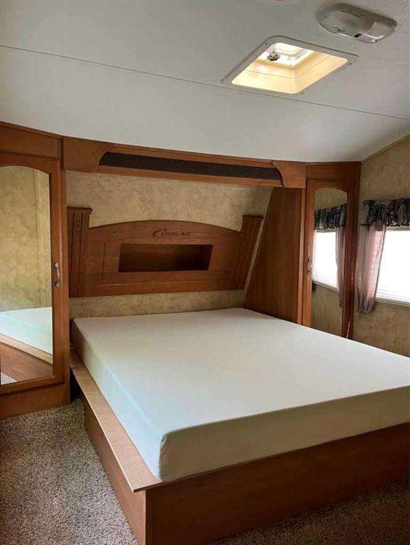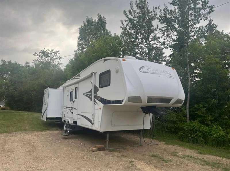 This is a rare offering and possibly the largest lot in all of Riverside! Perfectly positioned on a private corner lot, this spacious retreat offers unbeatable access to the Clubhouse and park amenities, making it ideal for relaxing weekends or seasonal living. The lot includes a 20' x 10' covered addition with an attached 6' x 10' deck, a storage shed, wood shed, and brand-new firepit—everything you need to kick off summer with comfort and style. The Updated 2009 Keystone Cougar is great for families as it sleeps 8 and boasts 1.5 baths! This sunny and beautiful lot offers mature trees and great privacy. Riverside is a gated, seasonal community set along the Red Deer River, known for its peaceful setting and incredible access to nature. You’ll enjoy municipal water and sewer, power hookups, and the safety and convenience of year-round caretakers. The community features a clubhouse with seasonal laundry and showers, playground, horseshoe pits, and a shared firepit area, plus a year-round washroom and laundromat facility. Located within the town of Sundre, you're just minutes from restaurants, pubs, grocery stores, gas stations, ice cream shops, and three golf courses. With crown land, lakes, bike trails, and endless outdoor adventures nearby, this is a perfect home base for every season. Whether you're a weekend camper or a year-round adventurer, this is your chance to own a one-of-a-kind lot in a sought-after community.