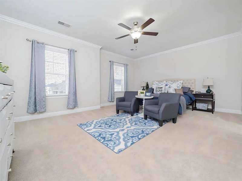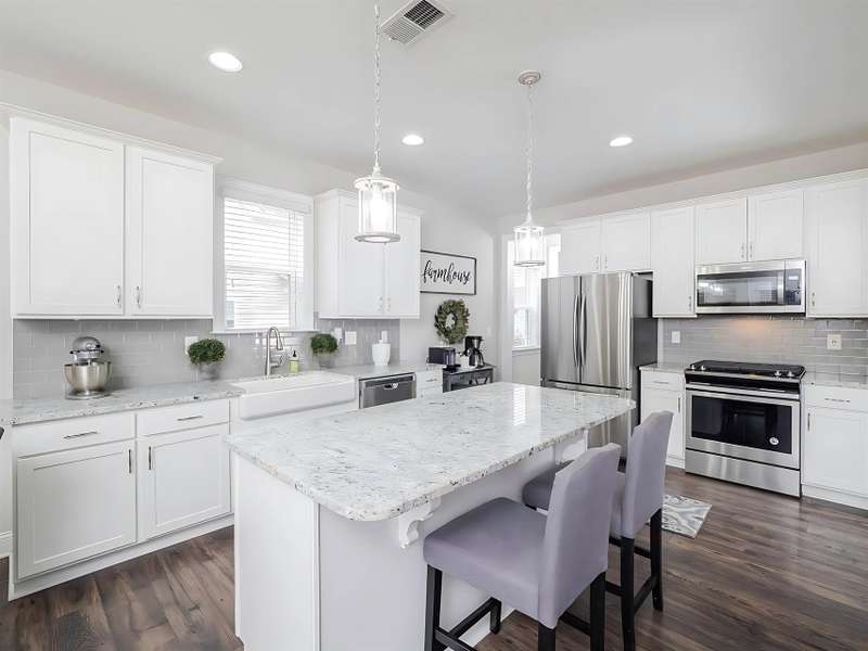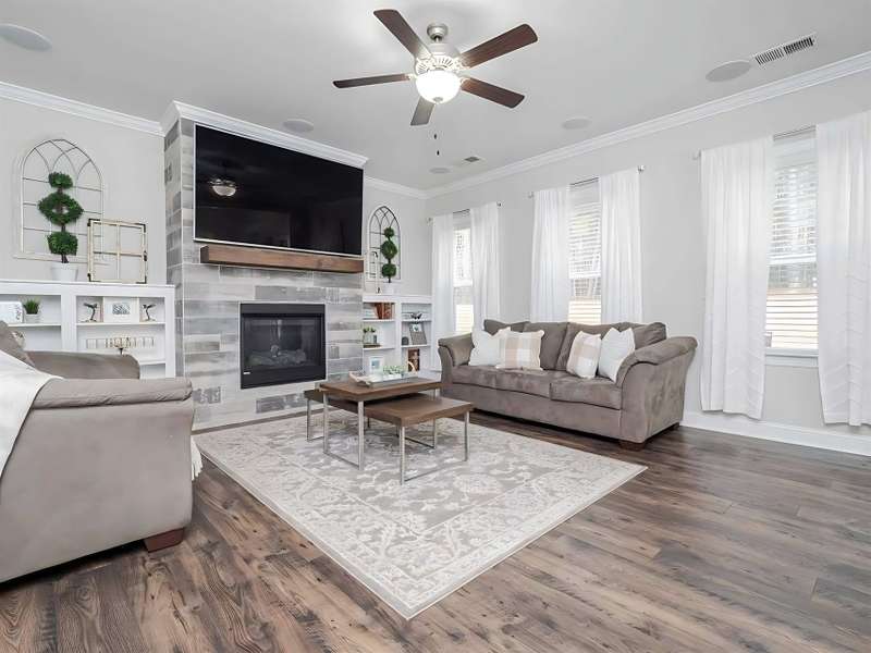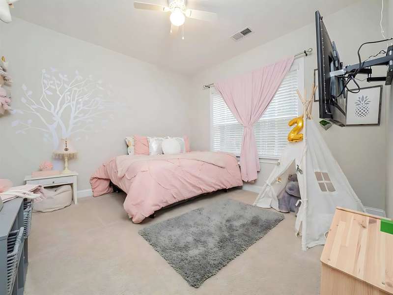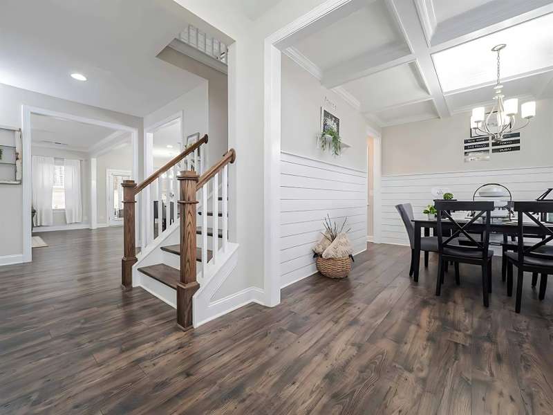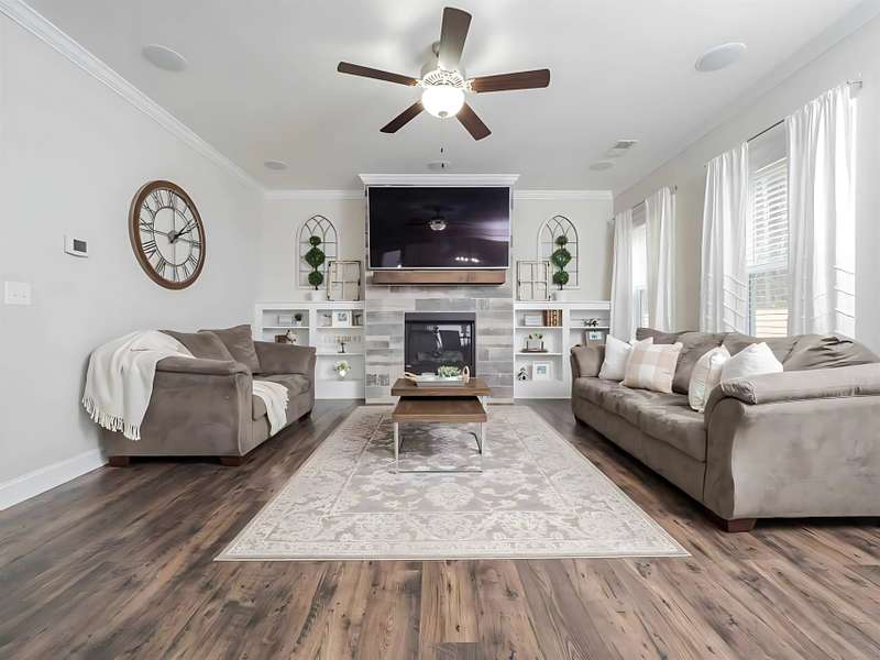 This immaculate home offers 5 generous bedrooms and a flexible second-floor space ideal for various purposes. It's filled with high-end upgrades that create a designer-inspired atmosphere. On the first floor, you'll find a comfortable bedroom and a full bathroom. The dining room exudes charm with its coffered ceiling and shiplap detailing, while the kitchen features a stylish farmhouse sink. The spacious family room is perfect for gatherings, complete with built-in bookshelves and a Polk Audio 7.1 surround sound system for an immersive entertainment experience.''
