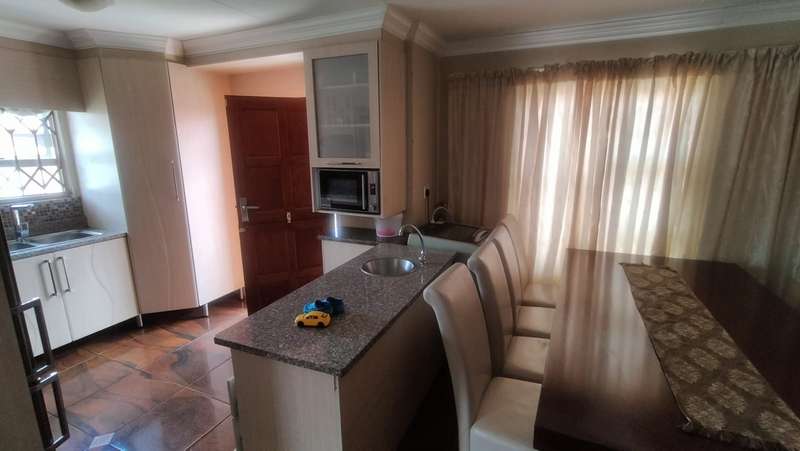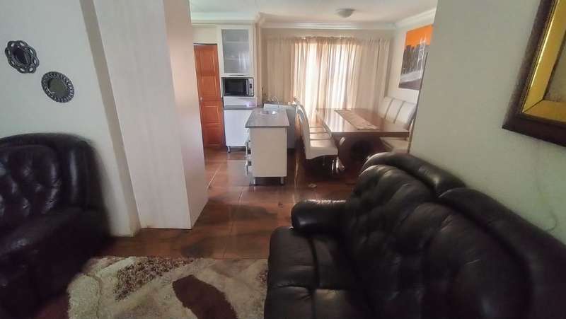 This well-maintained 3-bedroom, 2-bathroom home offers comfort and security on a 250 sqm stand. The main bedroom features an ensuite bathroom and built-in cupboards, ensuring privacy and convenience. The home boasts a spacious lounge and dining area, while the fitted kitchen is equipped with granite countertops, a stove with a hob, and an undercounter oven—perfect for home-cooked meals. Outside, you'll find a big carport for 2 vehicles, a walled yard for added privacy, and burglar-proofing for extra security. The partially paved yard makes maintenance easy while still allowing space for a manageable garden. Located close to Soshanguve Crossing, this home offers easy access to shopping, schools, and main routes. Don't miss out—contact us today to schedule a viewing!