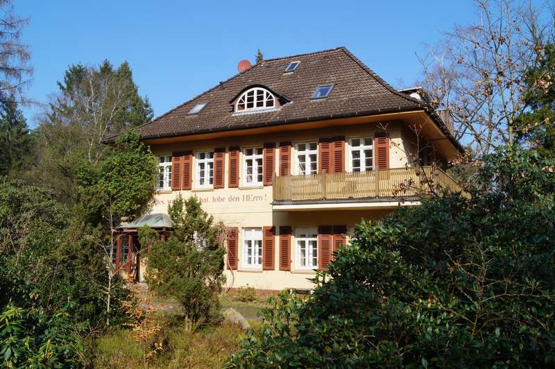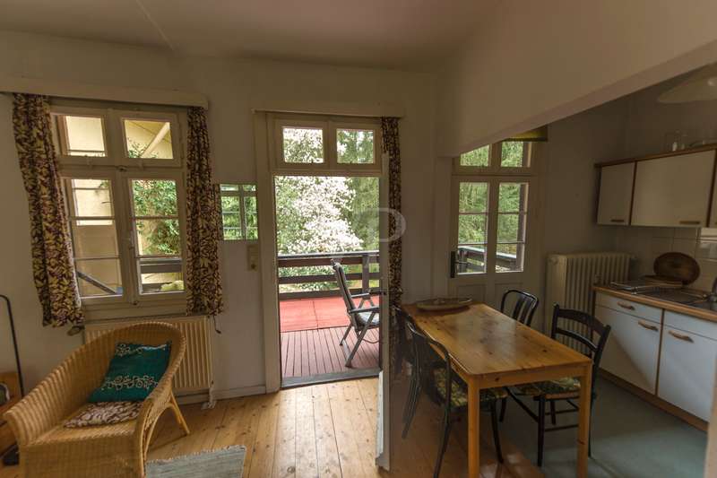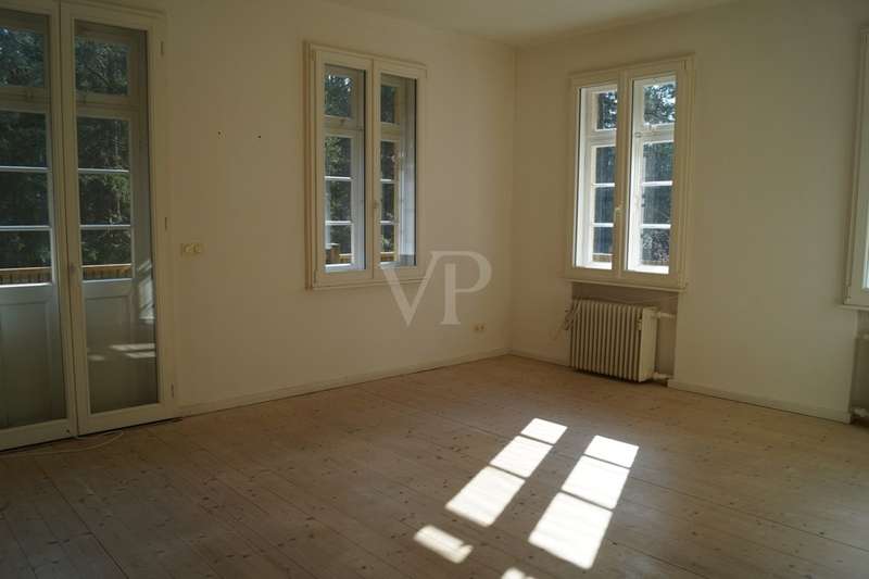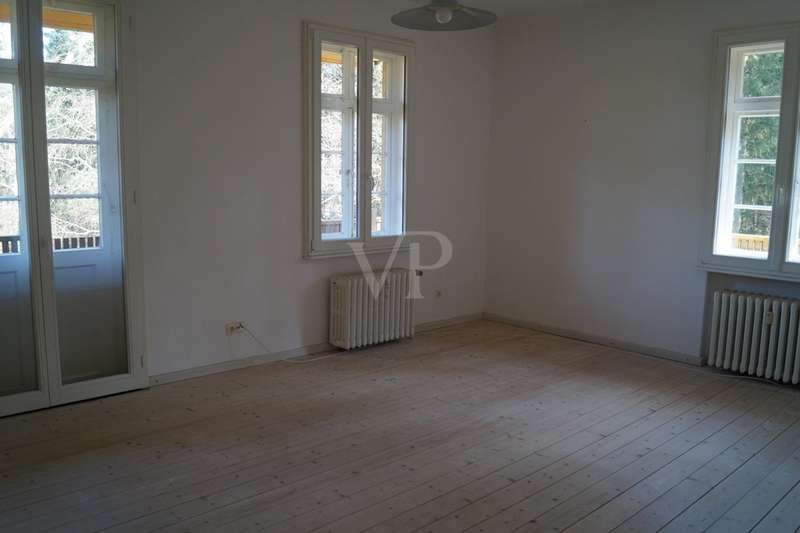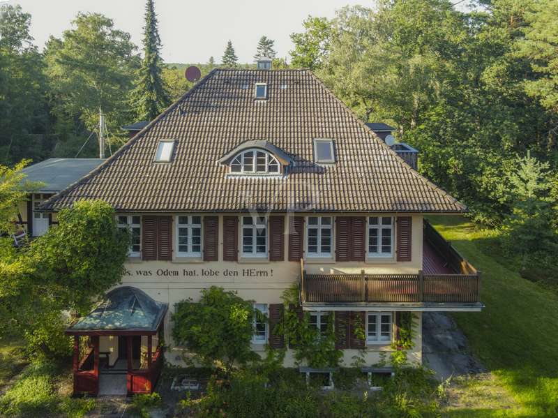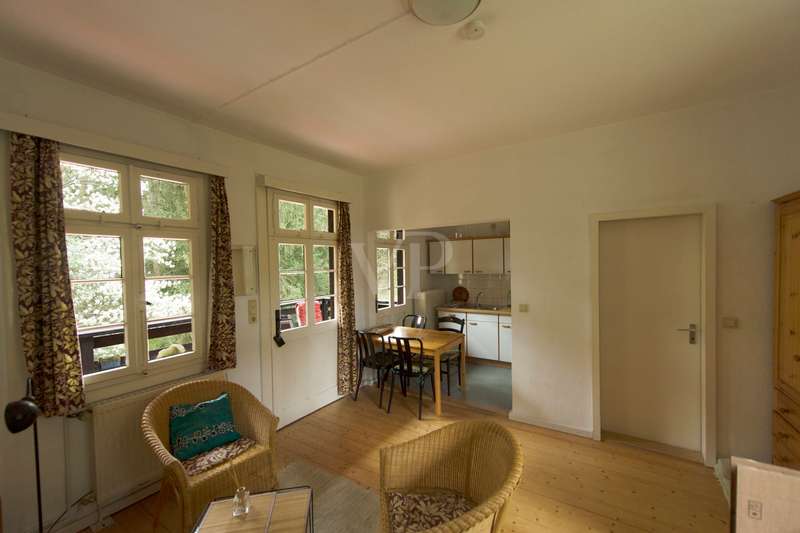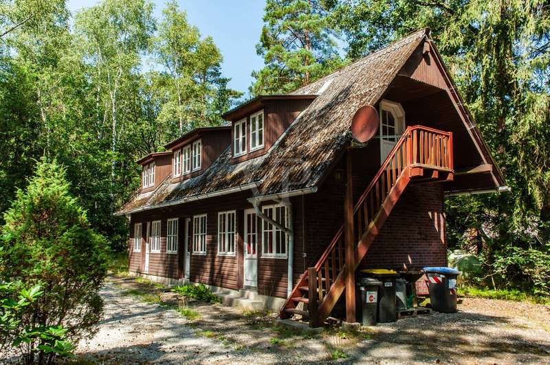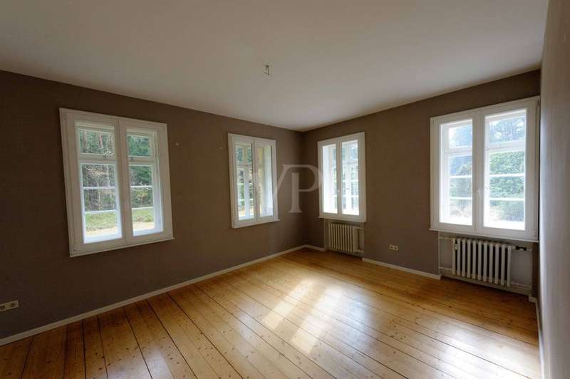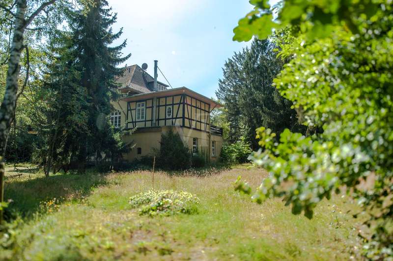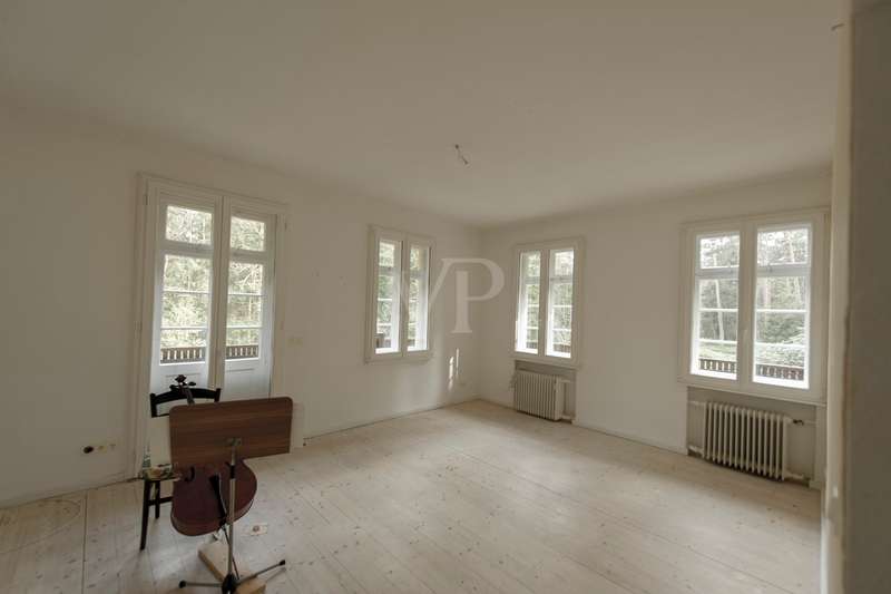 The Art Nouveau hunting villa dating from 1929 is situated on a 2.1 hectare plot with a sparse stock of old trees. The main house was converted by an architect in 1991 into three separate apartments, an apartment and a fireplace room. The apartments were extensively refurbished and modernized in keeping with their style. In 2012, an energy-efficient refurbishment was also carried out with wooden box-type windows, insulation of the air gap in the exterior masonry and insulation of the upper floor ceiling. The living space of the main house is approx. 340 square meters and is divided into a total of 13 rooms, including 8 bedrooms and 5 bathrooms. Two large balconies and a terrace invite you to relax outdoors. Three individual garages, a carport and space for 6 additional parking spaces are available for vehicles. An additional utility room, a workshop and a woodshed provide ample storage space for garden tools and other equipment. The heating system is an oil condensing boiler from 2008, supplemented by a hot water tank from 2023. The guest house on the property dates from 1957 and has 6 rooms with approx. 100 square meters and simple furnishings. It is heated by gas heating with a liquid gas tank. In contrast to the main house, this was built as a timber frame construction and has a pitched roof. The location of the property is particularly attractive, as the house is situated about 200 meters from the road in a forest clearing and the 2.1 hectare plot is not visible from the road. The property therefore offers an idyllic oasis of calm and is ideal for nature lovers and those seeking peace and quiet. Originally built by a Bremen banker and not listed as a historical monument, this Art Nouveau hunting villa presents itself as a unique and historic country house with generous interior design, modern comforts and extensive grounds in a natural setting. In addition to the property offered here, there is the possibility of acquiring an approx. 2.39 ha woodland plot in the direction of the district road.