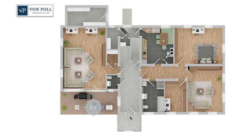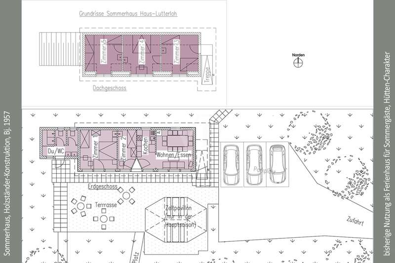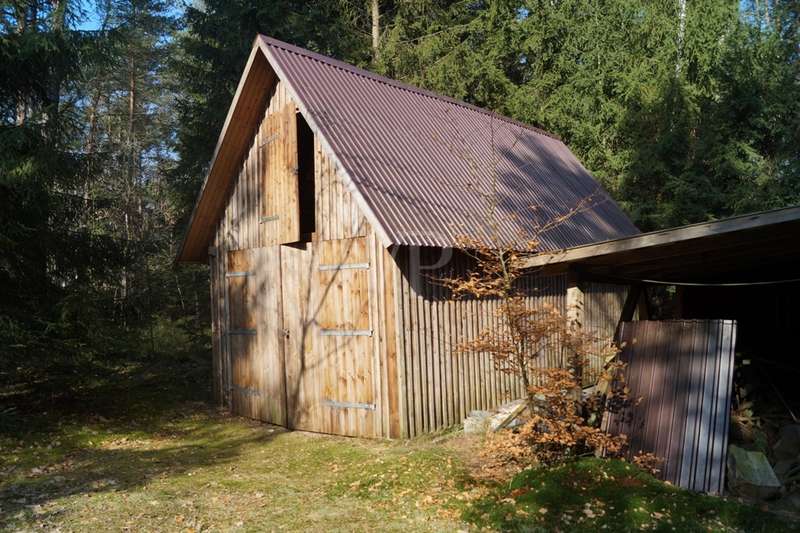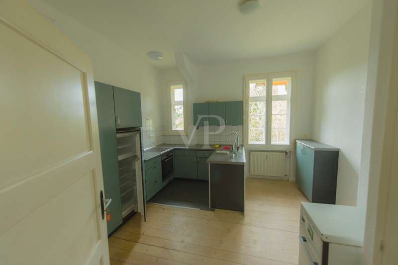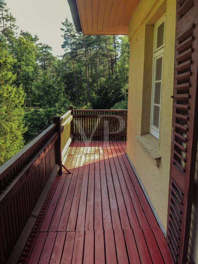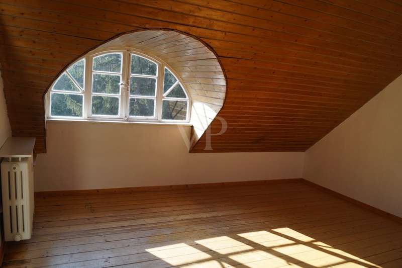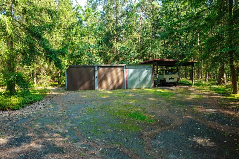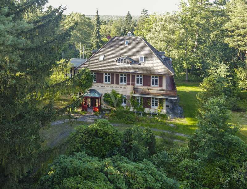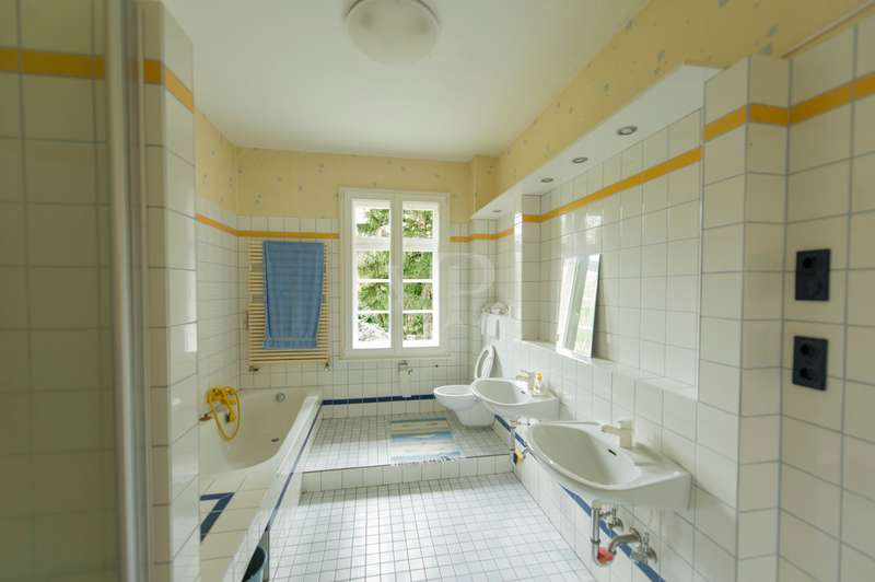 The Art Nouveau hunting villa dating from 1929 is situated on a 2.1 hectare plot with a sparse stock of old trees. The main house was converted by an architect in 1991 into three separate apartments, an apartment and a fireplace room. The apartments were extensively refurbished and modernized in keeping with their style. In 2012, an energy-efficient refurbishment was also carried out with wooden box-type windows, insulation of the air gap in the exterior masonry and insulation of the upper floor ceiling. The living space of the main house is approx. 340 square meters and is divided into a total of 13 rooms, including 8 bedrooms and 5 bathrooms. Two large balconies and a terrace invite you to relax outdoors. Three individual garages, a carport and space for 6 additional parking spaces are available for vehicles. An additional utility room, a workshop and a woodshed provide ample storage space for garden tools and other equipment. The heating system is an oil condensing boiler from 2008, supplemented by a hot water tank from 2023. The guest house on the property dates from 1957 and has 6 rooms with approx. 100 square meters and simple furnishings. It is heated by gas heating with a liquid gas tank. In contrast to the main house, this was built as a timber frame construction and has a pitched roof. The location of the property is particularly attractive, as the house is situated about 200 meters from the road in a forest clearing and the 2.1 hectare plot is not visible from the road. The property therefore offers an idyllic oasis of calm and is ideal for nature lovers and those seeking peace and quiet. Originally built by a Bremen banker and not listed as a historical monument, this Art Nouveau hunting villa presents itself as a unique and historic country house with generous interior design, modern comforts and extensive grounds in a natural setting. In addition to the property offered here, there is the possibility of acquiring an approx. 2.39 ha woodland plot in the direction of the district road.