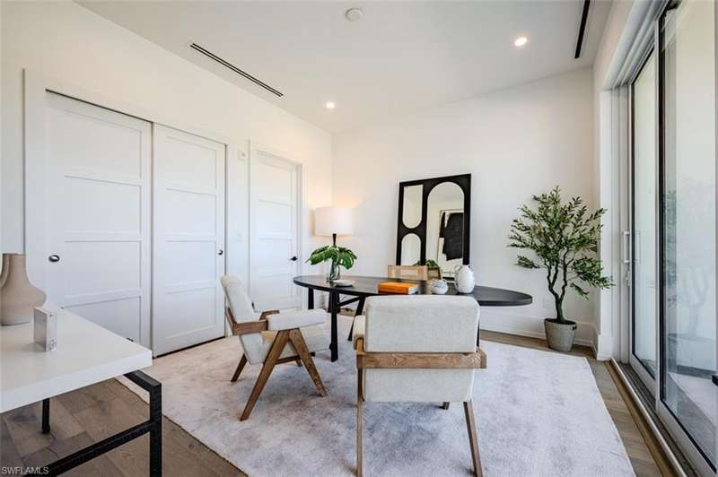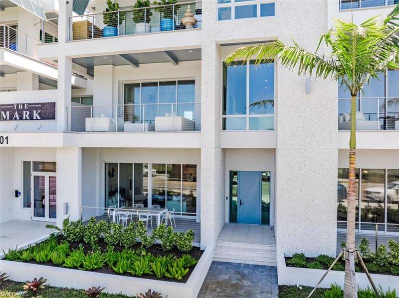 Welcome to The Mark on 8th, a premier luxury condominium development in downtown Naples. Ideally situated in the heart of Olde Naples, this residence is just steps away from the exceptional boutiques, cafes, restaurants, and pristine sandy beaches along the Gulf of Mexico. Residence 103 is a brand new impressive two-story townhome offering 3,449 square feet of luxurious living space, featuring 4 bedrooms, 4 full baths and 2 half baths, along with a second-floor loft lounge. Expansive 9-foot sliding doors lead to multiple private outdoor areas, seamlessly blending indoor and outdoor living. The gourmet kitchen, designed with both style and functionality in mind, overlooks the living and dining areas and is equipped with top-of-the-line appliances and exquisite finishes. The grand primary suite includes a private balcony, dual walk-in closets, and a serene spa-like bath for ultimate comfort. Additional highlights of this residence include two private storage units, a private elevator, an