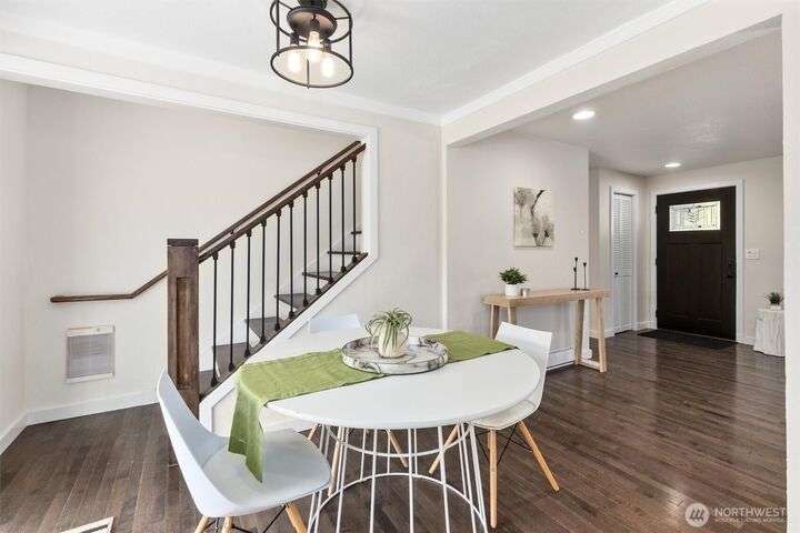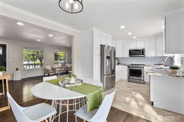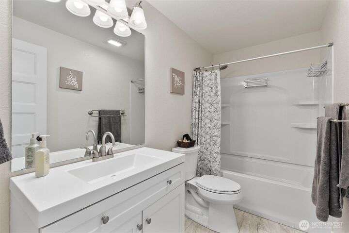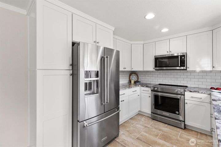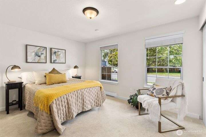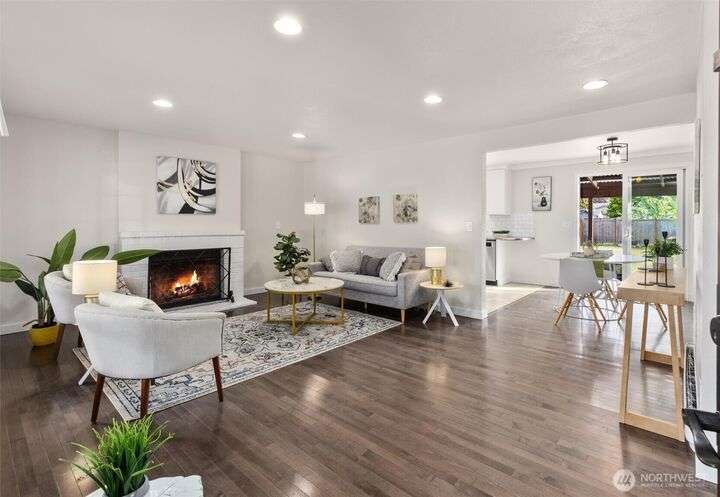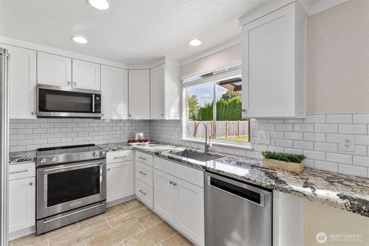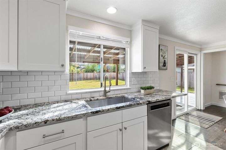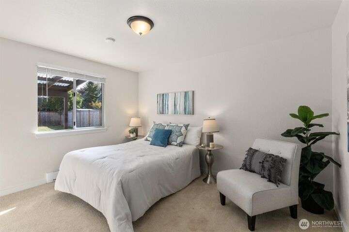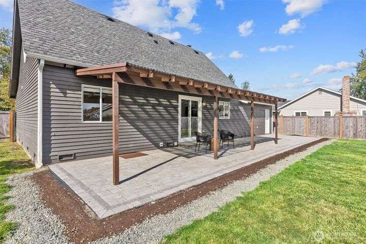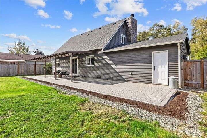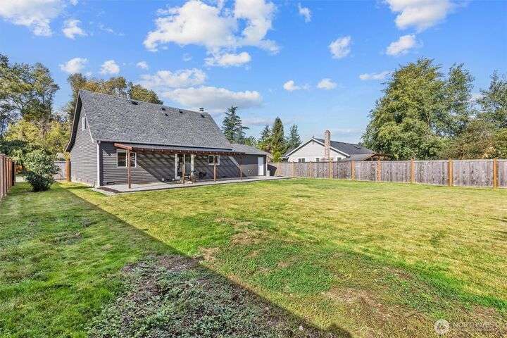 Cape Cod–inspired charmer with a huge, level backyard built for PNW living. A covered front porch welcomes you into light-filled spaces with updated flooring. The living room features large windows & cozy fireplace, opening to the dining area and upgraded kitchen with granite counters and stainless appliances. 2 bedrooms on the main + 2 bedrooms up plus a loft offer flexible use (guest room, office, play, fitness). The private owner’s suite includes an updated bath. Step outside to an amazing covered patio for year-round BBQs & gatherings, overlooking the fully fenced yard—great for pets and play. 2-car garage with extra storage. Quick I-5 & Hwy 9 access for easy commuting. Minutes to Jennings Memorial Park & trails & Ebey Waterfront Park.