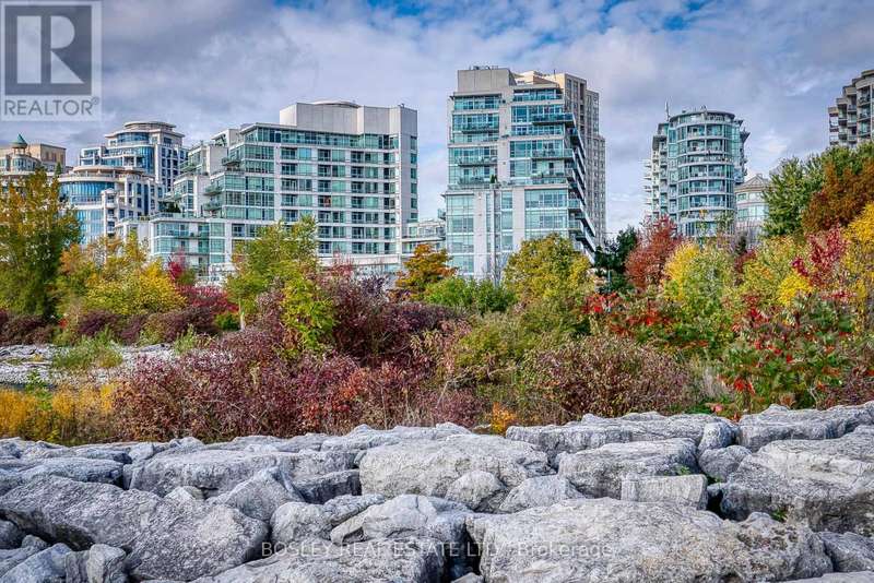 Welcome to Grenadier Landing, where comfort meets convenience in this spacious and beautifully maintained 1+1 bedroom, 2-bathroom condo. This thoughtfully designed unit offers over 700 square feet of functional living space, ideal for professionals, downsizers, or anyone seeking a modern lifestyle by the waterfront. The generous primary bedroom features a large closet and a private 4-piece ensuite, offering a perfect retreat at the end of the day. The versatile den is ideal as a home office, guest room, or second bedroom, providing the flexibility to suit your lifestyle. A second full 3-piece bathroom ensures convenience for guests or family members. Enjoy open-concept living with a combined living and dining area that seamlessly flows onto your east-facing balcony. The modern kitchen is equipped with stainless steel appliances, a breakfast bar, and ample cabinetry, making both cooking and entertaining a pleasure. This unit includes one underground parking spot and a secure storage locker for your convenience. Grenadier Landing is a well-managed building known for its superb location and full-service amenities. Monthly condo fees are all-inclusive of utilities (heat, hydro, and water), leaving only cable and internet as your additional expense. Step outside and you're just moments away from the scenic waterfront, Martin Goodman Trail, Humber Bay Shores Park, cafes, restaurants, and TTC access-offering the perfect balance between nature and city living. Amenities at Grenadier Landing include a 24-hour concierge, exercise room, media and party rooms, billiards and table tennis, a landscaped courtyard with a BBQ, a library, hobby room, and guest suites. There is also visitor parking and a 7th-floor outdoor terrace with views of the lake.