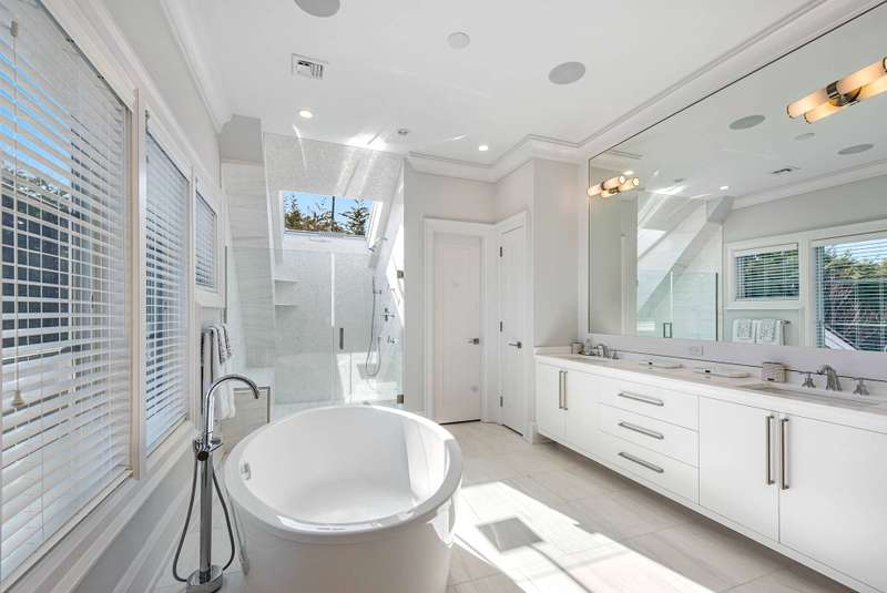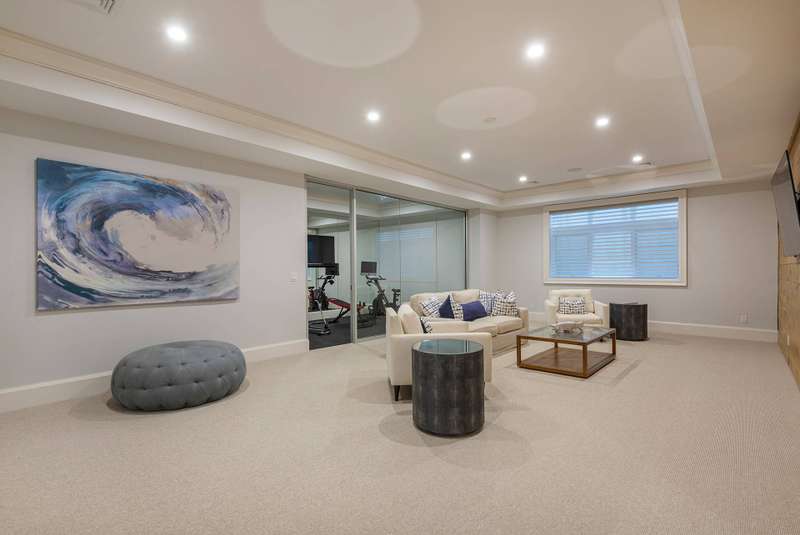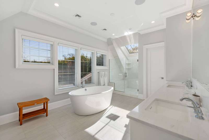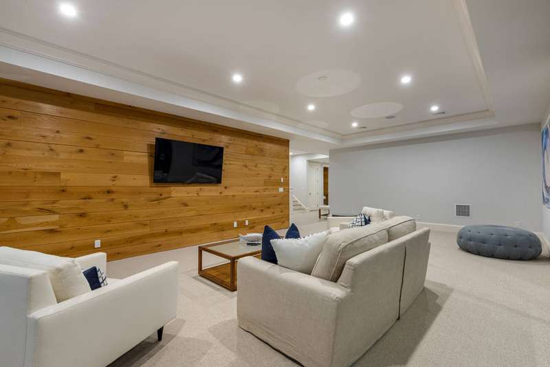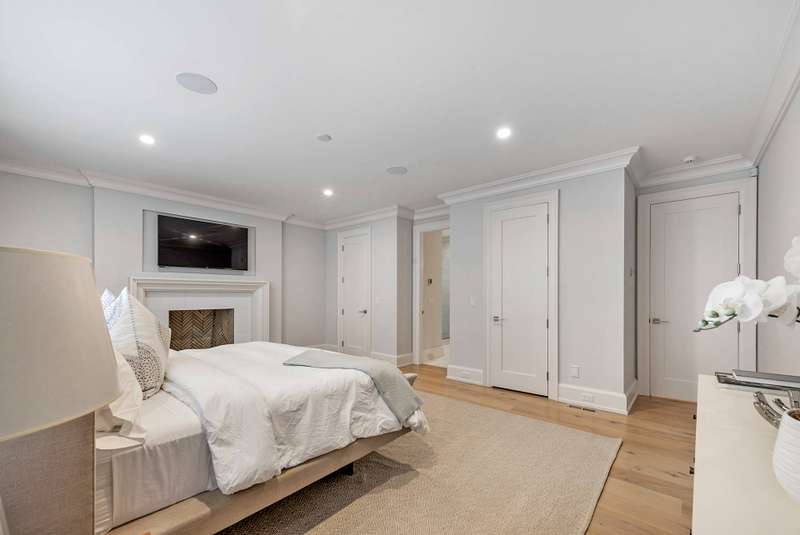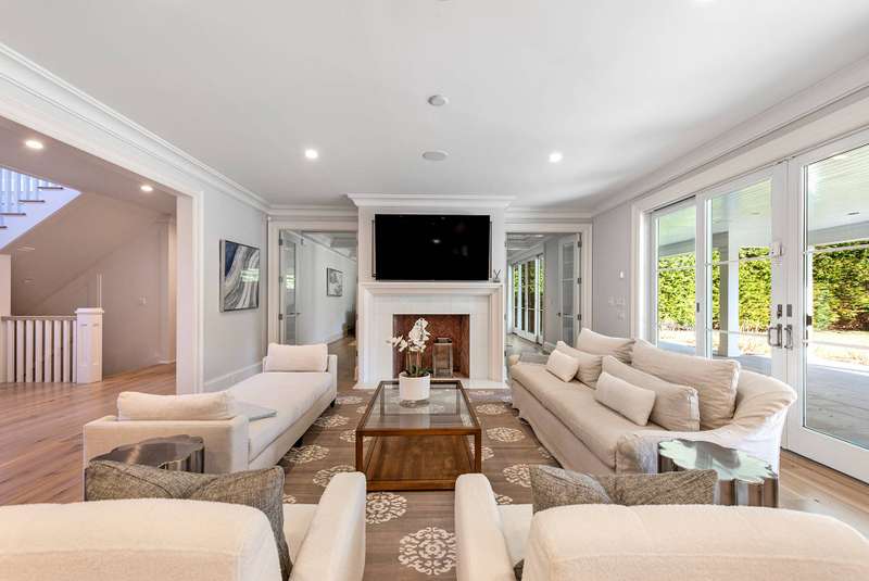Rental Registration #: 23-1,318. Be the lucky person to enjoy this beautiful custom home that has just been completed and professionally decorated. The first floor boasts a wall of glass overlooking the garden, pool and pool house. A veranda that has a drop down movie screen (for private viewing ) is just outside the first floor den. The second floor has a master suite with see through fireplace between the bedroom and the large master den/study. In addition, there are three ensuite large bedrooms perfectly appointed. The finished basement has a media room, another large ensuite bedroom, and a large entertainment room. Listing ID: 736679
