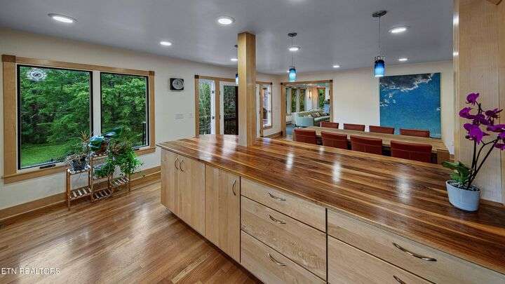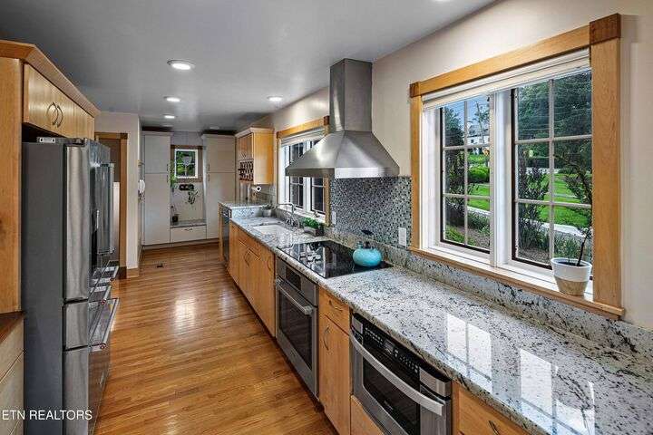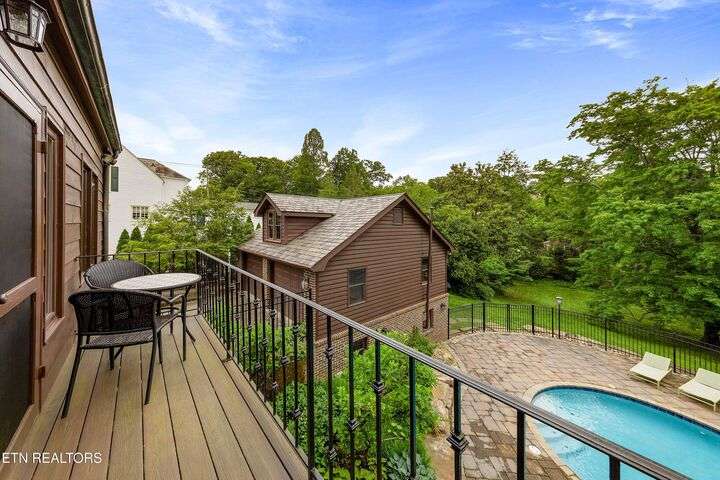 Live in one of America's Top 40 most envied neighborhoods, nestled in the heart of Knoxville - Sequoyah Hills - where historic charm meets modern comfort. 5 bedrooms, 5.5 baths. Multigenerational living and income producing possibilities! Thoughtfully renovated in 2016—including updated plumbing and wiring—this home features a long list of high-end upgrades. From the fully renovated kitchen and baths to custom built-ins and stylish finishes throughout, every detail has been carefully designed. The main-level primary suite is a true retreat, complete with two large closets and a spacious ensuite featuring a double vanity and walk-in shower. Upstairs, you'll find three more bedrooms—including one with its own full ensuite—and another that's perfect for a home office or creative space and one of two laundry areas. The lower level offers incredible flexibility with its own kitchenette, den, bedroom, two full baths, and laundry area. Whether you're hosting guests, need space for extended family, or want income potential, this setup is ready to go. Outside enjoy the private backyard—ideal for entertaining. The large deck overlooks a generous lot with a beautiful saltwater gunite pool, perfect for relaxing or gathering with friends and family. A detached two-car garage includes a full walkout basement, ideal for a workshop, studio, or future guest suite. Located in one of Knoxville's most beloved neighborhoods, this home is ready to welcome you. Come take a look—you'll fall in love!