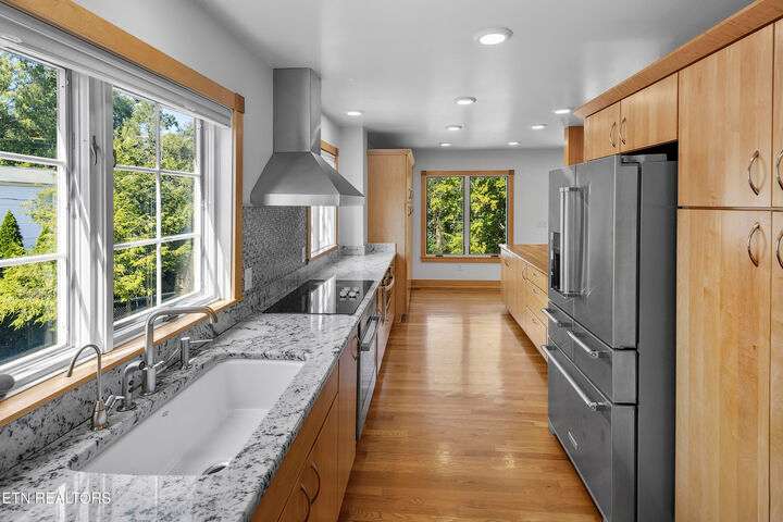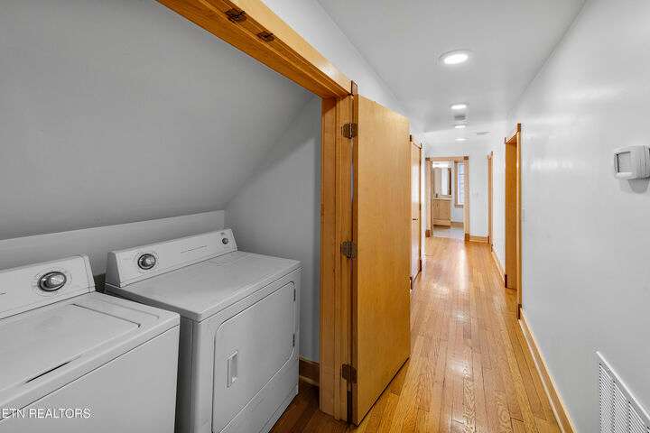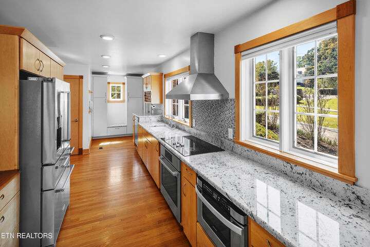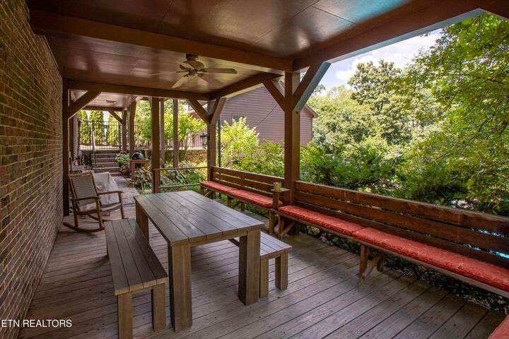 Live in one of America's Top 40 most envied neighborhoods, nestled in the heart of Knoxville - Sequoyah Hills - and no HOA. A welcoming home with great flow—perfect for gatherings and entertaining, where historic charm meets modern comfort. 5 bedrooms, 5.5 baths. Multigenerational living and income producing possibilities! Thoughtfully renovated in 2016—to include plumbing and wiring—this home features a long list of high-end upgrades. From the fully renovated kitchen and baths to custom built-ins and stylish finishes throughout, every detail has been carefully designed. The main-level primary suite is a true retreat, complete with two large closets and a spacious ensuite featuring a double vanity and walk-in shower. Upstairs, you'll find three more bedrooms—including one with its own full ensuite—and another that's perfect for a home office or creative space and one of two laundry areas. The lower level offers incredible flexibility with its own kitchenette, den, bedroom, two full baths, and laundry area. Whether you're hosting guests, need space for extended family, or want income potential, this setup is ready to go. Outside enjoy the private backyard—ideal for entertaining. The large deck overlooks a generous lot with a heated saltwater gunite pool, perfect for relaxing or gathering with friends and family. A detached two-car garage includes a full walkout basement, ideal for a workshop, studio, or future guest suite. This home is ready to welcome you. Come take a look—you'll fall in love! Learn more about Sequoyah Hills at https://sequoyahhills.org.