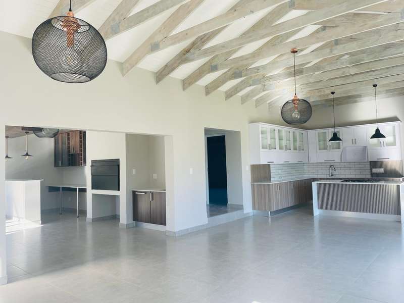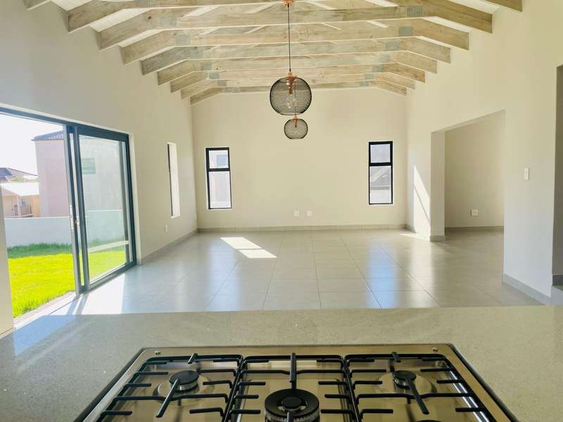 Modern Elegance in the Heart of Langebaan, Country Club - Newly built 4-bedroom home Discover this immaculate, newly built 4-bedroom home perfectly positioned in the prestigious Country Club neighborhood of Langebaan. Designed for modern living, this residence seamlessly blends luxury, comfort, and practicality, offering an exceptional lifestyle in a sought-after coastal location. Property Overview: Erf Size: ??863 m?? Floor Area: ??276 m?? Bedrooms: 4 spacious bedrooms with built-in cupboards Bathrooms: 2.5, including a luxurious main en-suite Garages: Double automated Additional Parking: Space for 3?Çô4 vehicles Interior Features: Open-Plan Living: Expansive layout with high ceilings that enhance natural light and space. Entertainment-Ready Braai Room: Features a built-in braai and sleek bar, perfect for hosting guests. Gourmet Kitchen: Fitted with a built-in gas stove, electric oven, ample cupboards, and a cozy breakfast nook. Separate Scullery: Leads to a drying yard, adding to the home?ÇÖs functionality. Luxurious Main Suite: North-facing with additional west and south-facing windows, generous storage, and a stunning en-suite featuring his-and-hers basins, a bathtub, and a double shower. Versatile Additional Bedrooms: Three adaptable rooms suitable as bedrooms, home offices, or a study. These rooms share a stylish full bathroom with dual basins, a bathtub, and a double shower. Guest Toilet: Conveniently located for visitors. Exterior Features: Landscaped Garden: Fully walled for privacy, with elegant landscaping that creates a tranquil outdoor retreat. Covered Patio: Accessible from the braai room via sliding doors?Çöideal for al fresco dining and relaxation. Driveway & Access: Paved with three side gates offering flexible access points. Eco-Friendly Features: Solar geyser installed, supporting energy-efficient living. Location: Located in the highly desirable Country Club area, this home provides easy access to: Langebaan Lagoon: Ideal for water sports and leisure. Town Centre: Close to shops, dining options, and essential amenities. West Coast National Park: A beautiful natural escape with rich biodiversity. Top Schools: Reputable private and public schools nearby. Golf Courses: Near both Langebaan Country Estate and the Mashie Golf Course. A Statement of Modern Living This stylish residence embodies refined design and quality finishes, making it the perfect choice for those seeking comfort, space, and elegance in Langebaan. Contact us today to arrange your private viewing.