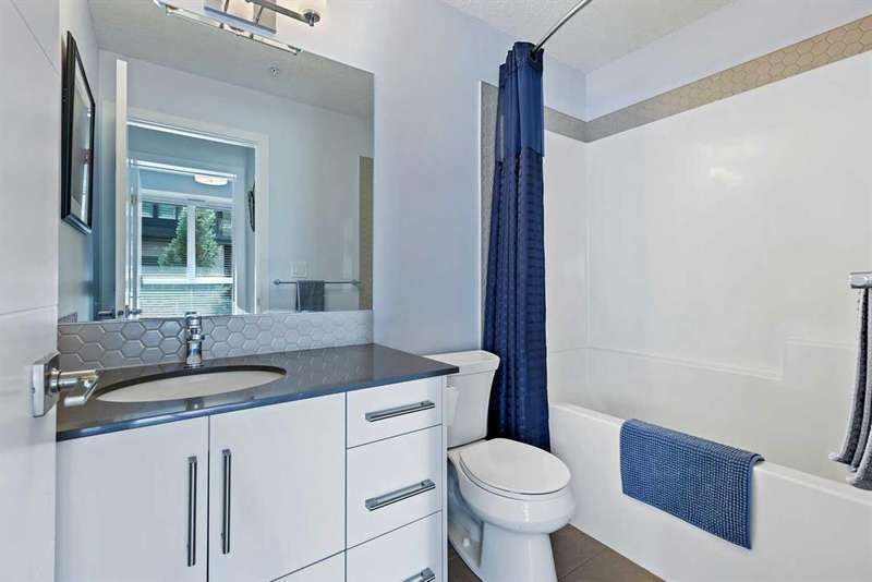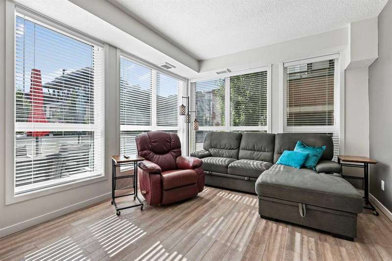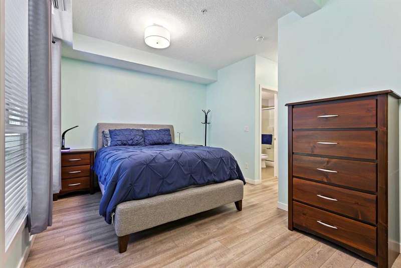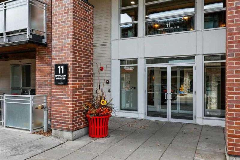 Welcome to the Westman Village and all this highly coveted lake community has to offer. Located on a very quiet street, this main floor two-bedroom, two-bathroom unit boasts the convenience of a private entrance from the large patio to shopping and walking trails, making it ideal for pet owners. The living space of this open-concept home is flooded with natural light through the expansive windows. The white kitchen cabinetry and stainless-steel appliances provide a clean and simple palette for your decorating and furnishing choices. The expansive primary suite provides a spacious retreat complimented by a spacious ensuite. A guest bedroom with walk-in-closet and a 4-piece bath complete this beautiful home. Westman Village offers an unparalleled five-star resort style lifestyle with an array of exclusive amenities. Enjoy the convenience of 24-hour security & concierge service 7am-11pm, ensuring that all your needs are met at any time of the day or night. Secure titled indoor parking stall is located between two concrete pillars to eliminate the worry of door dings on your vehicle. The door to the assigned storage locker is located right in front of the parking stall. The community amenities are unmatched, featuring a car-wash bay, pet wash, wine cellar, events room, board room, indoor swimming pool with hot tub and water slide, a fully equipped fitness center, a spa, woodworking shop, art room, games room, indoor walking track, movie theater, gymnasium with pickleball courts, golf simulator, botanical garden, library, Arnie's rooftop terrace, and The Marketplace. Dining options abound with Chairman’s Steakhouse and other fine restaurants. Your friends will be impressed when you invite them to enjoy top-notch jazz entertainment, high-end drinks and fine dining at Alvin’s Jazz Club. Numerous fountains, park benches, bridges, and pathways create an impressive environment right outside your door. Relax knowing that safety is not a concern with the 24-hour Security. Private beaches, winter skating parties, summer BBQ's, and peaceful autumn strolls, Mahogany Lake offers year-round activities and the ultimate lake lifestyle. Convenience and luxury extend beyond your front door with an array of dining and shopping. Call your favourite Realtor today for a private showing.