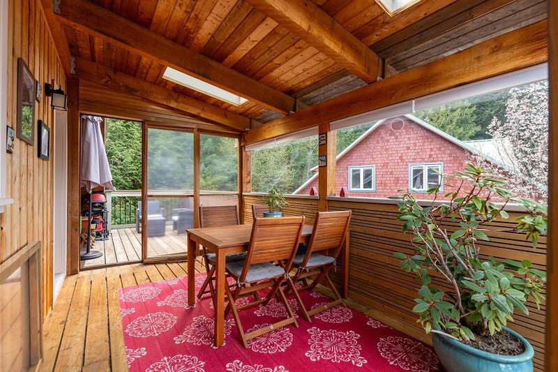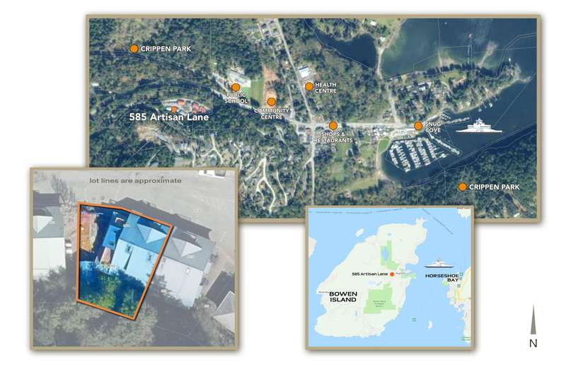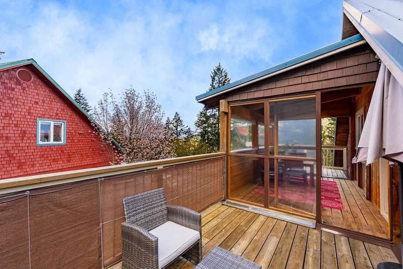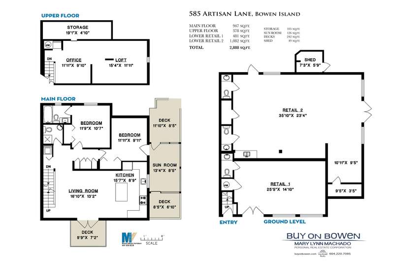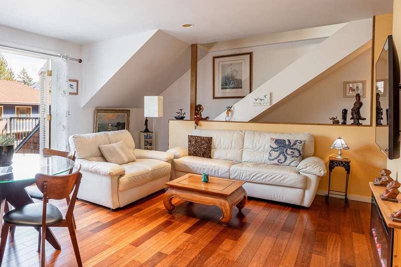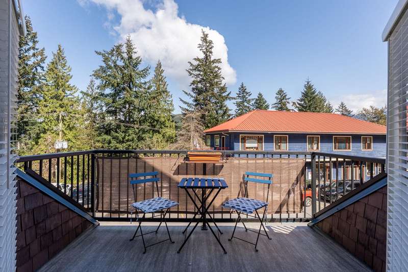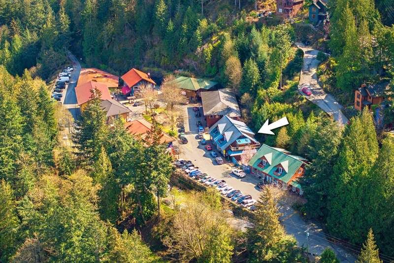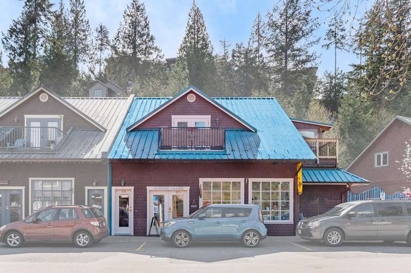 Artisan Square is a picturesque Bowen Island community of shops, galleries, wellness services, and small businesses. Several colourful low rise buildings combine commercial spaces with apartment-style homes. 585 Artisan Lane features a renovated 2 BED, 2 BATH TWO-LEVEL APARTMENT, including a loft with skylights. There’s a small deck overlooking the square and a larger private deck on the west side with an enclosed sunroom. On the ground floor are 2 COMMERCIAL SPACES each with 1/2 baths – Arts Pacific Gallery and Growing Space Montessori School. Updates to the apartment include new flooring, new kitchen, new bathrooms, new appliances, new gutters, and more. Flexible zoning regulations provide a variety of uses. This is a rare opportunity to own a building in Artisan Square.