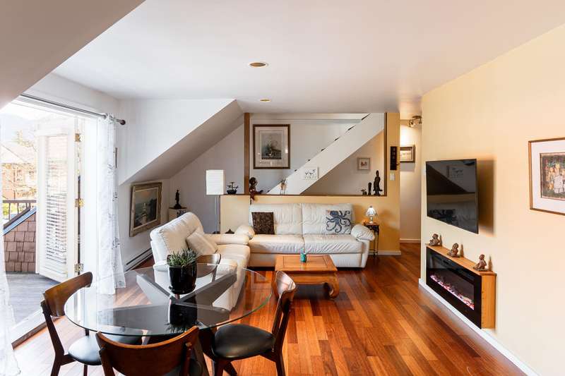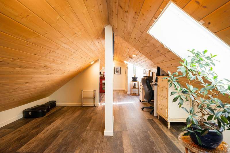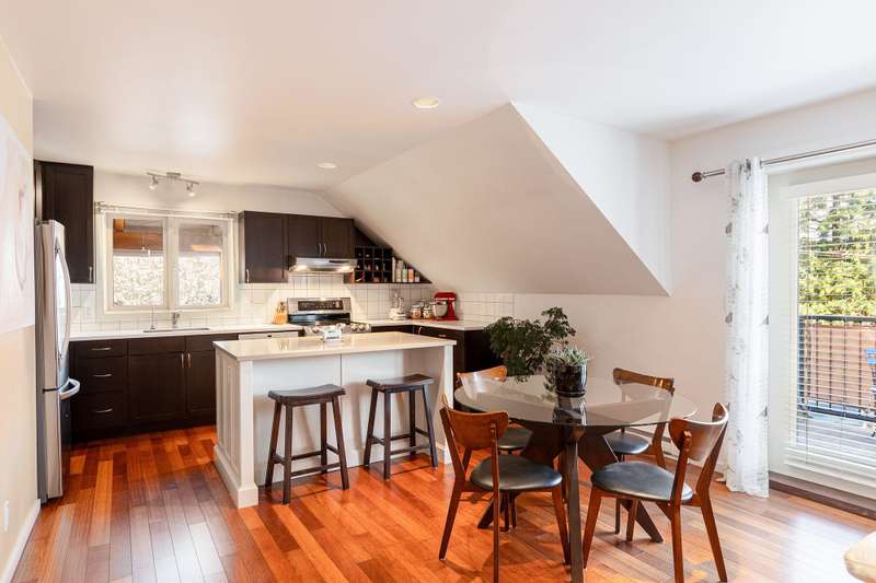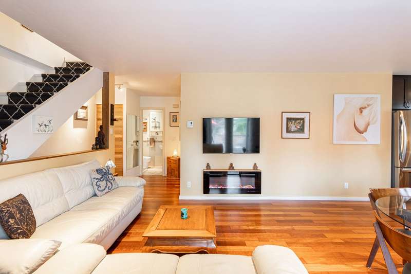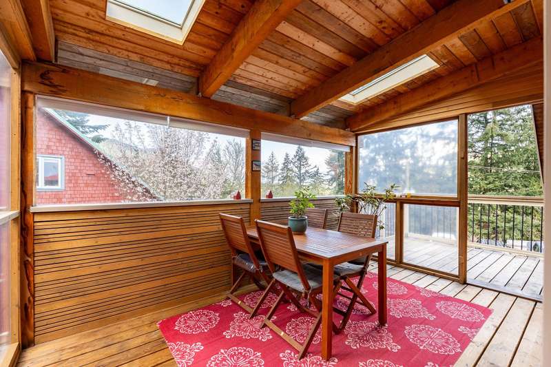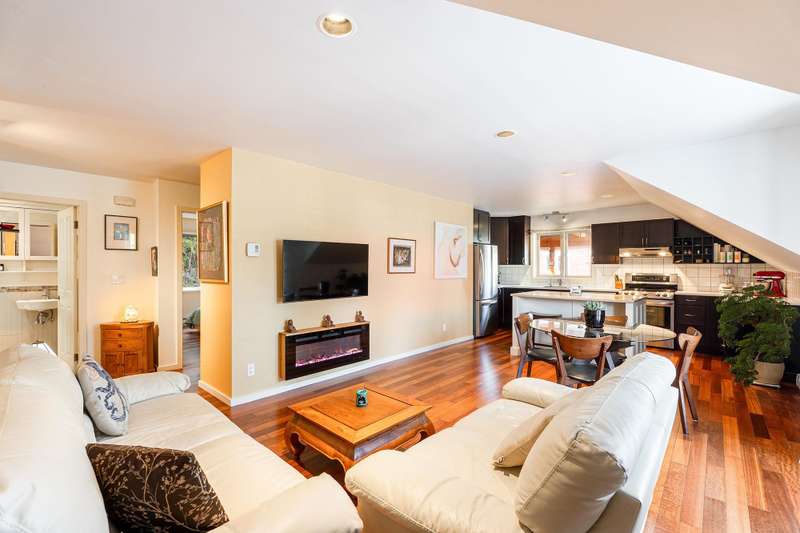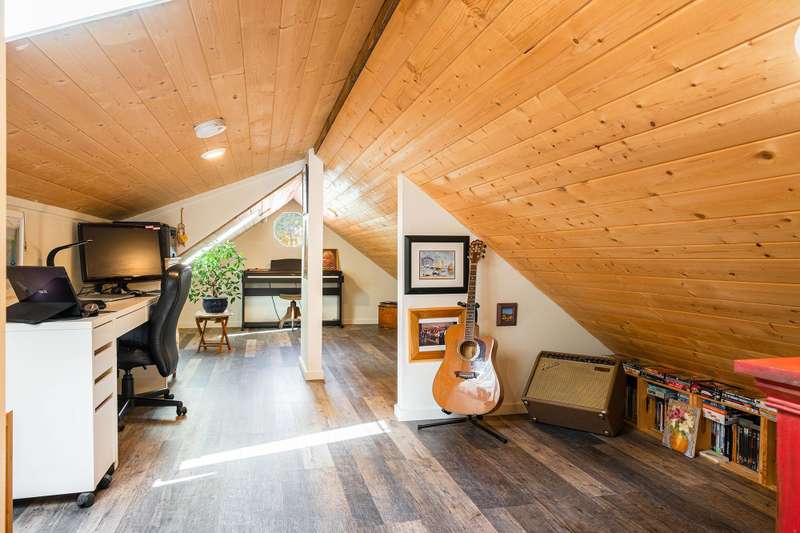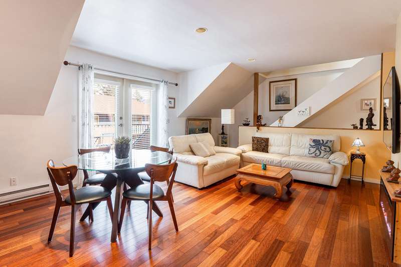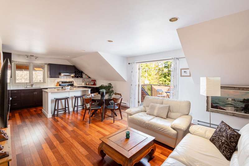 Artisan Square is a picturesque Bowen Island community of shops, galleries, wellness services, and small businesses. Several colourful low rise buildings combine commercial spaces with apartment-style homes. 585 Artisan Lane features a renovated 2 BED, 2 BATH TWO-LEVEL APARTMENT, including a loft with skylights. There’s a small deck overlooking the square and a larger private deck on the west side with an enclosed sunroom. On the ground floor are 2 COMMERCIAL SPACES each with 1/2 baths – Arts Pacific Gallery and Growing Space Montessori School. Updates to the apartment include new flooring, new kitchen, new bathrooms, new appliances, new gutters, and more. Flexible zoning regulations provide a variety of uses. This is a rare opportunity to own a building in Artisan Square.
