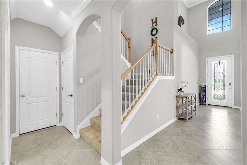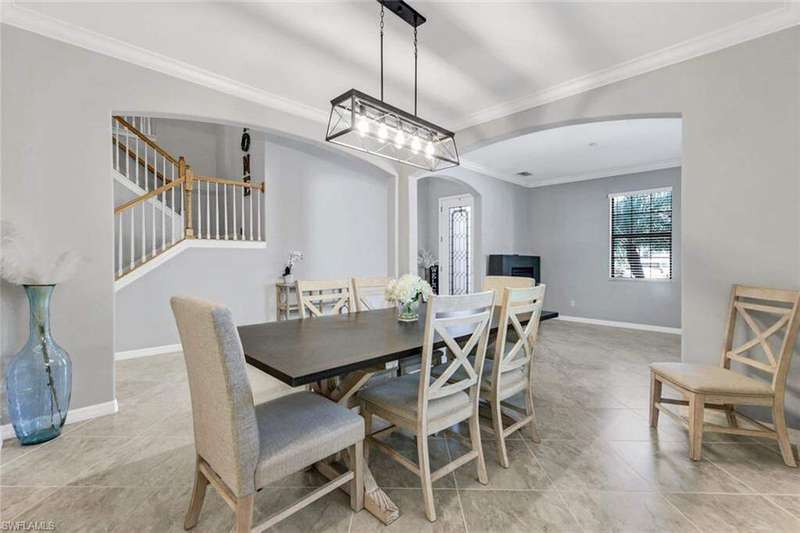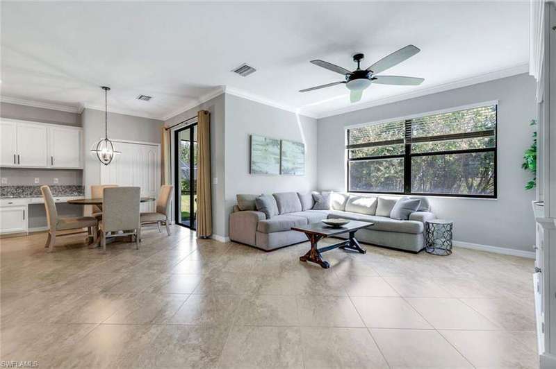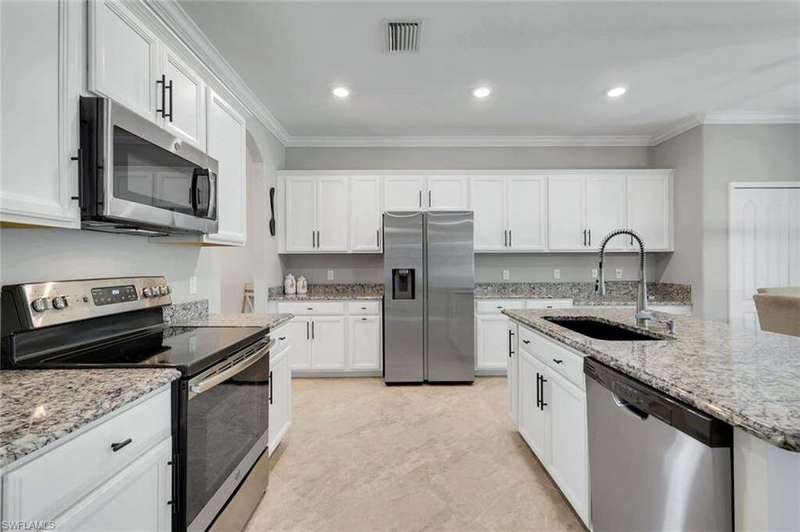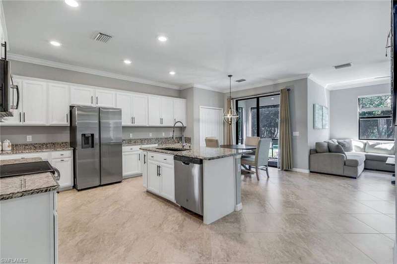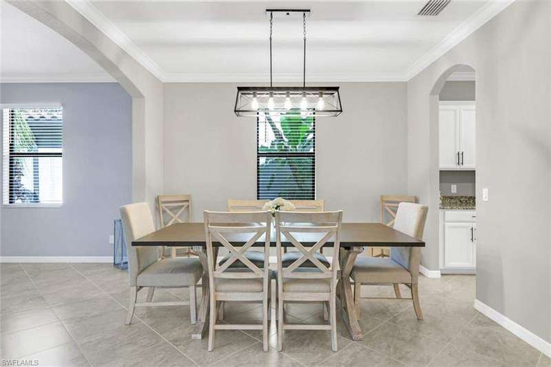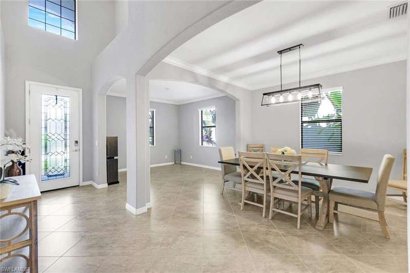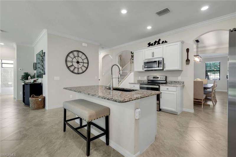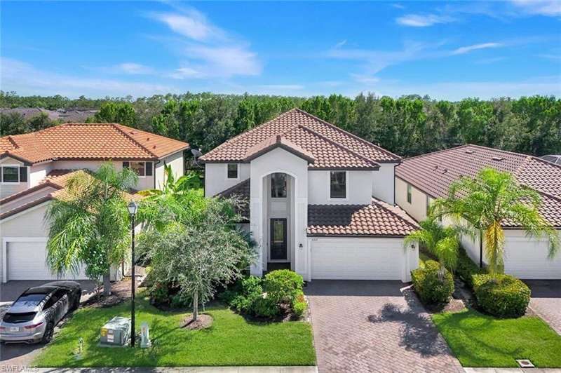 Hands down the best value in Raffia Preserve! This highly desired 3,231 sq. ft. Monte Carlo floor plan offers incredible flexibility with 5 bedrooms, a huge bonus/media room, a loft, 3 full baths, plus a 3-car tandem garage-all at the lowest price per square foot in the community. From the moment you enter, soaring ceilings and natural light welcome you into a home designed for both comfort and function. The first floor features formal living and dining spaces, plus an open kitchen with upgraded white cabinets, granite counters, stainless appliances (including a newer refrigerator), upgraded fixtures, and a built-in desk nook. The kitchen flows seamlessly into the family room, creating the perfect hub for everyday living and casual gatherings. A first-floor guest bedroom and full bath make hosting visitors effortless. Upstairs, the spacious primary suite offers two walk-in closets and an en-suite bath with soaking tub and walk-in shower. Three additional guest bedrooms share a full bath, while the oversized loft and enclosed den/media room provide endless possibilities; whether you need a playroom, home office, or entertainment space. The spacious backyard is ready for anything; kids at play, pets on the run, or your dream lanai with a pool. Additional features include crown molding, diagonal tile, upgraded lighting and fans, and a well-appointed laundry room with cabinetry. If you've been searching for more room to live, work, and play, without sacrificing value, this home is your answer. Raffia Preserve offers the perfect blend of resort-style living and everyday convenience in the heart of North Naples. This gated community features a clubhouse, sparkling pool with lap lanes, fitness center, playground, and basketball court; all with low HOA fees and no CDD. Just minutes from top schools, shopping, dining, and only 15 minutes to the white sands of Vanderbilt Beach, Raffia Preserve makes it easy to enjoy the Florida lifestyle.