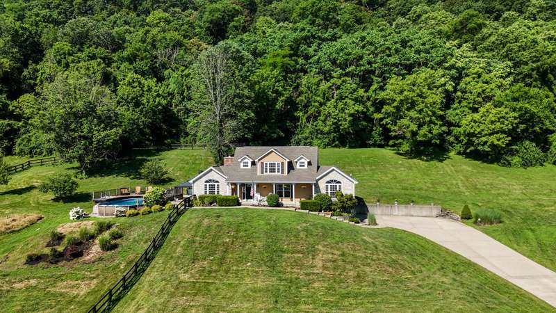 Welcome home to a perfect blend of luxury & tranquility on this stunning 10.02-acre property offering spectacular river views! This beautifully crafted home features a spacious 1st floor primary suite w/ cathedral ceiling, deluxe tiled bath, & custom walk-in closet. Gourmet eat in kitchen boasts SS appliances, granite counters, large walk-in pantry, walkout, & stone accented breakfast bar w/ pendulum lighting. Hand-scraped wormwood hardwood floors on the entire main level. Living room boasts soaring ceilings, stone fireplace, built ins, & walkout. Formal dining room w/ crown adjoins the kitchen. 2 large bedrooms, loft/office area, & tiled bath w/ double vanity upstairs. Enjoy this private oasis w/ a pool, hot tub, & large patio perfect for entertaining. Built in oversized 2-car garage w/ heater. Impressive outbuilding w/ epoxy-floored garage, workshop, storage, & versatile rec room w/ LVT flooring & walkout. This property combines elegant living w/ exceptional outdoor amenities & million-dollar views! A rare find for those seeking privacy, comfort, & natural beauty. Newly updated high-end mechanics plus supplemental wood burning central boiler to maximize efficiency.