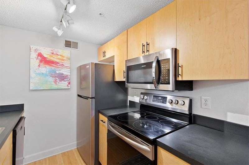 Seller has moved out of state for work, freshly painted August 2025, and the seller is SUPER motivated to sell, make us an offer! Nows the time to make your movethis recent market shift puts the power back in the buyers hands, especially when it comes to scoring a move-in ready starter condo like this one! This condo qualifies for up to $45K in grant money to help make homeownership both affordable and achievable. Step into city living at its finest in this bright and welcoming ground-floor condo. The new front steps and charming porch lead you into a light-filled space with a large entry foyer and spacious hall closet. The open-concept living and dining area flows seamlessly into a well-appointed galley kitchen-freshly painted with a brand-new faucet and garbage disposal, and ready for you to host your next holiday dinner party. Light bamboo flooring extends throughout, creating a warm, inviting feel. Step outside to your large covered patio, perfect for morning coffee or evening relaxation. Storage is no issue here-be sure to check out all the generous hallway closets, plus an in-unit washer and dryer neatly tucked away for added convenience. The spacious bathroom features an expansive double vanity, new faucets, updated lighting, and even more storage. Primary bedroom fits a king-sized bed and includes an impressive wall-to-wall closet. Secondary bedroom provides flexible space, whether you need a guest room, office, or cozy den. Community Amenities include 24/7 concierge service, junior Olympic-sized pool, fully equipped gym, community room with a full kitchen, beautiful landscaping, dog-friendly greenspace, and scenic walking trails. Your dedicated parking spot is directly down the stairwell, conveniently close to your unit and right next to the mailboxes. This centrally located community provides easy access to all major highways, making trips to downtown, midtown, and beyond a breeze. And with the BeltLine, Ponce City Market, Freedom Park
