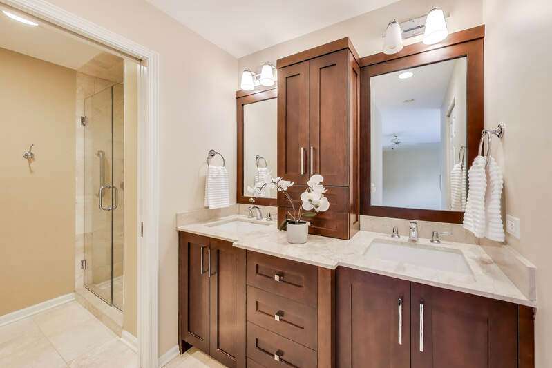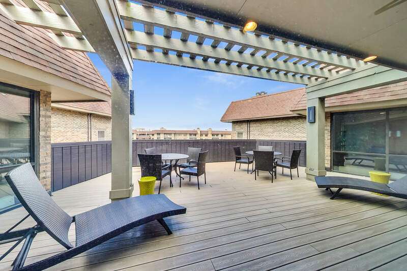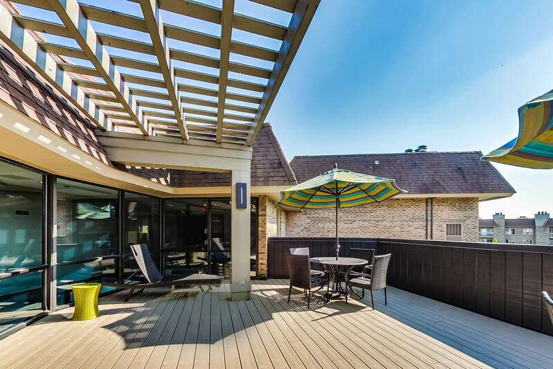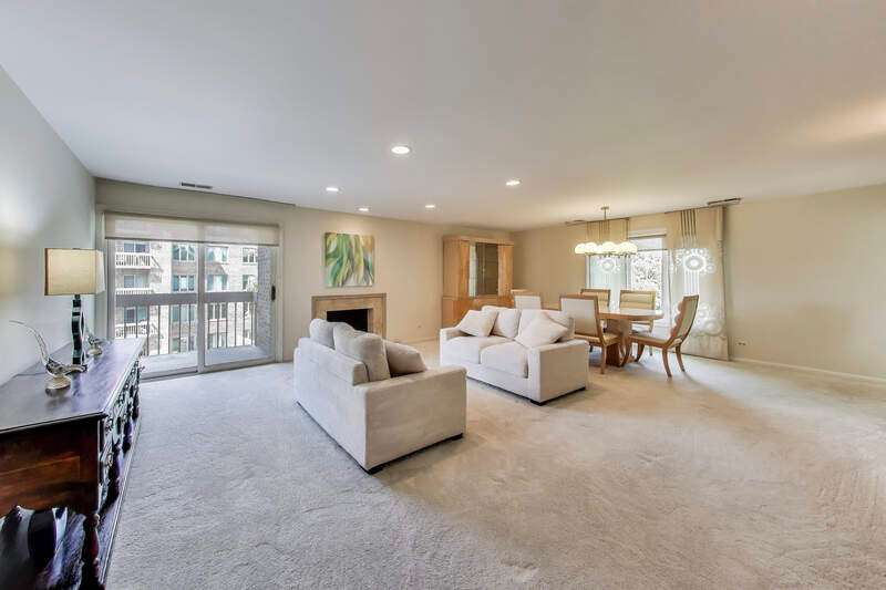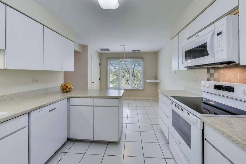 SPACIOUS 2BR/2BA END UNIT WITH PRIVATE BALCONY IN GATED COMMUNITY! Welcome to this beautifully maintained 1,810 sq ft corner residence in The Condos of Northbrook. Flooded with natural light from multiple exposures, this home offers an inviting layout and generous living space. The expansive living/dining room accommodates large-scale furniture and a formal dining set, with sliding doors opening to a 19' x 6' private balcony, perfect for entertaining or relaxing outdoors. The eat-in kitchen features white cabinetry, Corian counters, a large pantry, and an adjacent laundry room with new LG appliances. All kitchen and laundry appliances were replaced within the past year. The impressive primary suite includes an organized walk-in closet and a beautifully updated bathroom with a double vanity, walk-in shower, water closet, and abundant storage. The versatile second bedroom, with built-in desk and shelving, is ideal as a guest room, office, or den and also enjoys balcony access. A second bathroom with a new walk-in shower completes the home. Community amenities include 24-hour security, an outdoor pool, tennis courts, sun deck, fitness and party rooms, and convenient same-floor storage. Two tandem parking spaces are included. Ideally located near expressways, shopping, healthcare and dining.