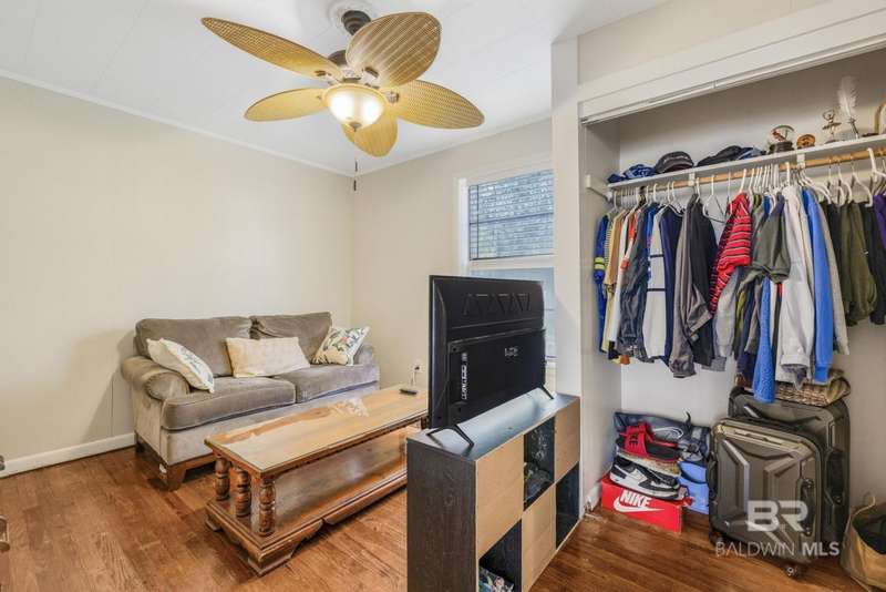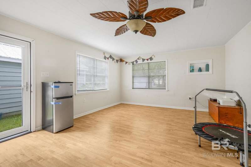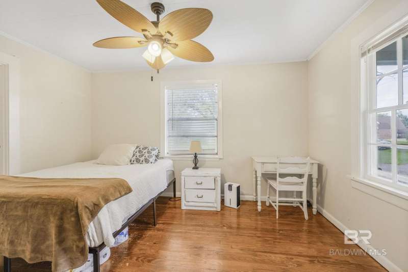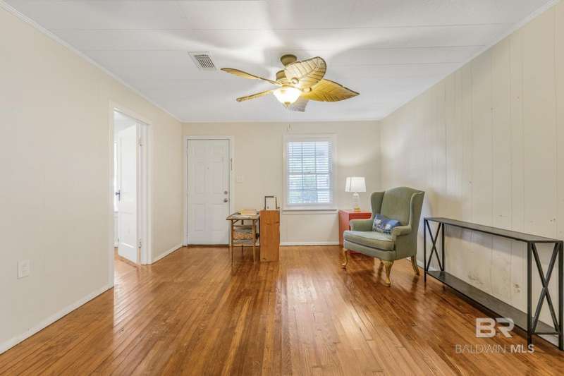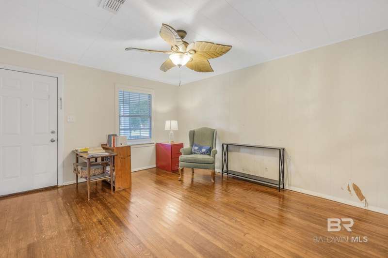 This delightful cottage nestled in the heart of downtown Foley is full of potential and ready for its next chapter. The white picket front porch is perfect for enjoying your morning coffee or relaxing in the evening. The original hardwood floors of this home exude classic charm and character. In addition to the two bedrooms, there is a flex room that can serve as a third bedroom, den, home office, or extra living space, giving you options to fit your lifestyle. The property also includes two storage buildings- perfect for hobbies or extra storage- and a spacious backyard ideal for outdoor living. The home has a fortified roof (2023) and an updated HVAC system (2022). This is a perfect home for those looking to customize and make it their own. Whether you are a first-time buyer, downsizing, or looking for a forever home, this one is a must-see. Conveniently located near shopping, dining, and the beaches of the Gulf Coast- this location can't be beat! This one is a must-see, so schedule your appointment today! Buyer to verify all information during due diligence.